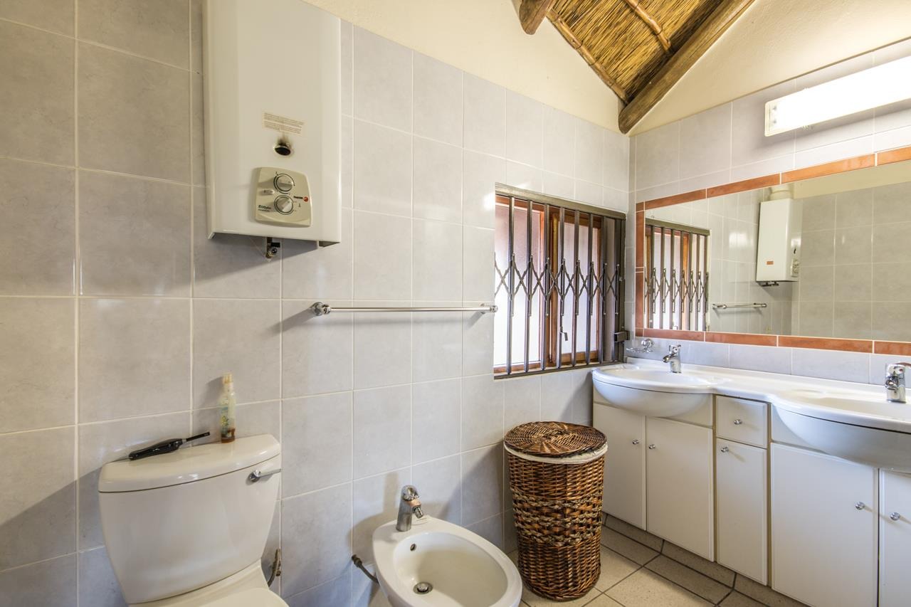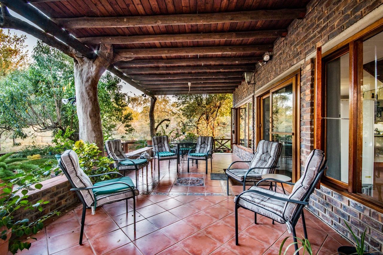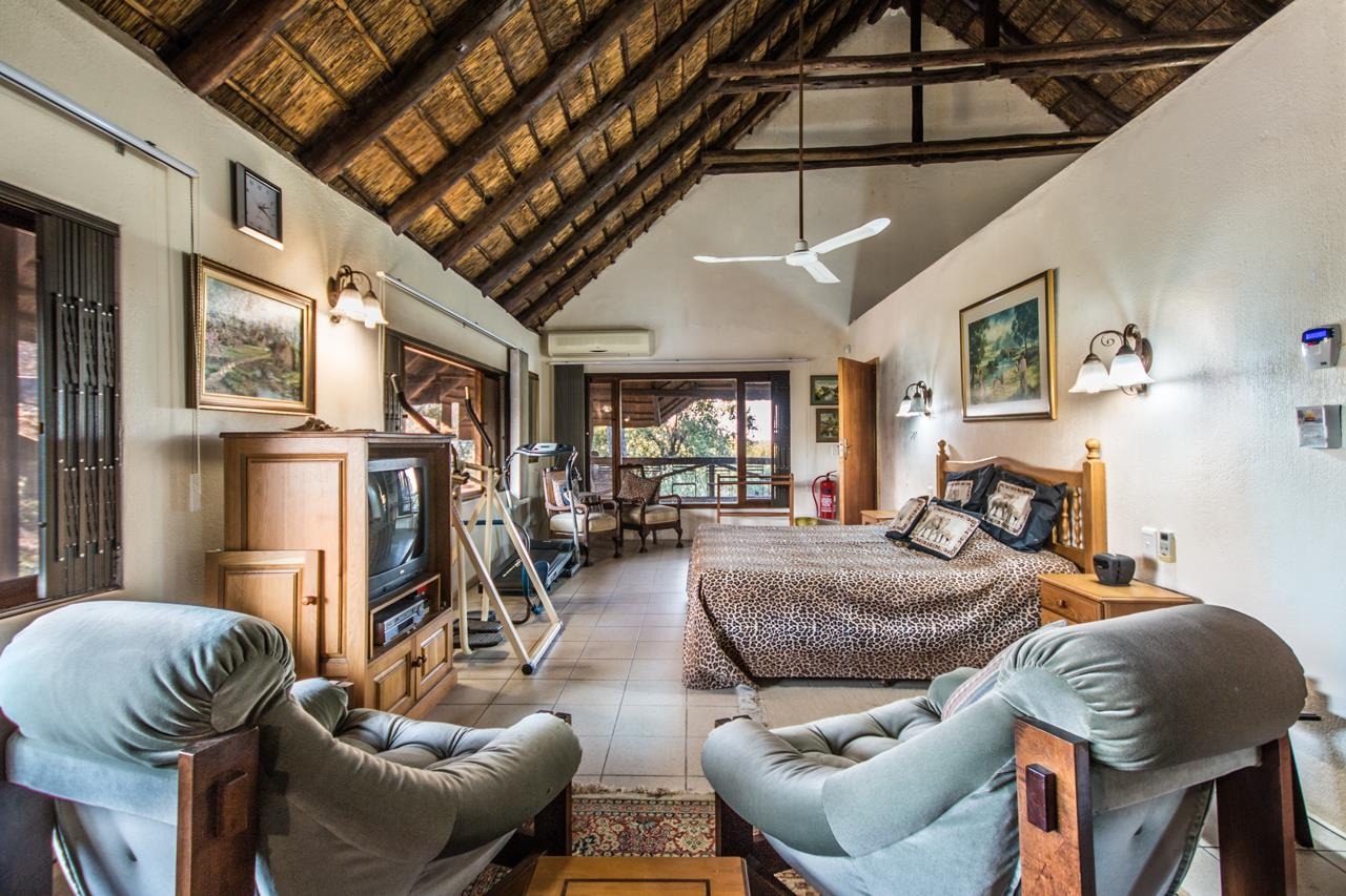 Experience the ultimate in comfort and style with this impressive 5-bedroom thatch-roof property, with the option to include furnishings in the sale available in the heart of Marloth Park. Situated on a peaceful road, this home offers a serene lifestyle surrounded by abundant wildlife. For added peace of mind, Trellis security barriers are installed on all windows and doors.