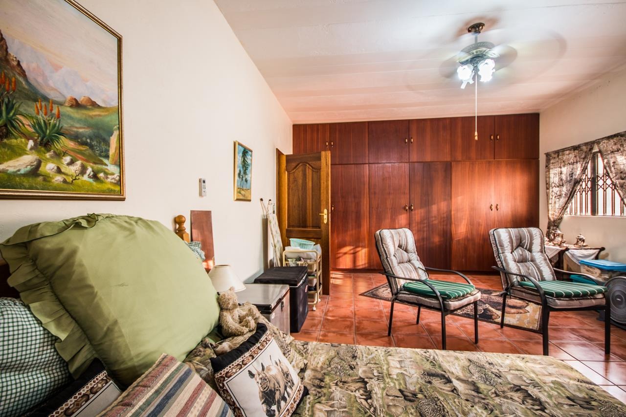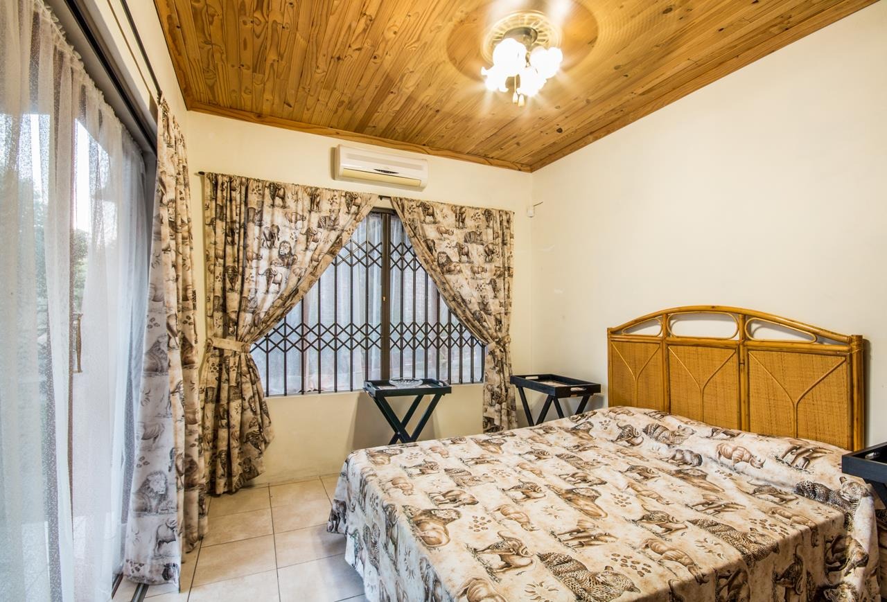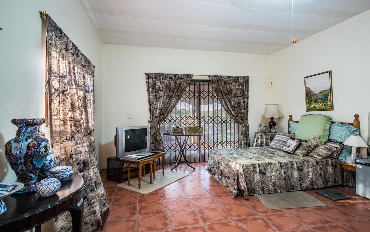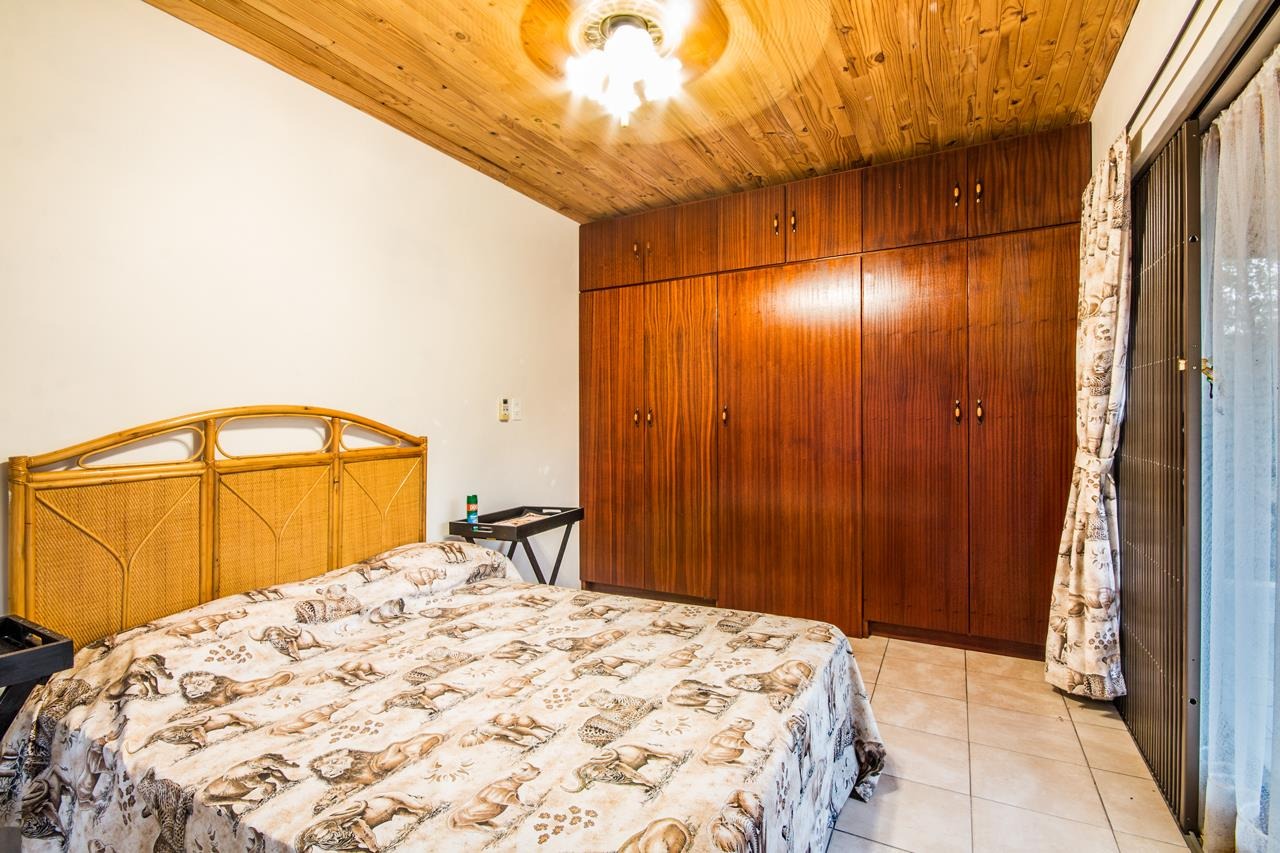 This property also includes two flatlets. The first, located at the back of the double garage, features a private veranda, a bedroom with built-in cupboards, an air-conditioner, a ceiling fan, and an en-suite bathroom with a shower, toilet, and basin. The second flatlet, situated above the garage, includes an open-plan area suitable for a kitchenette and lounge, a bedroom with built-in cupboards, an air-conditioner, a ceiling fan, and an en-suite bathroom with a bathtub, double shower, double basins, and a toilet.