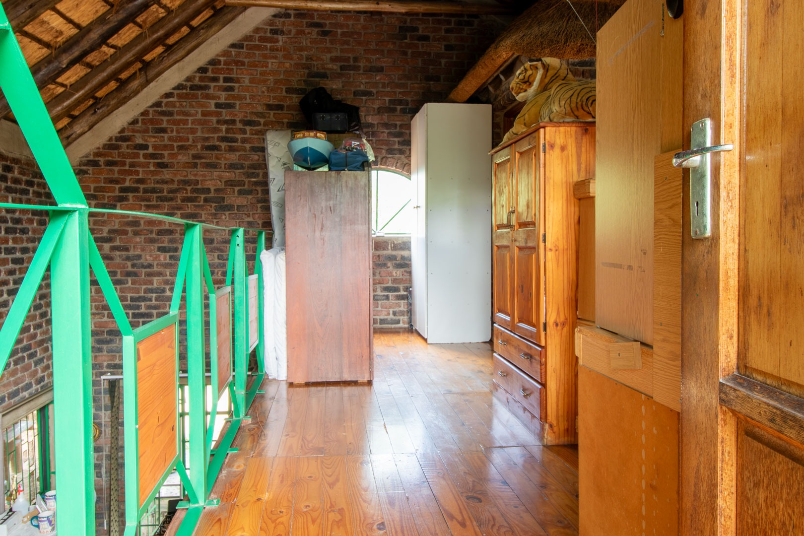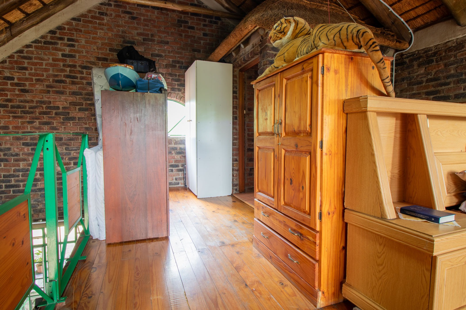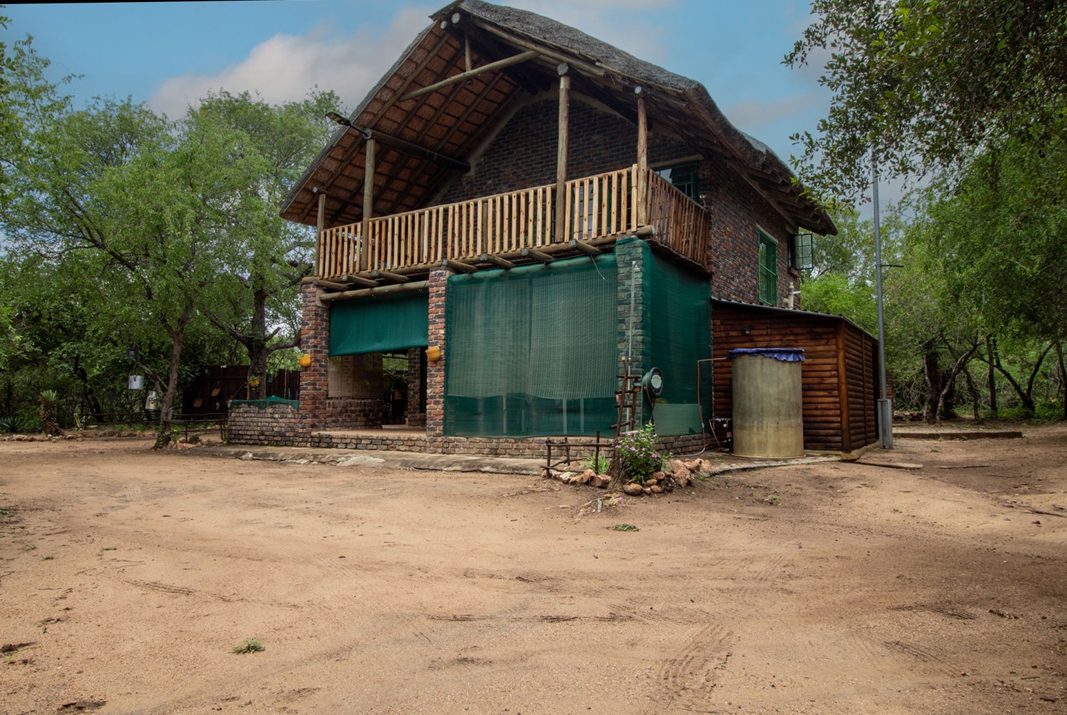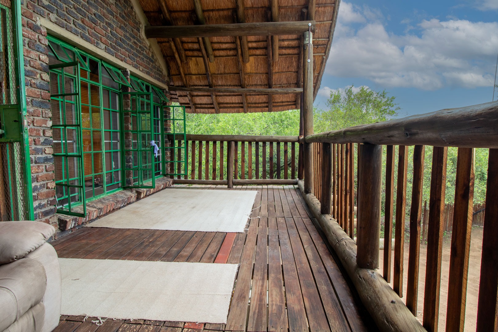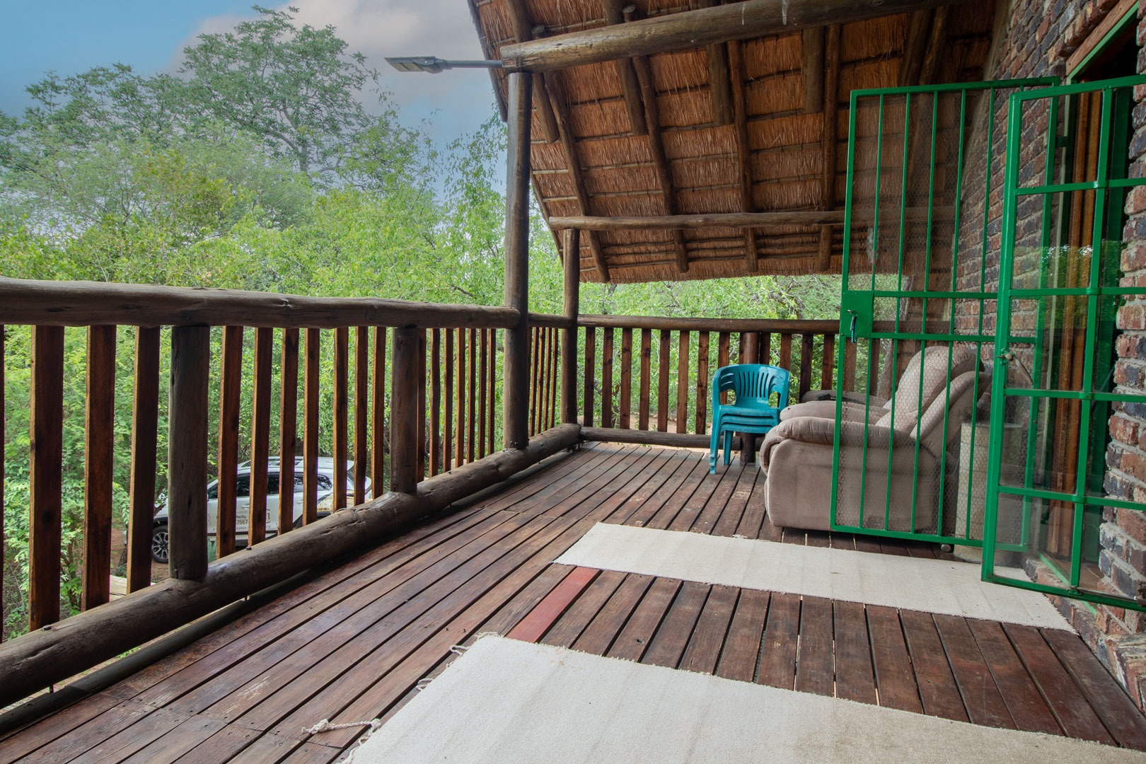 Upstairs, an open loft with its own bathroom offers versatility—it can be used as a second bedroom or a relaxing retreat. Step out onto the viewing deck and take in the tranquil surroundings while enjoying a sundowner. Overlooking the entertainment area, this elevated space provides the perfect vantage point to observe wildlife such as giraffes, zebras, kudus, and more as they roam the area.