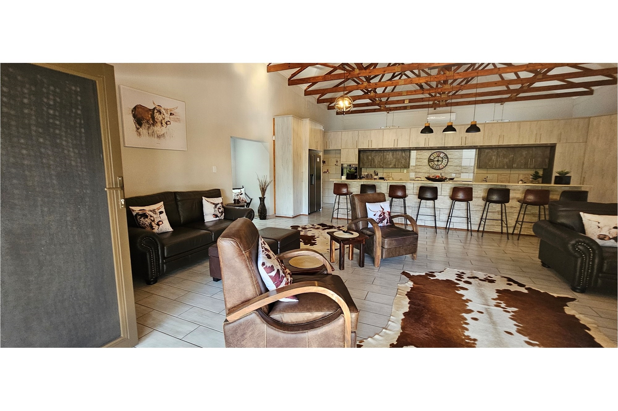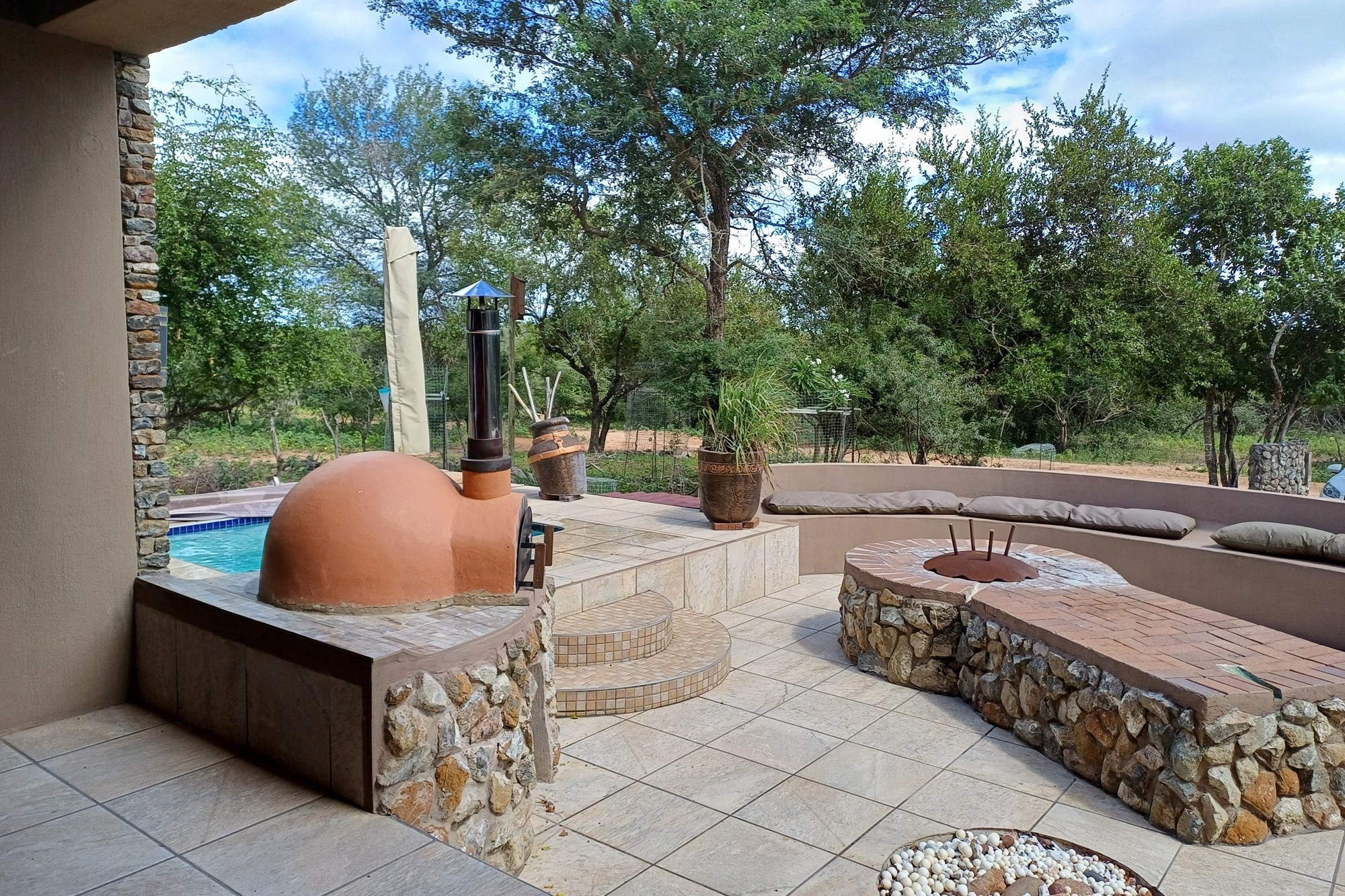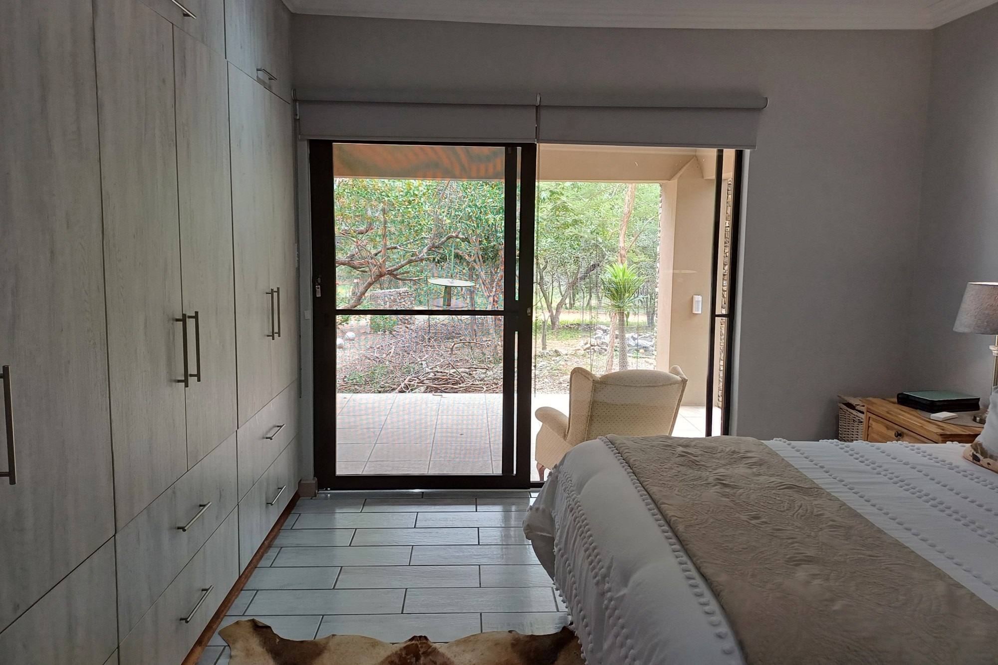 This gorgeous 3-bedroom, 3-bathroom home is new to the market and offers an exceptional blend of modern amenities and tranquil countryside living. Perfect for families and those who appreciate a peaceful, safe location, the property is thoughtfully designed with comfort and style in mind. As you step inside, you'll be greeted by an expansive open floor plan that seamlessly connects the living areas. The luxurious bedrooms all feature built-in closets, and an en-suite bathroom for added privacy and convenience. The home features air conditioning to keep you comfortable year-round. Outdoor enthusiasts will revel in the property's stunning outdoor spaces, which include a sparkling swimming pool, an inviting veranda, and covered parking. The property is supported by an efficient irrigation system and includes a water tank and booster for reliability. Additionally, the property comes with a spacious 2-car garage and for additional privacy, the adjacent stand is also for sale. Constructed with durable concrete and stone, this home not only promises longevity but also enhances the overall aesthetic appeal. Situated on a quiet road, this beautifully crafted home offers the perfect retreat for those seeking a serene lifestyle without compromising on modern conveniences. Discover unrivaled tranquility and style in this delightful Marloth Park residence. Don't miss your chance to call this remarkable property your new home!