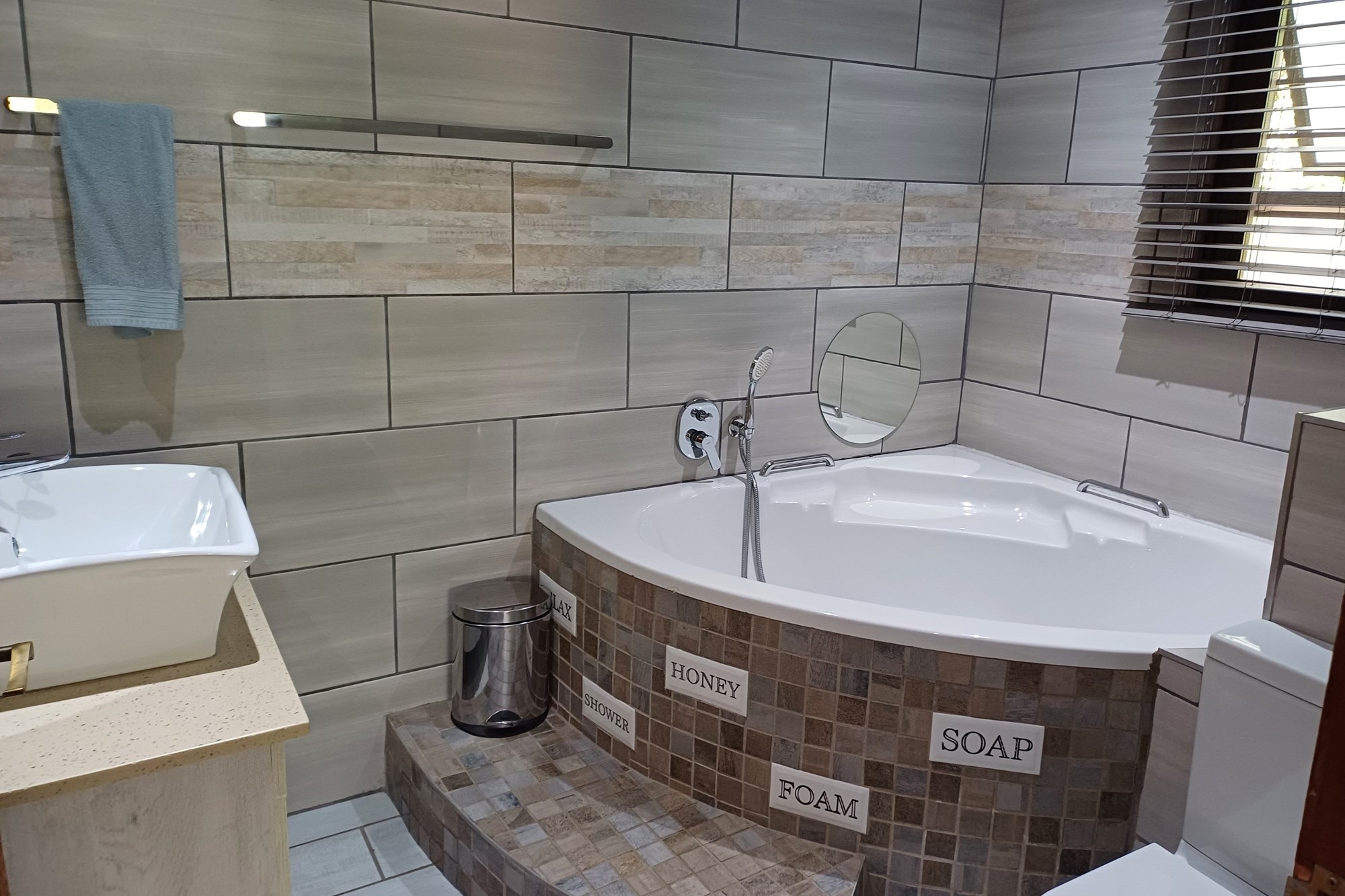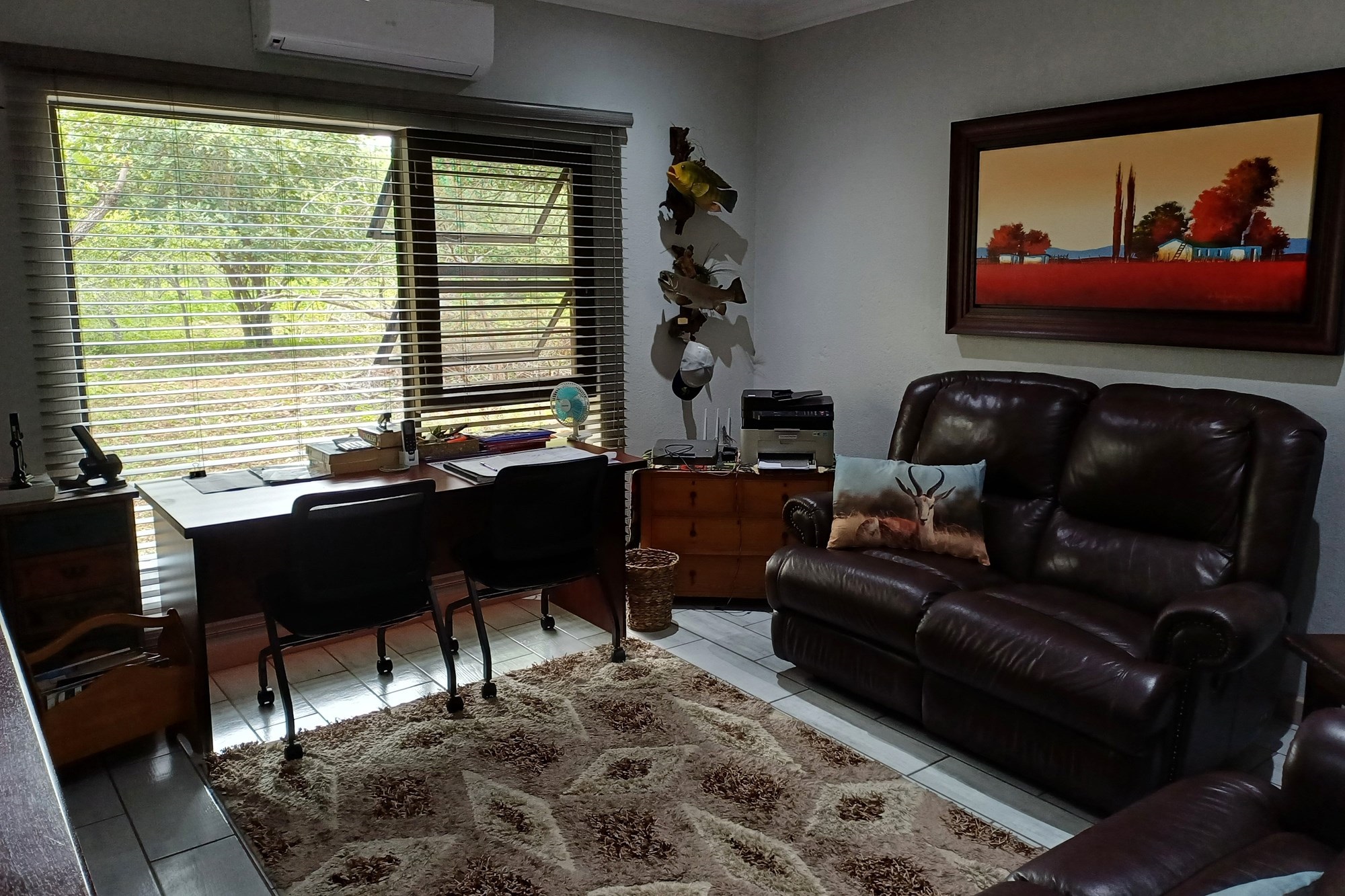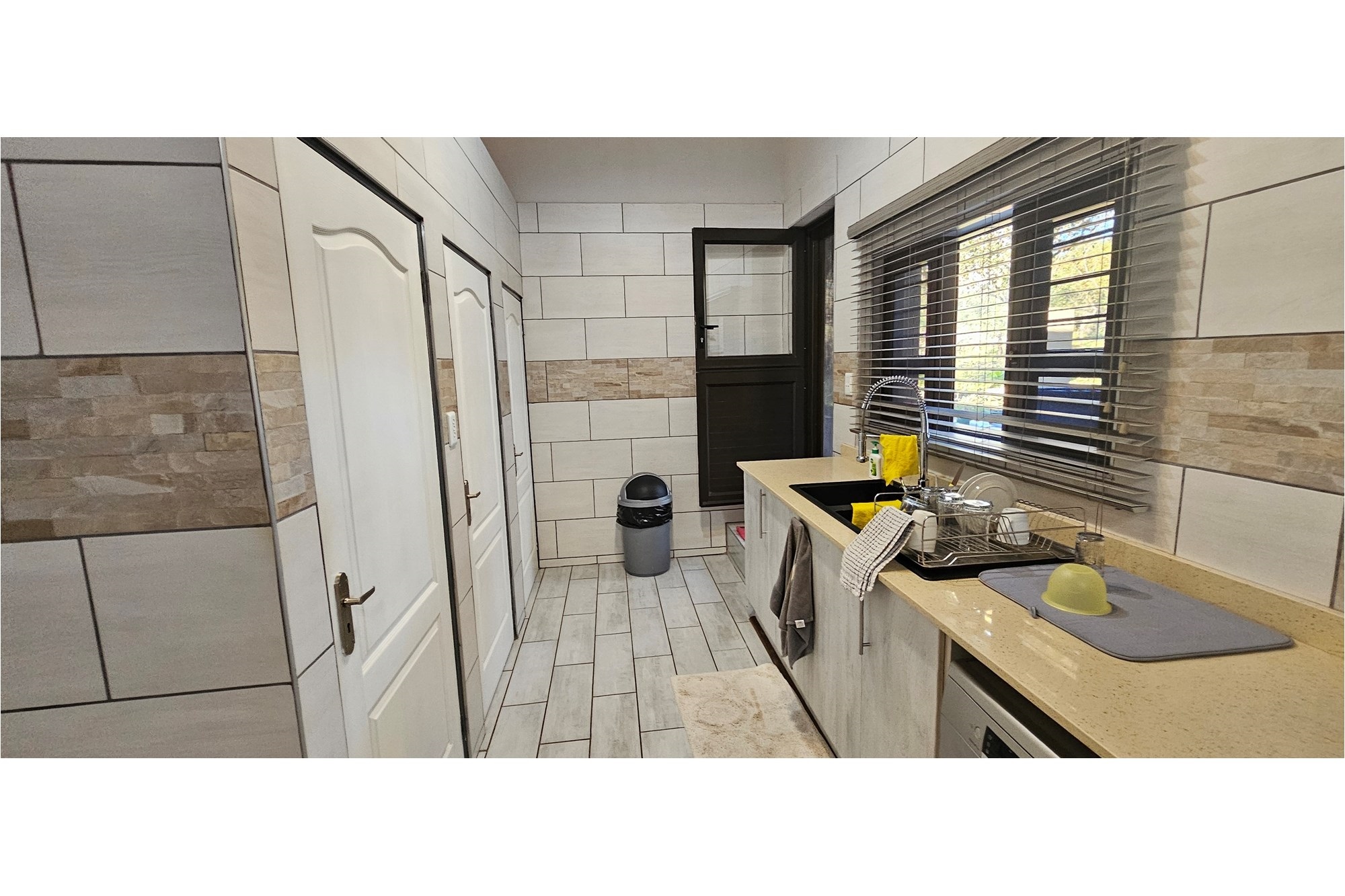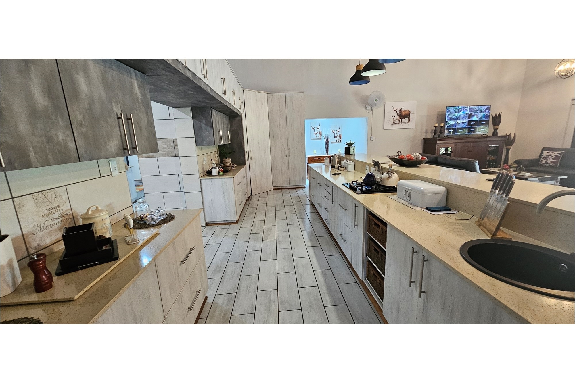This gorgeous 3-bedroom, 3-bathroom home is new to the market and offers an exceptional blend of modern amenities and tranquil countryside living. Perfect for families and those who appreciate a peaceful, safe location, the property is thoughtfully designed with comfort and style in mind. As you step inside, you'll be greeted by an expansive open floor plan that seamlessly connects the living areas. The luxurious bedrooms all feature built-in closets, and an en-suite bathroom for added privacy and convenience. The home features air conditioning to keep you comfortable year-round. Outdoor enthusiasts will revel in the property's stunning outdoor spaces, which include a sparkling swimming pool, an inviting veranda, and covered parking. The property is supported by an efficient irrigation system and includes a water tank and booster for reliability. Additionally, the property comes with a spacious 2-car garage and for additional privacy, the adjacent stand is also for sale. Constructed with durable concrete and stone, this home not only promises longevity but also enhances the overall aesthetic appeal. Situated on a quiet road, this beautifully crafted home offers the perfect retreat for those seeking a serene lifestyle without compromising on modern conveniences. Discover unrivaled tranquility and style in this delightful Marloth Park residence. Don't miss your chance to call this remarkable property your new home!
