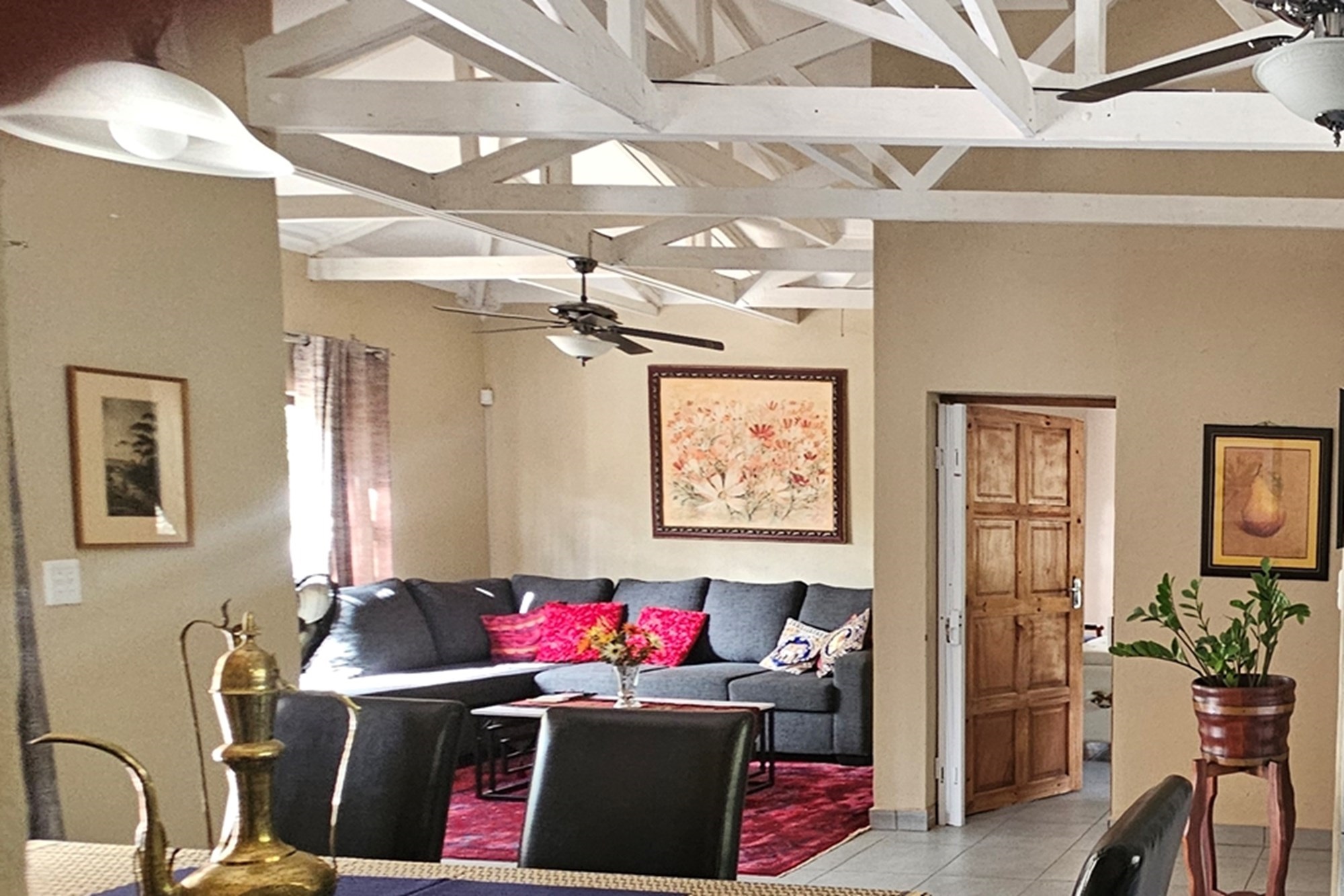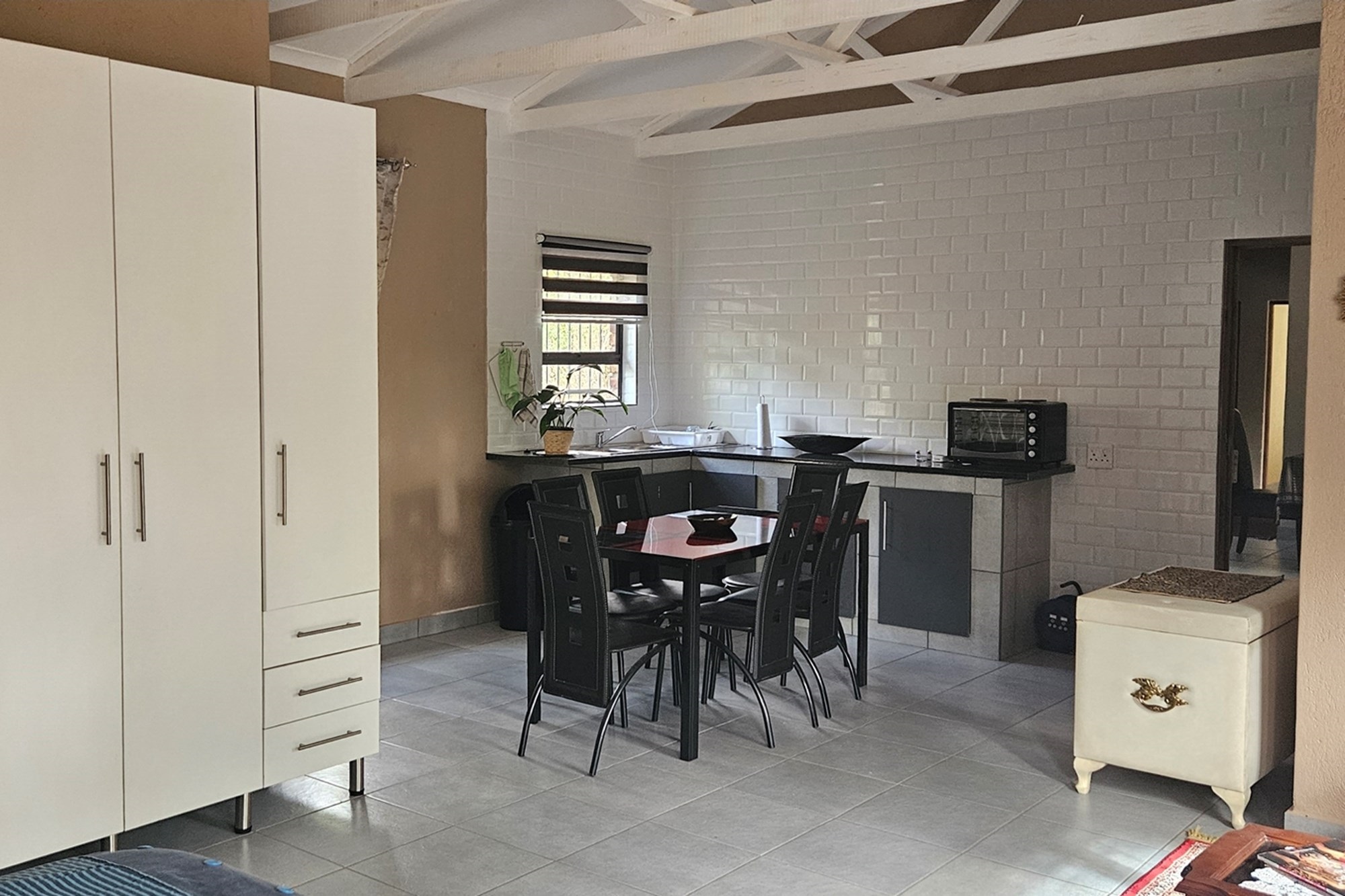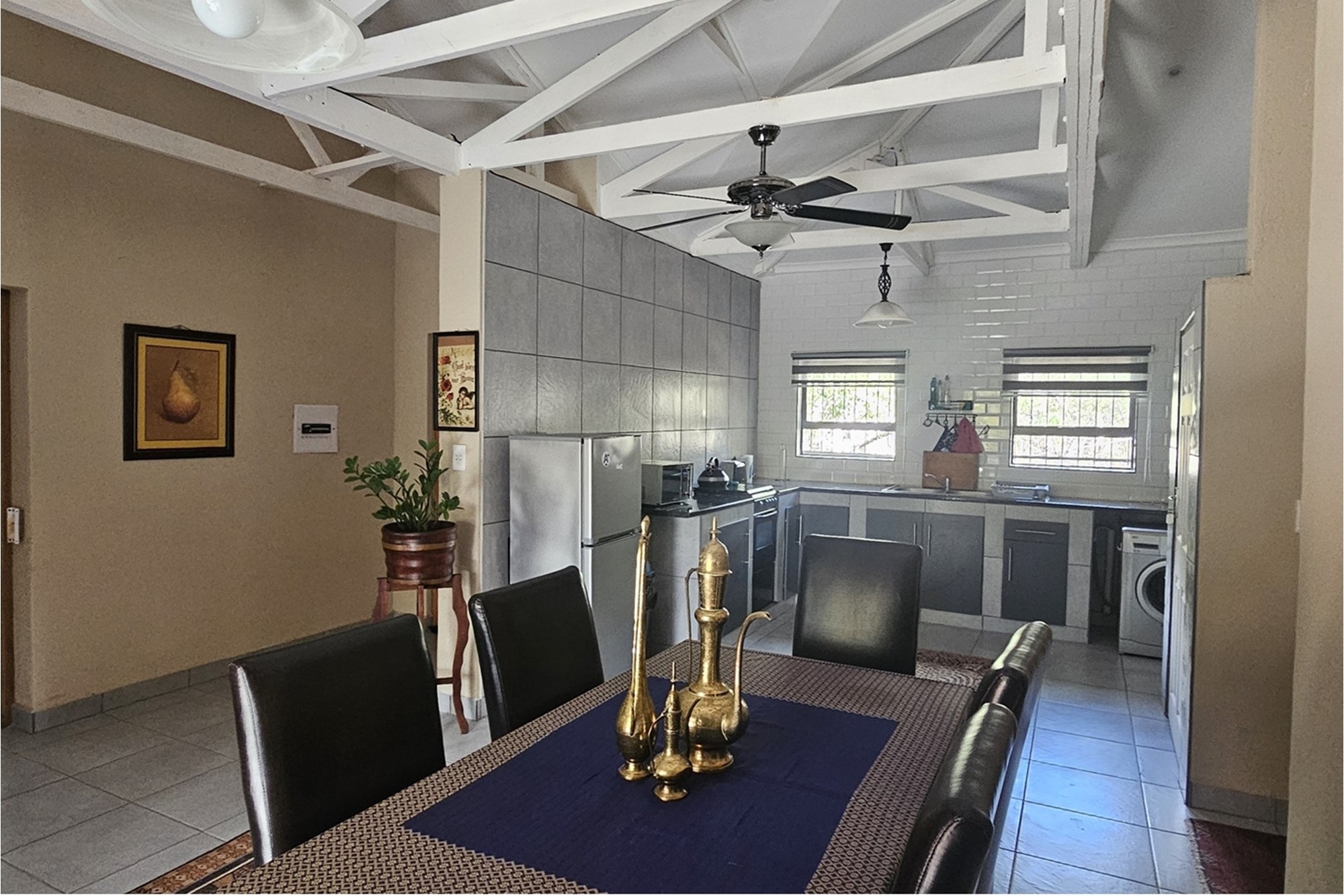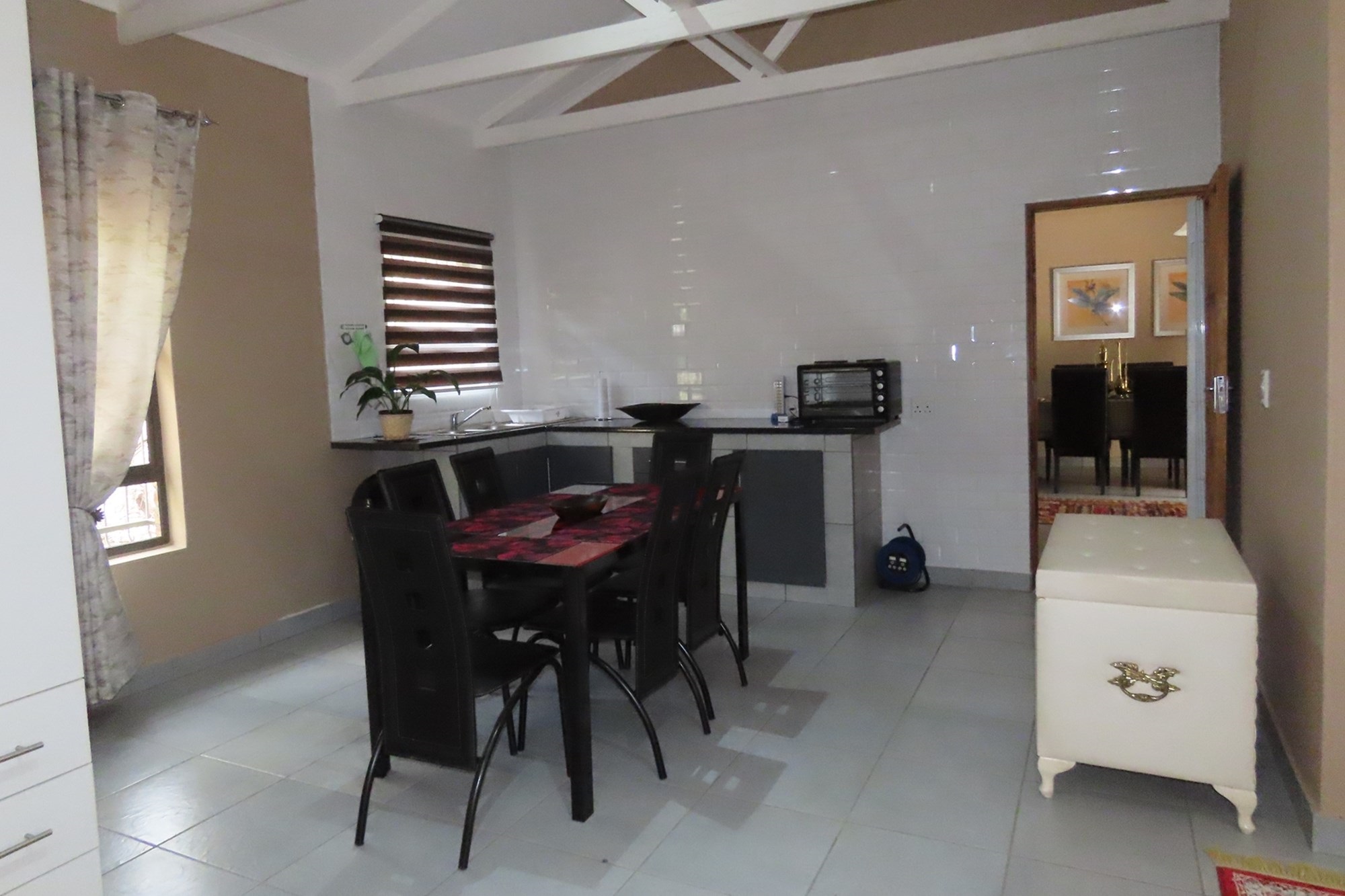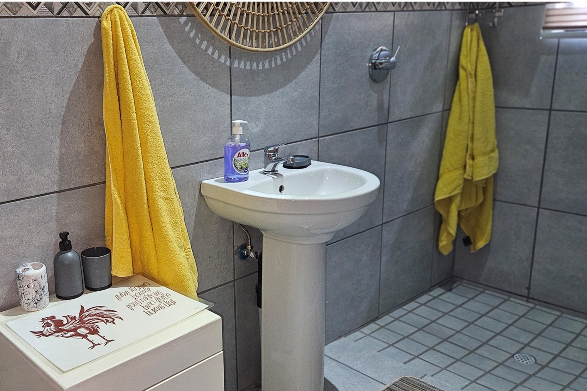 This exquisite property, built in 2023, boasts four spacious bedrooms and three well-appointed bathrooms, accompanied by a separate guest toilet for added convenience. The gigantic master suite includes its own additional kitchen-dinette, an en-suite bathroom and a built-in closet, ensuring ample storage space. The master suite can also be used as an additional flatlet with its own entrance available. Each room features high ceilings, air-conditioning and ceiling fans, enhancing the airy and open ambiance.