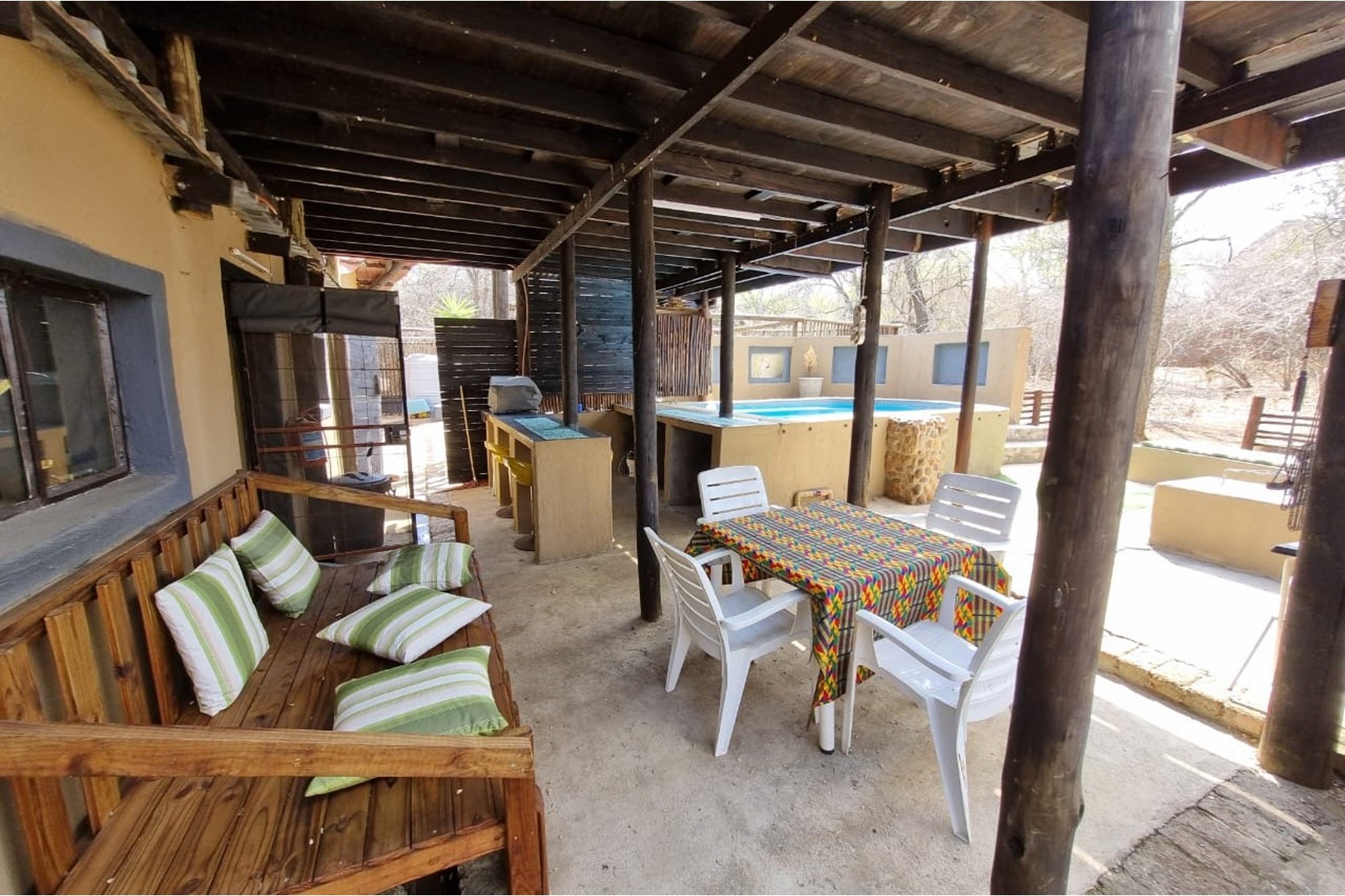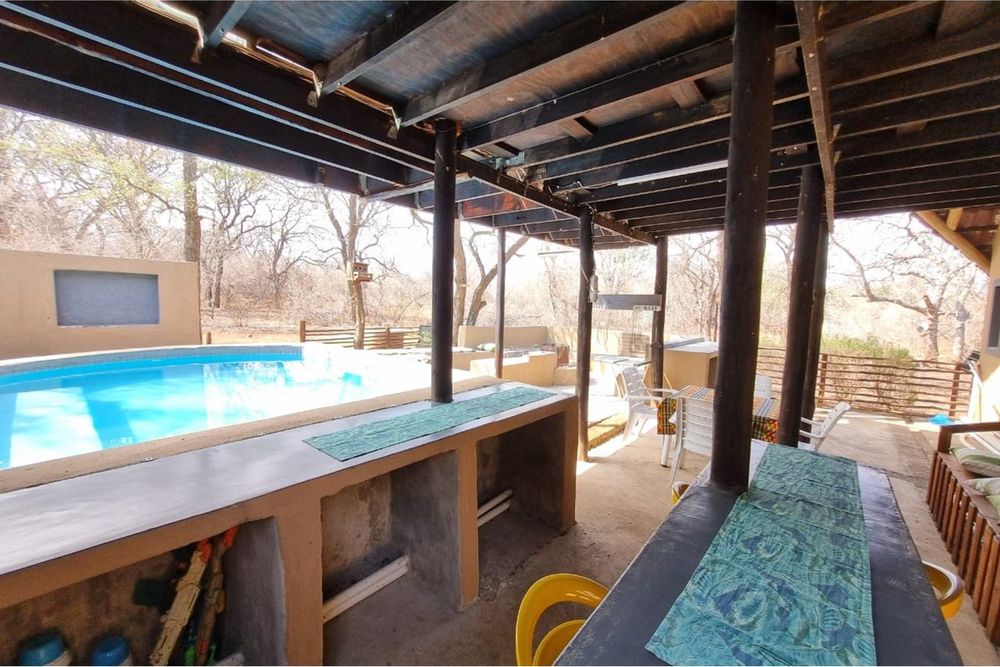 Step outside to the ultimate entertainment area — complete with a sparkling pool, braai facilities, built-in bar seating, dining space, and a shaded wooden deck where unforgettable memories are made, all set against the backdrop of breathtaking game views.