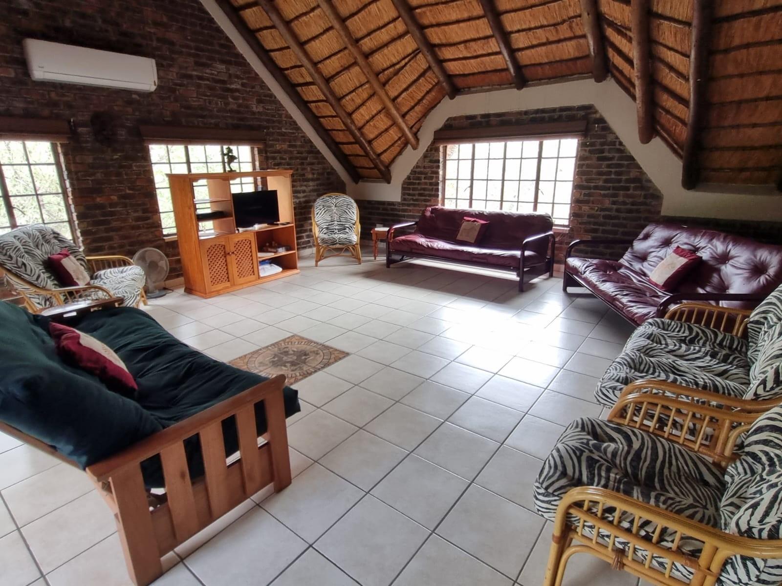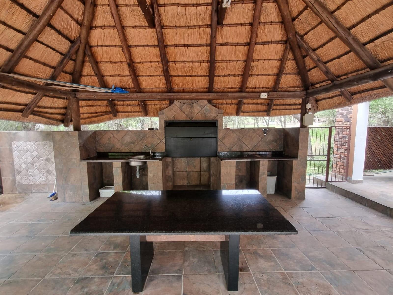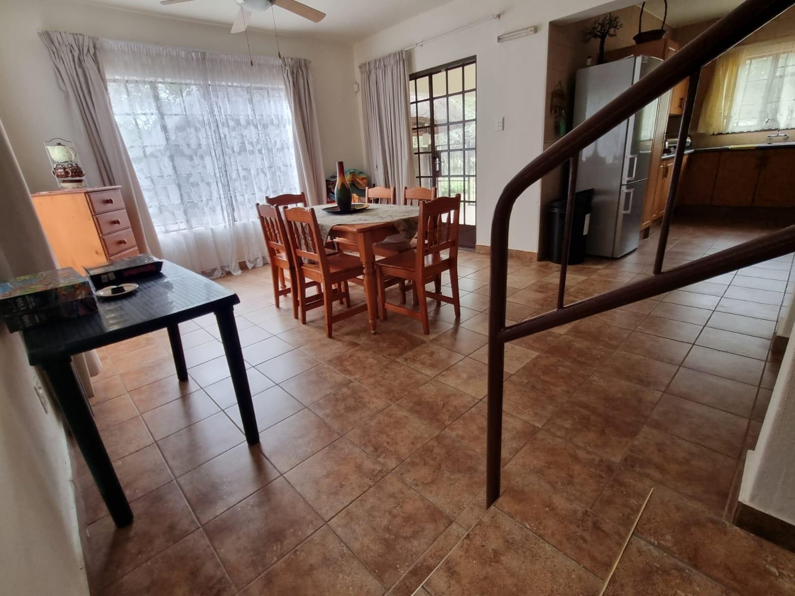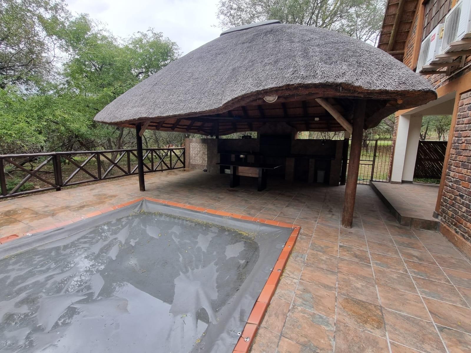 The home is sold *fully furnished (contents included)* and features generous living areas designed for relaxed bushveld living. Outdoor entertainment is a highlight, with a *lapa and swimming pool*, perfect for enjoying Marloth Park’s unique wildlife setting.