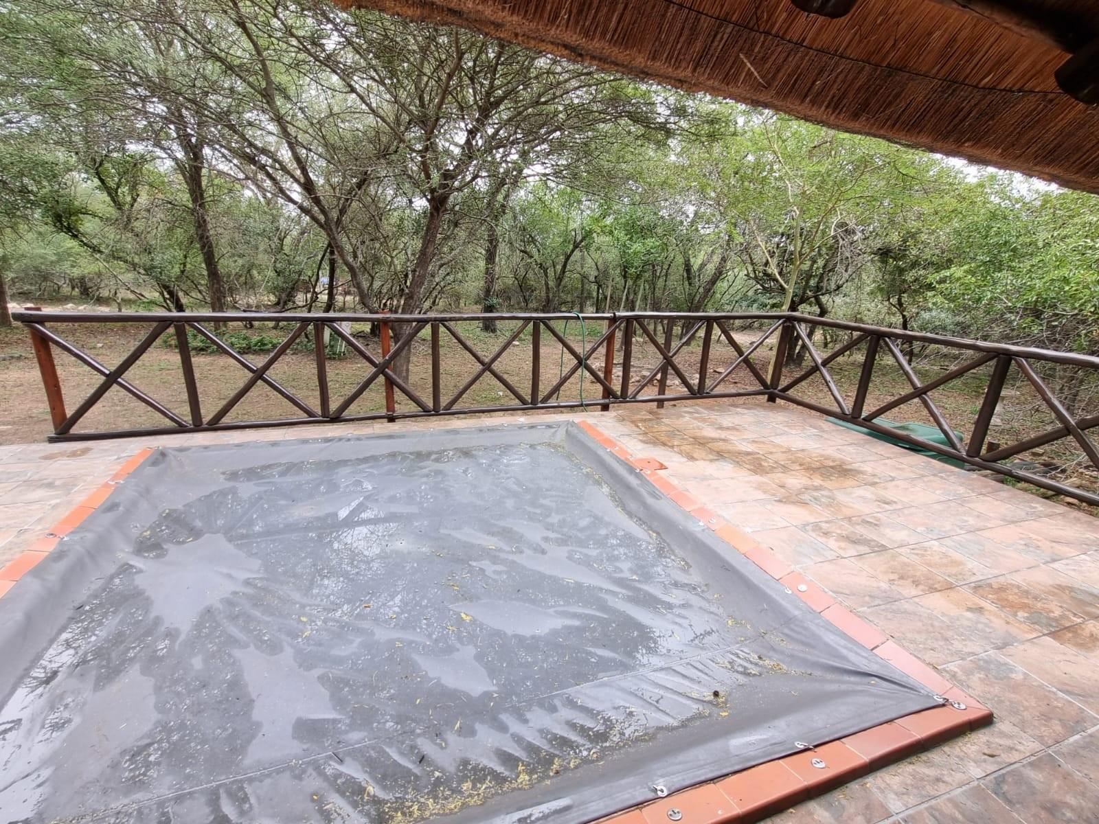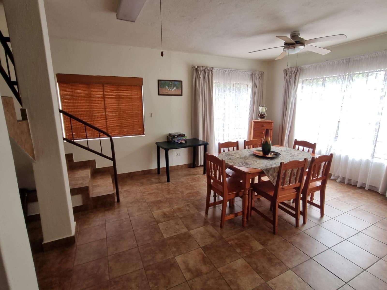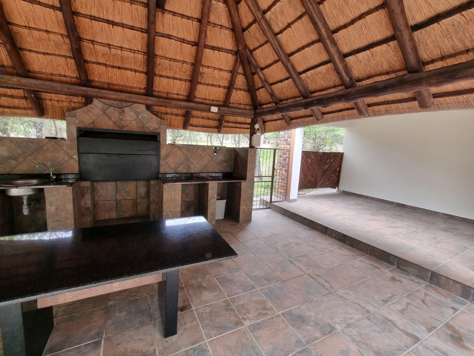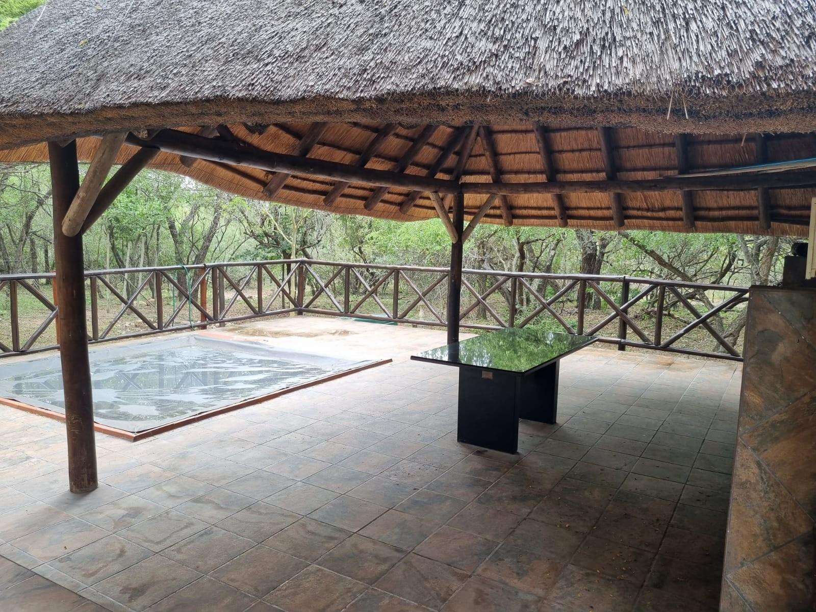 The home is sold *fully furnished (contents included)* and features generous living areas designed for relaxed bushveld living. Outdoor entertainment is a highlight, with a *lapa and swimming pool*, perfect for enjoying Marloth Park’s unique wildlife setting.