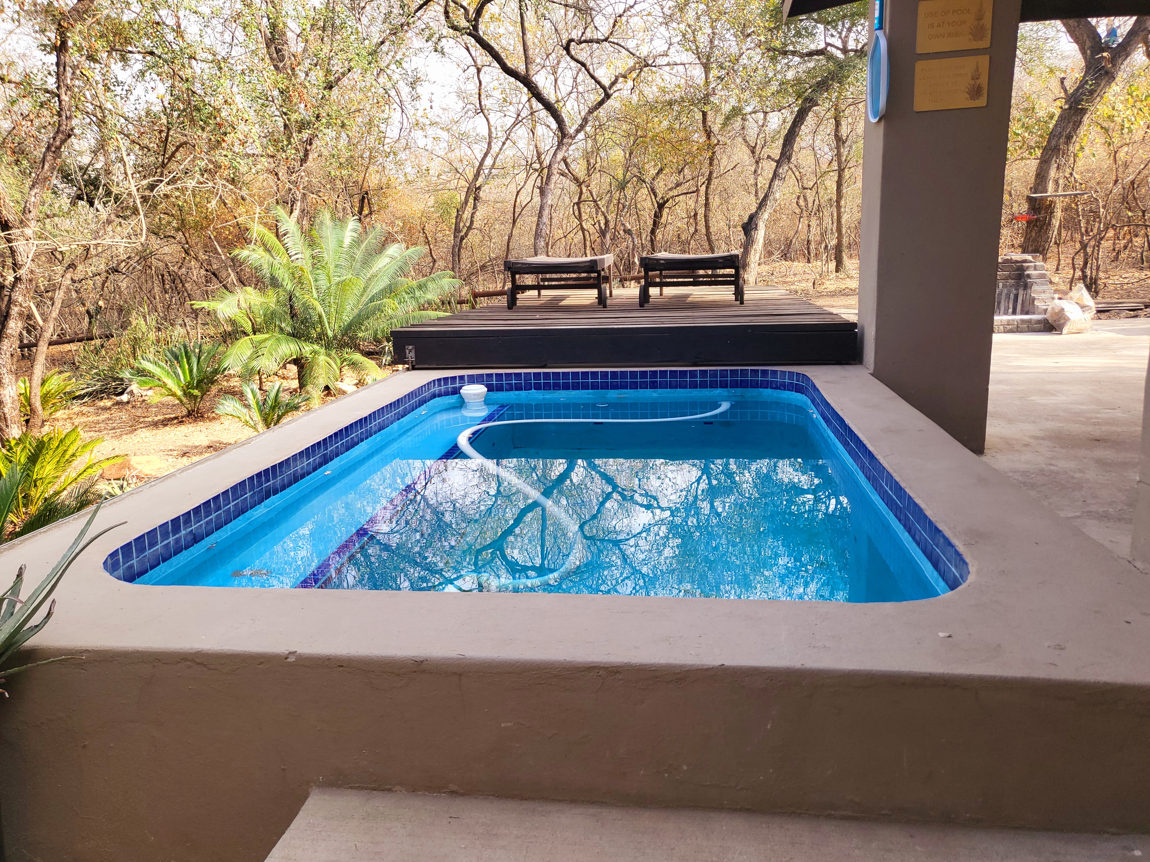 From the lounge, the design flows effortlessly to a covered patio and pool area, where the seller has thoughtfully created a sliding wooden deck to cover the pool when not in use. Relax on your deck chair and soak in the sounds of nature while enjoying the frequent visits from local wildlife. The view of the vacant lot enhances the privacy you desire.