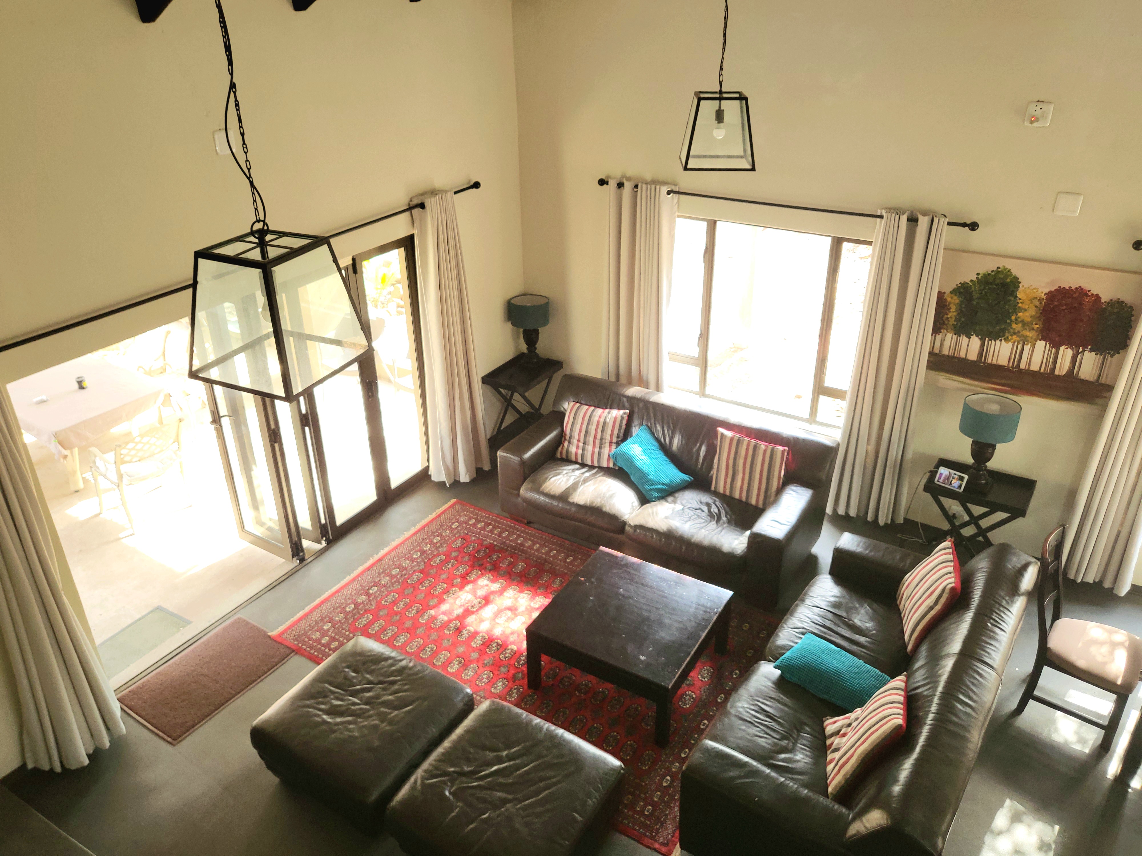 Upon entering, you're welcomed by an open-plan layout. The expansive windows and sliding doors create an elegant ambiance, allowing natural light to fill the kitchen, lounge, and dining areas. Double volume ceilings beautifully complement the home's design.
