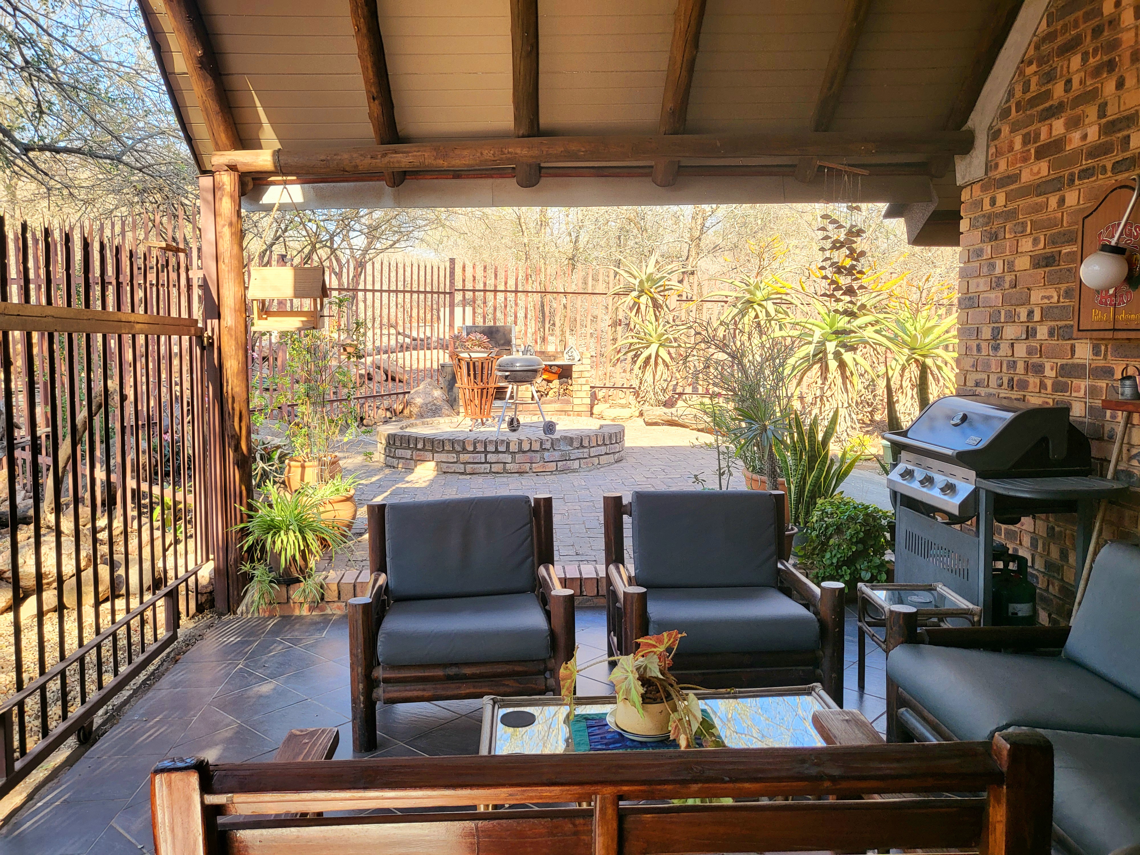 Step outside from the lounge to discover a covered patio, perfect for escaping the heat on those sunny days. The open fire pit sets the scene for enchanting evenings spent under the stars, ideal for braaiing while enjoying the soothing sounds of the night.