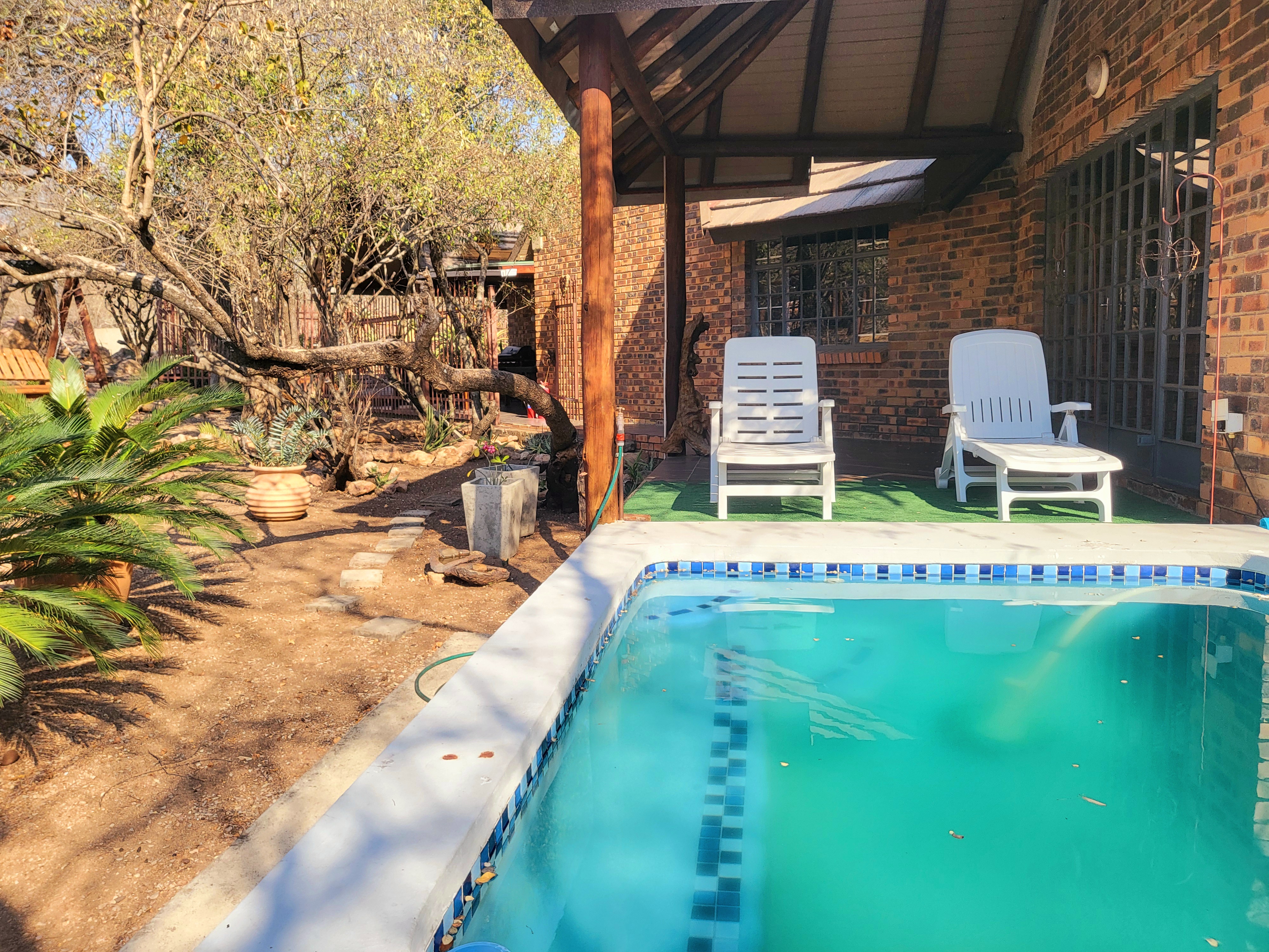 Completing this lovely home is a single thatch garage, carport, and a beautifully maintained bush garden, all enhanced by an elegant Harvey tiled house, 3kva inverter and backup water.