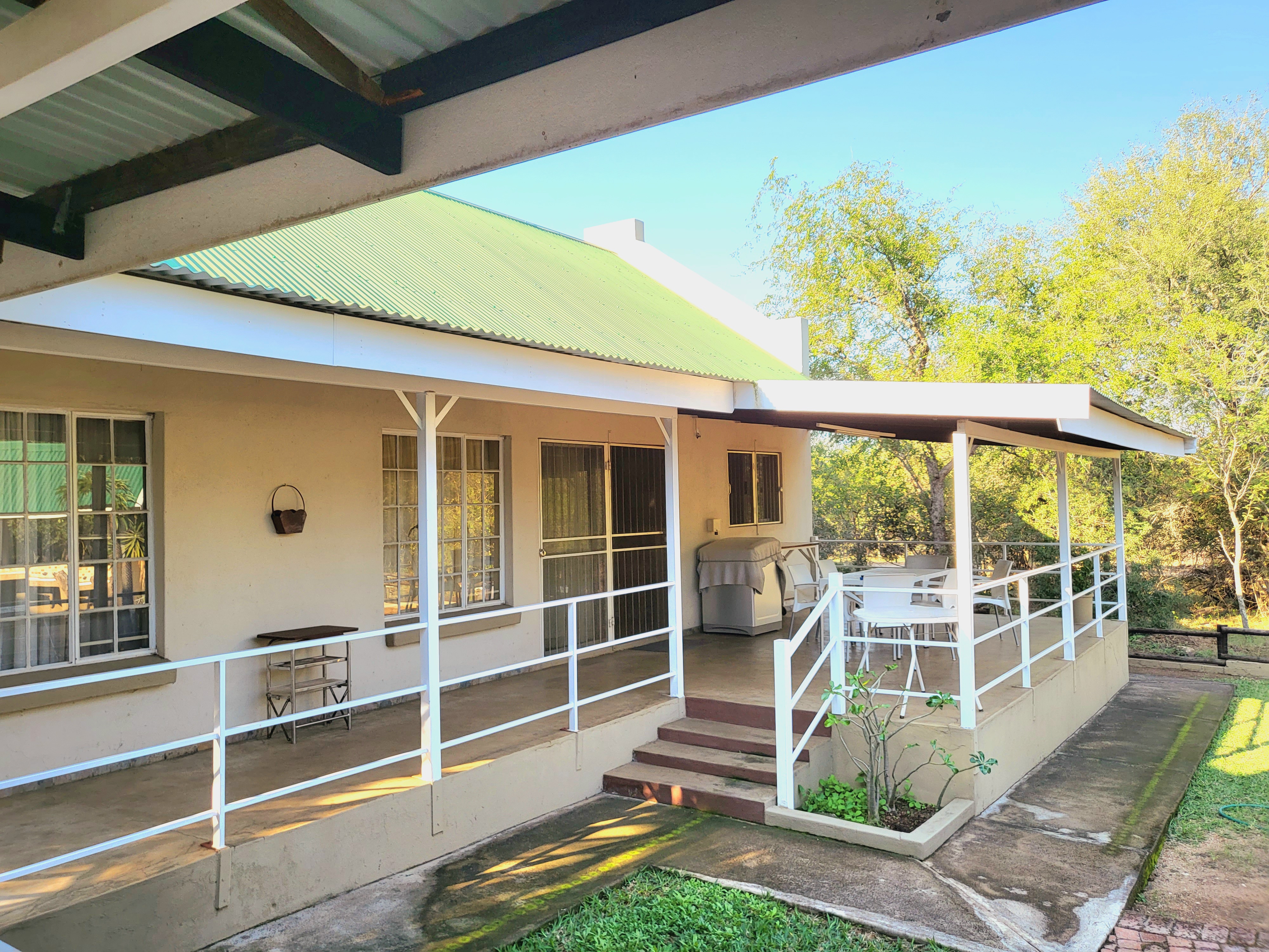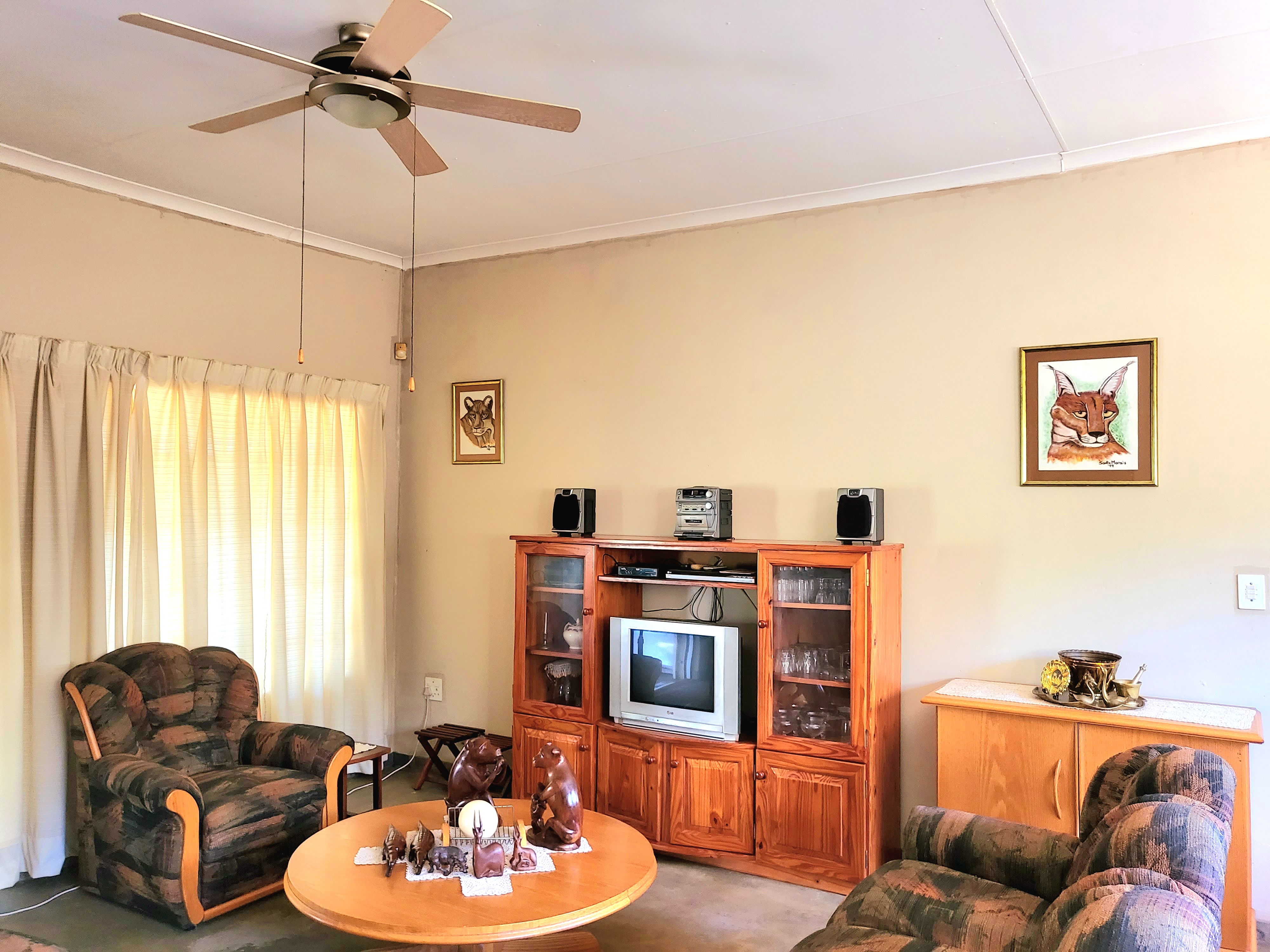 As you approach the property, you'll find a double garage, one side of which is designed for parking your caravan or game drive vehicle. This garage conveniently connects to the front patio, providing shelter from the sun or rain.