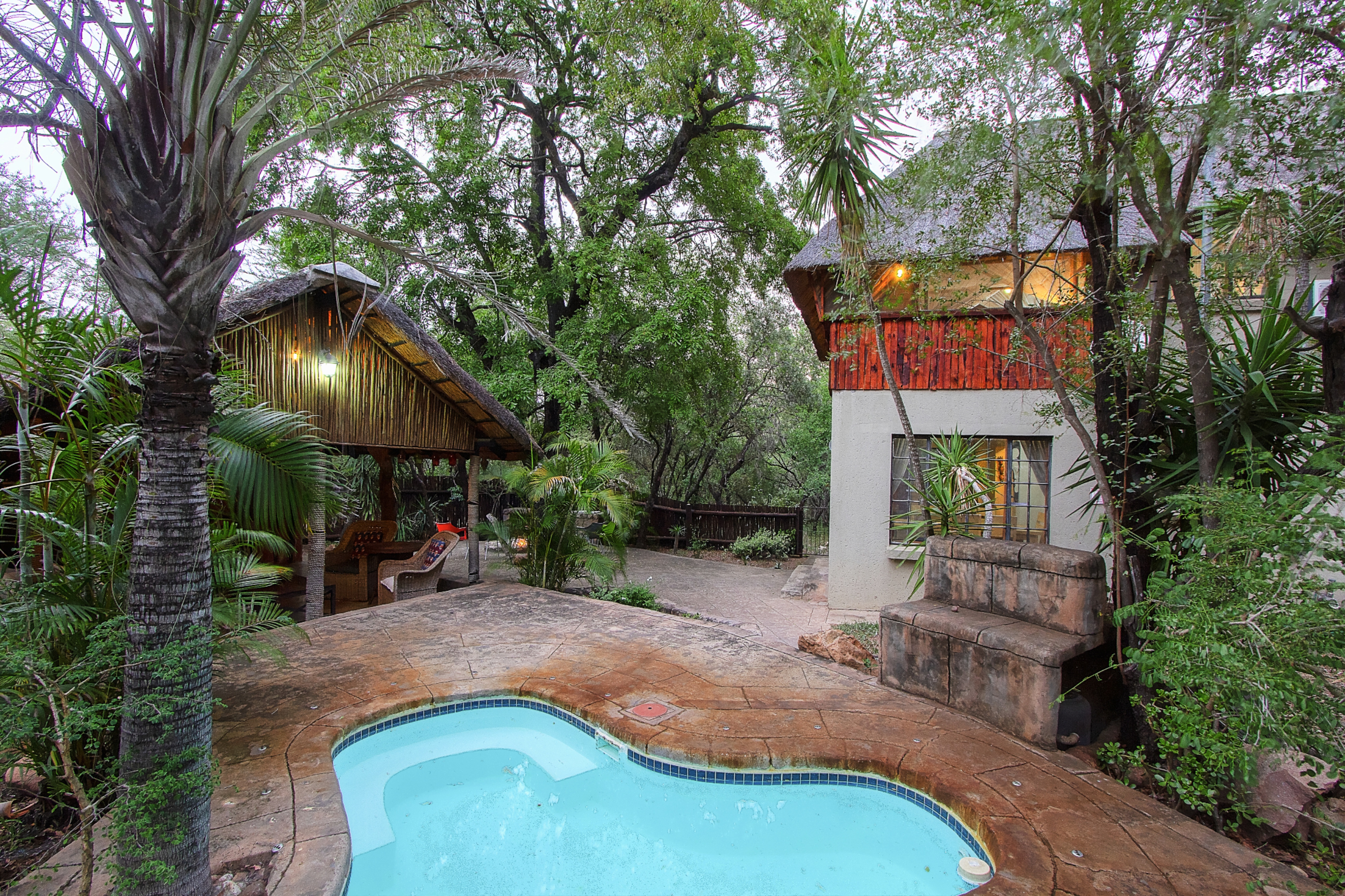 Step outside to discover a charming boma and a spacious lapa equipped with a built-in bar, ideal for seamless indoor and outdoor living. Enjoy refreshing dips in the sparkling pool, enhancing your outdoor experience.