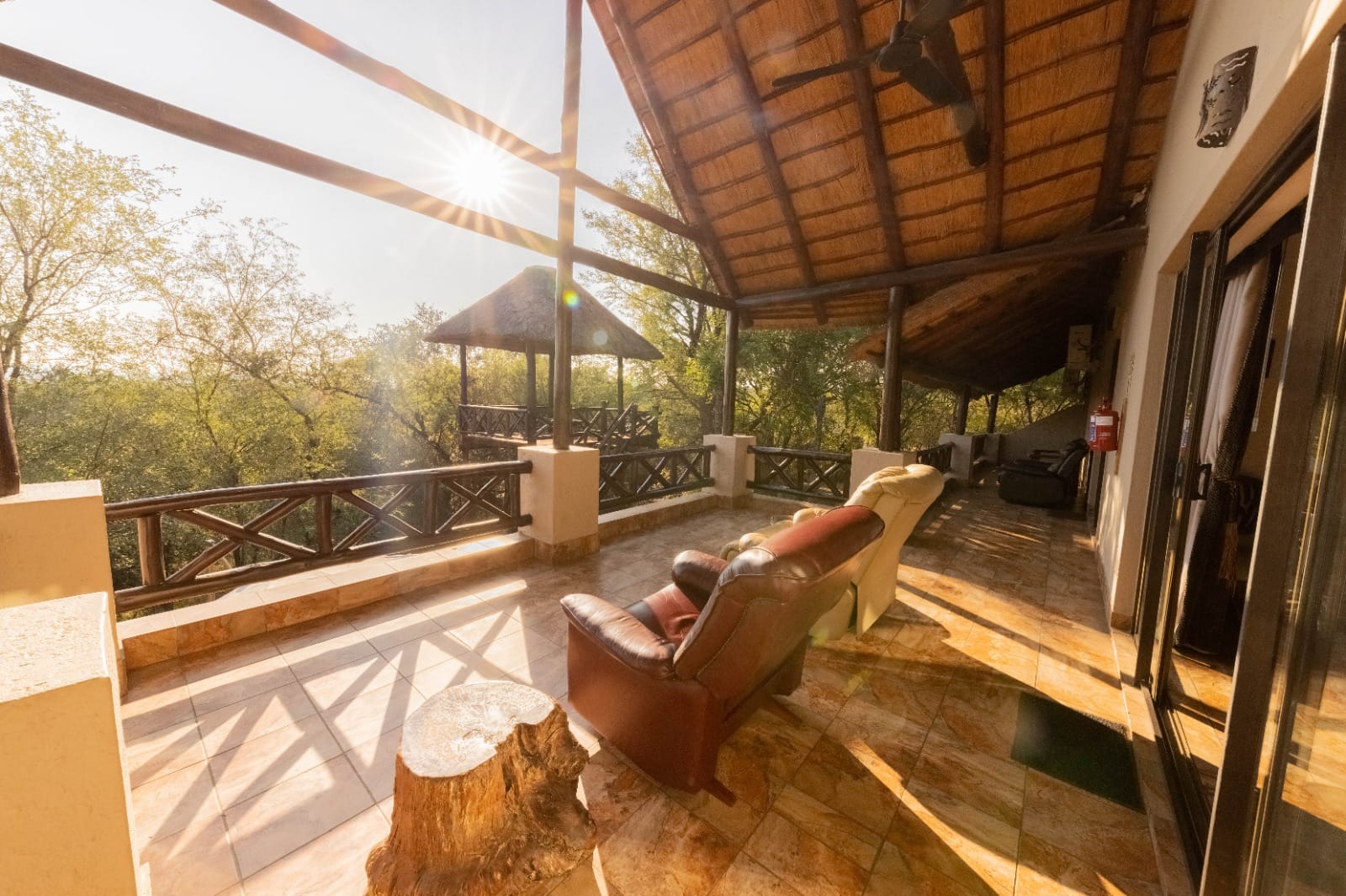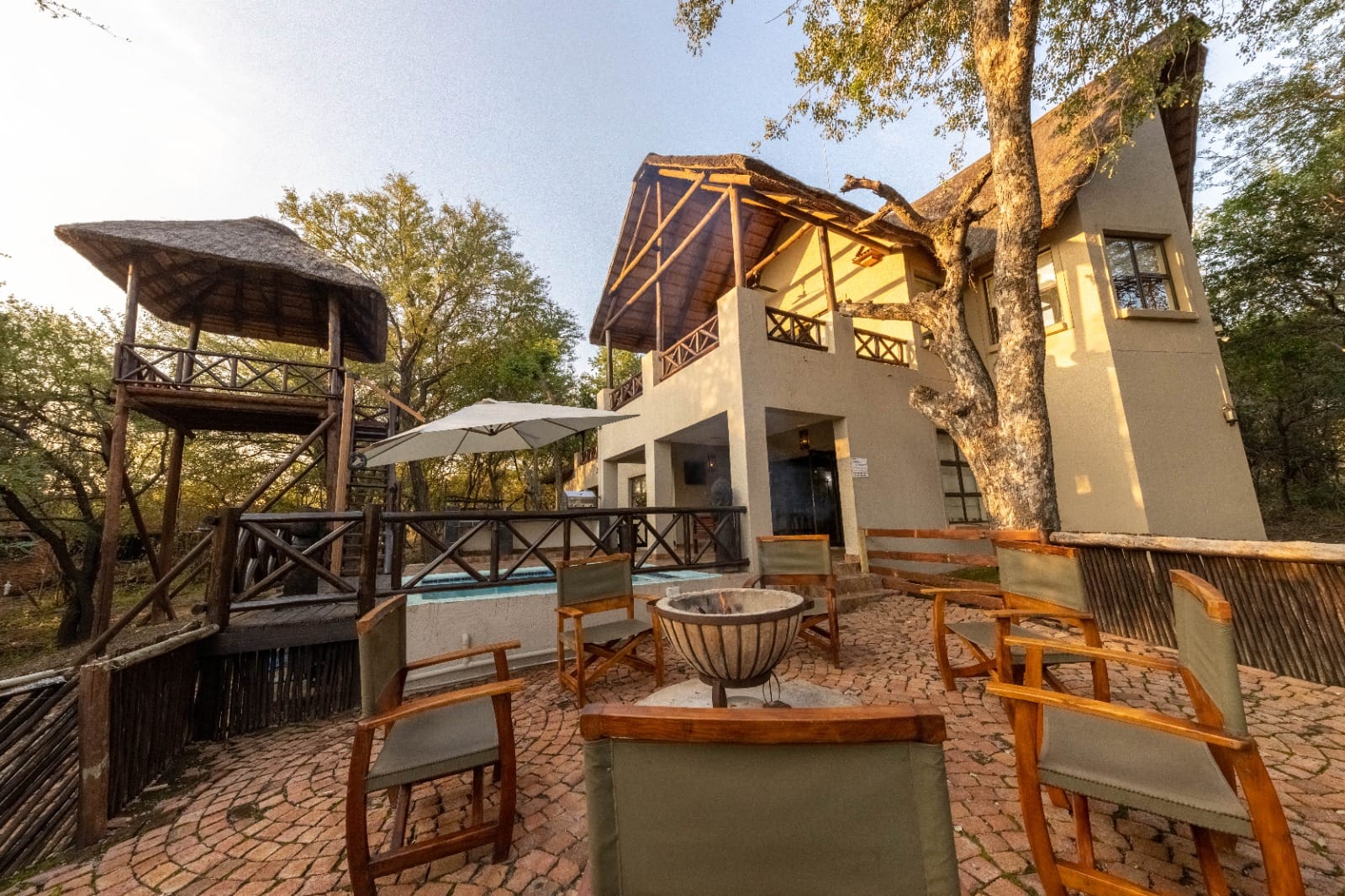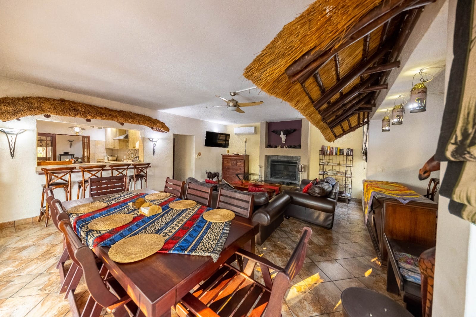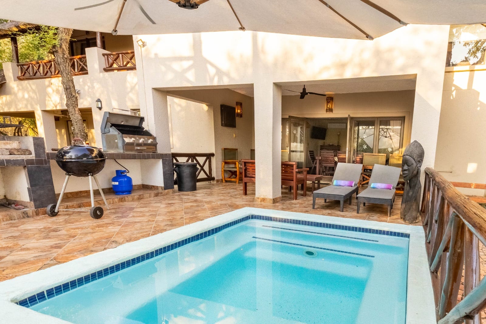 The open-plan living area expands onto a welcoming entertainment space designed for true Lowveld living: