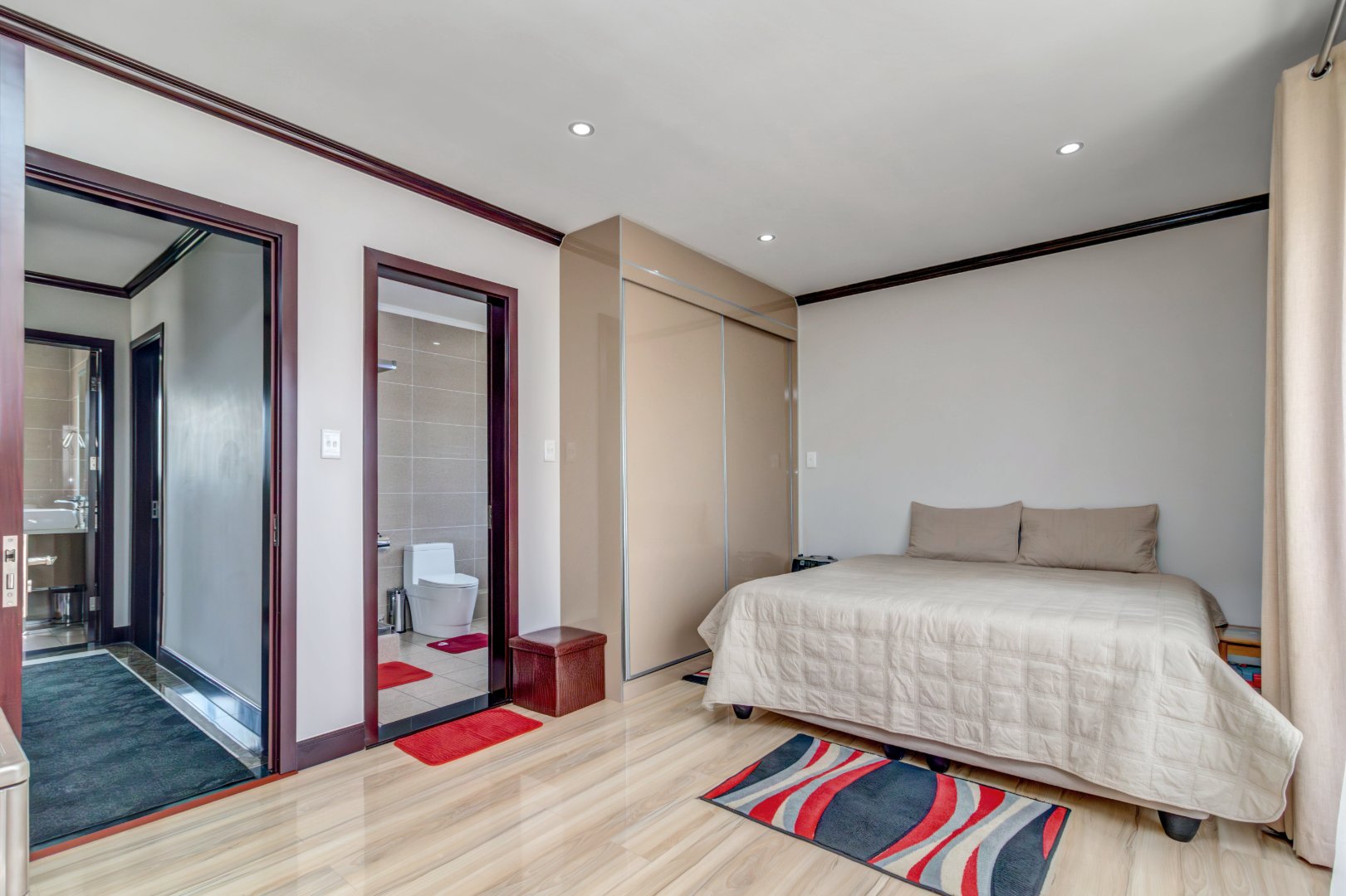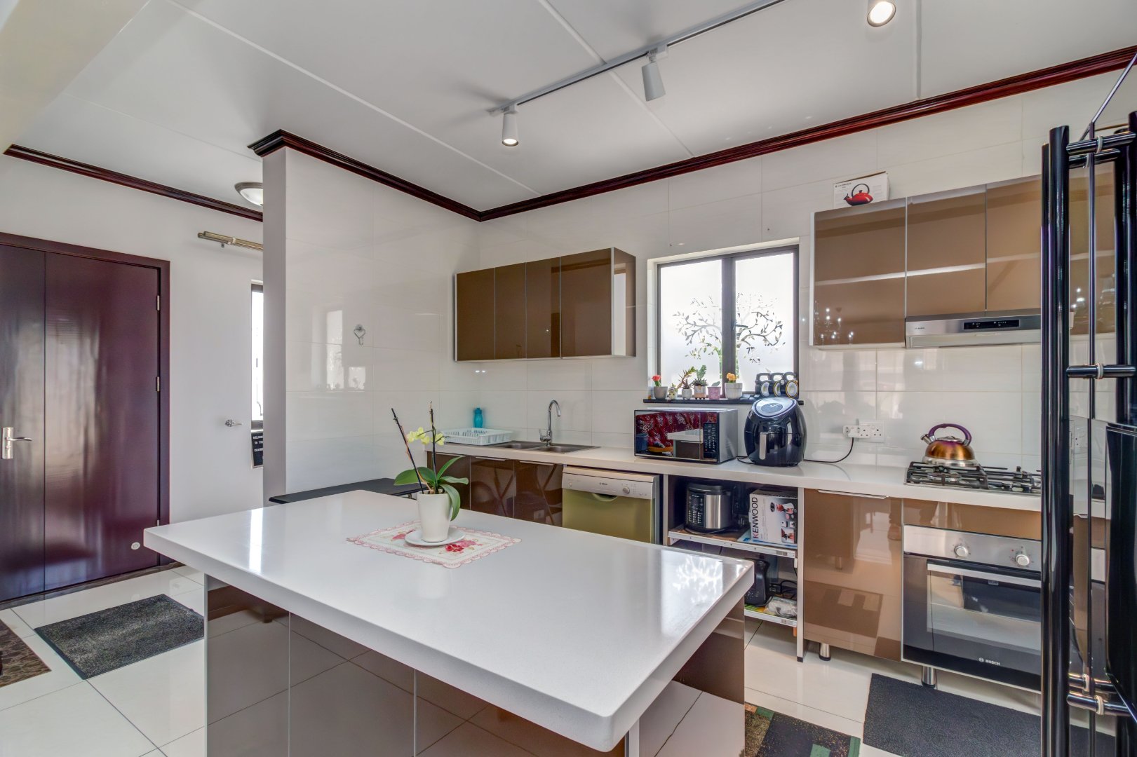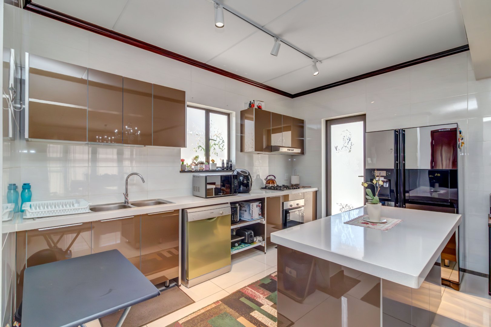 From the moment you enter, the attention to detail is unmistakable. The home is fully tiled, creating a seamless flow and a sophisticated canvas for contemporary living. The gourmet kitchen is a true centerpiece , showcasing imported, premium-grade granite countertops paired with high-gloss cabinetry that elevates both aesthetics and functionality. The same refined, high-gloss finishes continue into the bathrooms, bringing a cohesive and luxurious feel throughout.