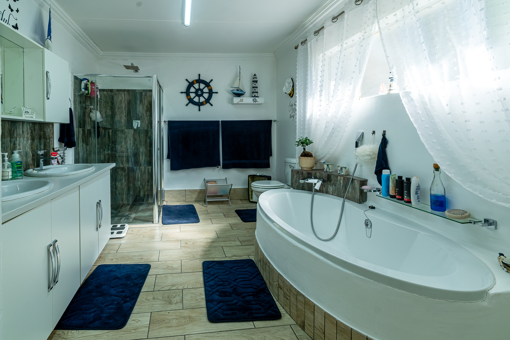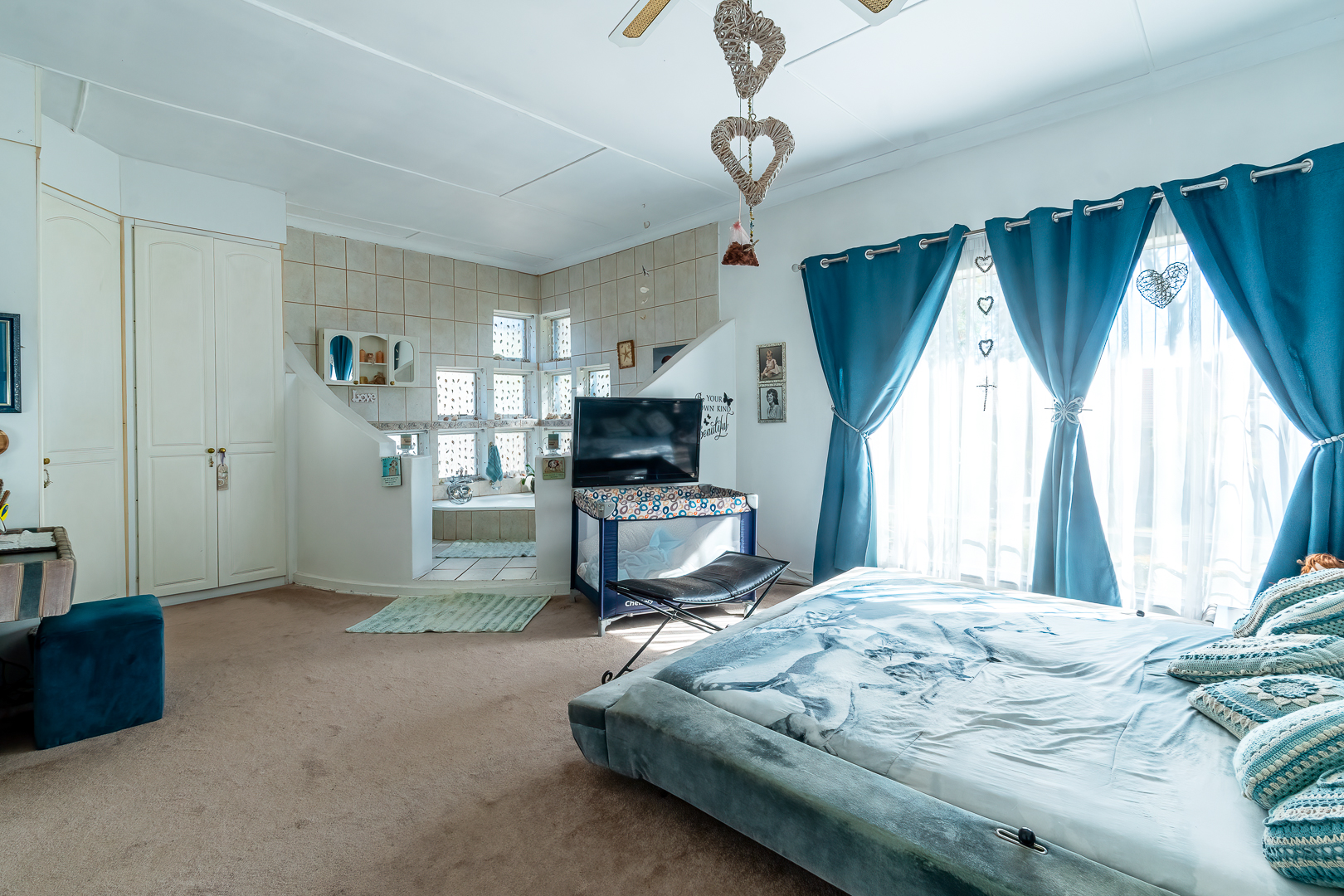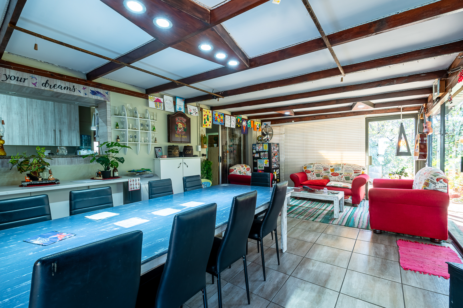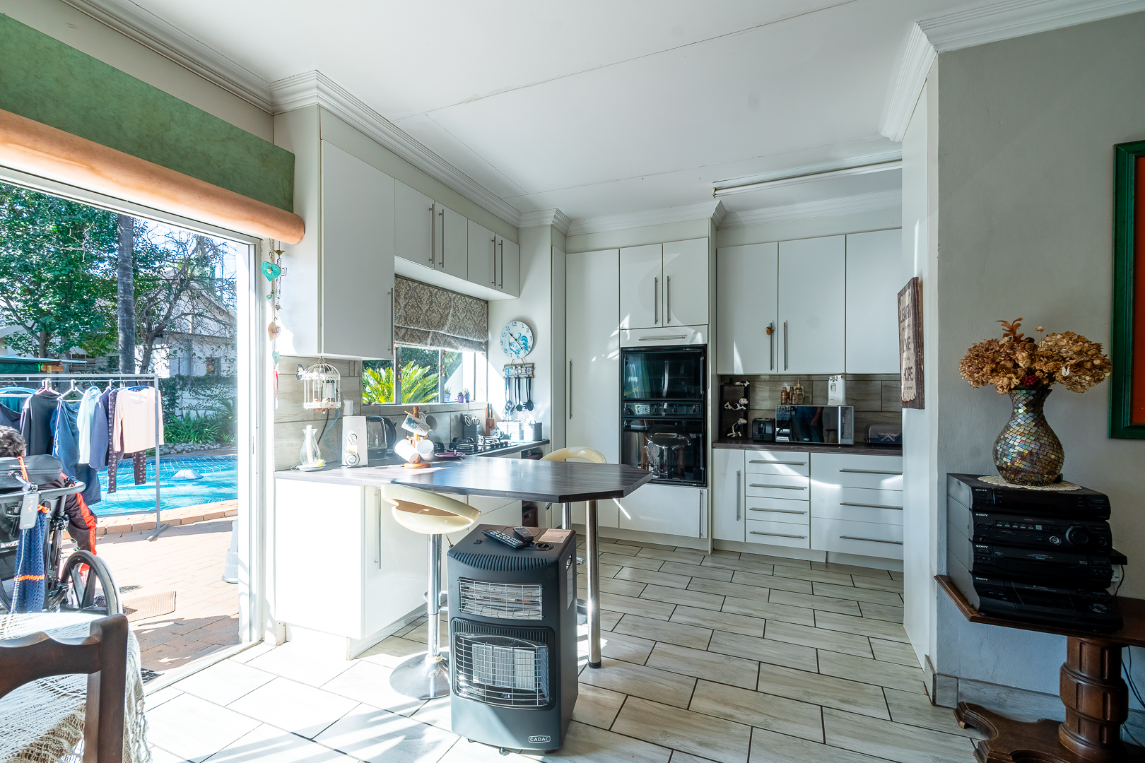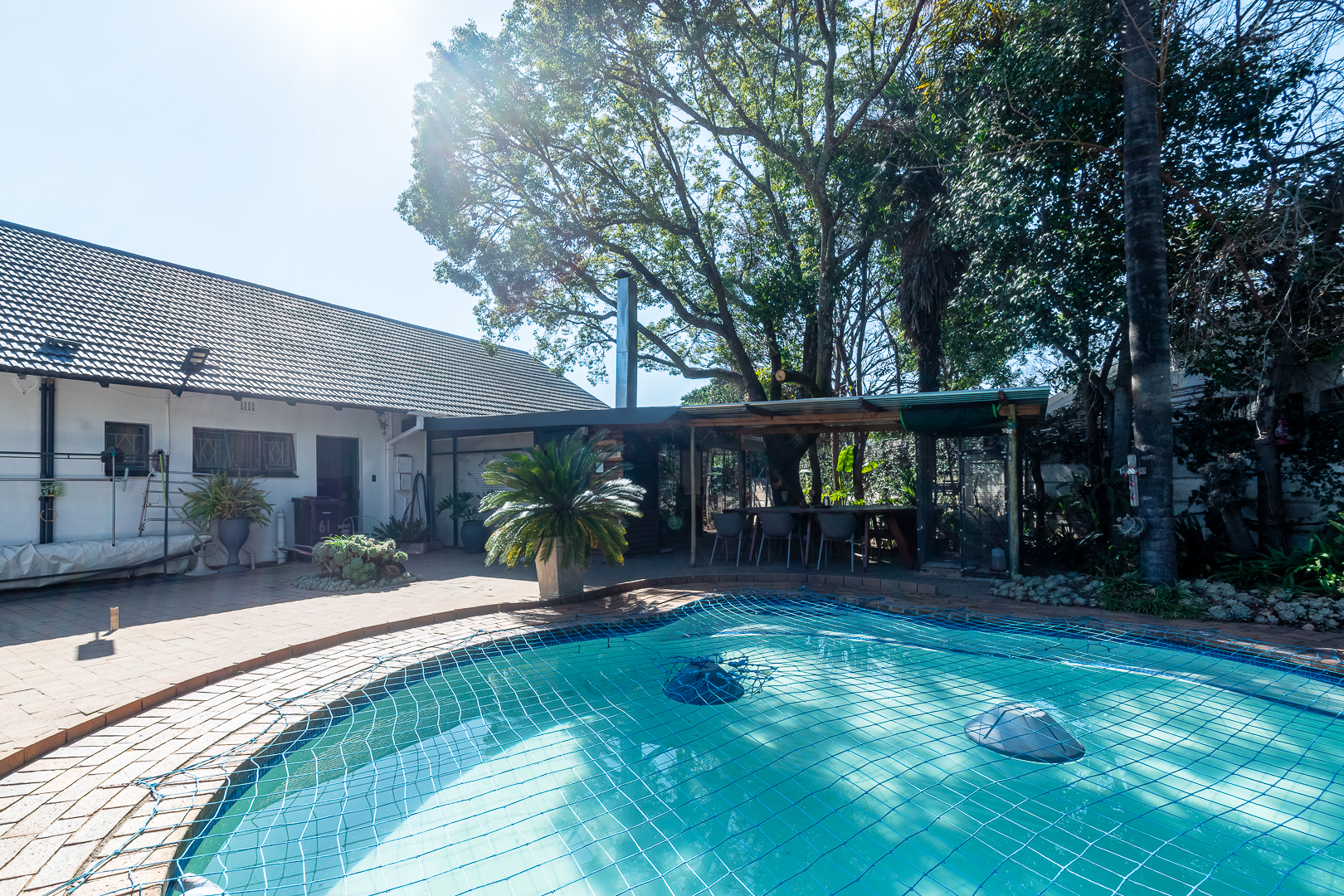 Three bedrooms, two bathrooms, closed patio fitted with braai and an open air covered patio with lovely pool.
