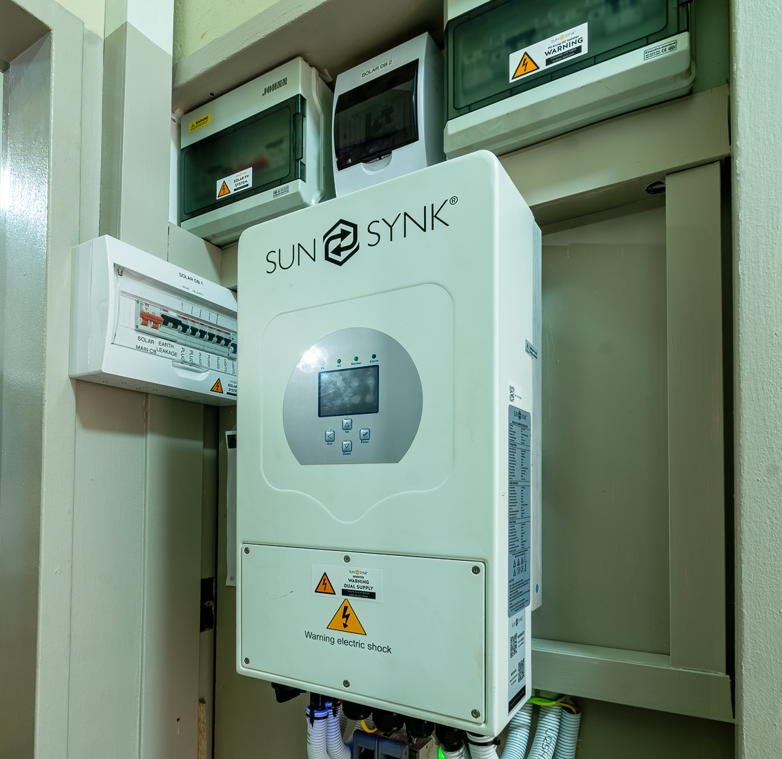 - Solar panels, inverter and battery system for reliable power.