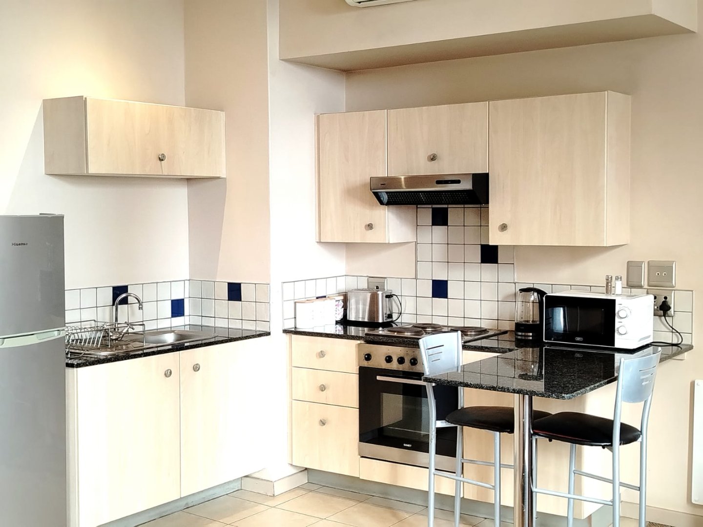 Residents enjoy key-coded access, prepaid electricity, available parking, and 24-hour security. On-site conveniences include laundry facilities, as well as a restaurant, bar, and club located on the ground floor. The property is ideally positioned near a Gautrain bus stop, with seamless access to major roads and freeways, and is surrounded by prominent corporate offices.