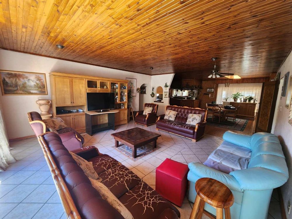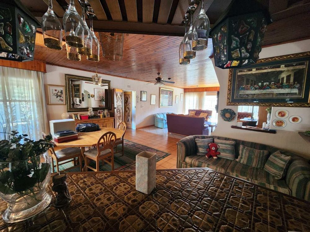 Boasting four generously sized bedrooms with built-in cupboards and tiled floors, this home includes a main suite with a full ensuite and a second large bedroom with its own ensuite and walk-in closet—ideal for conversion into a private flatlet. The guest bathroom is impressively spacious with a bath, shower, and double basin.