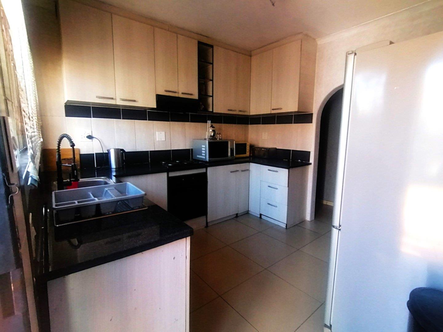 Nestled on a quiet street and a generous 1035 m2 stand. This residence is ideal for family living and offers a design featuring 3 bedrooms, 2 bathrooms. The sunlit main bedroom includes a spacious ensuite bathroom, complete with granite countertops, a guest toilet and a study room, perfect for remote work or homework.lovely neat kitchen equipped with essential cabinet space. Family dining area or unwind in the spacious family lounge, which boasts a sliding door leading to an outside patio, perfect for relaxing moments and family gatherings.