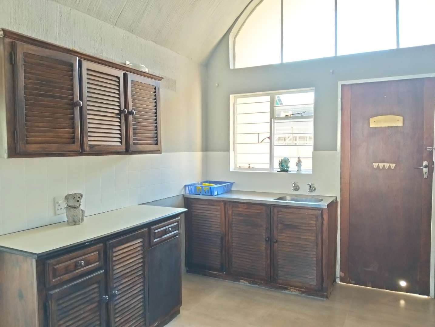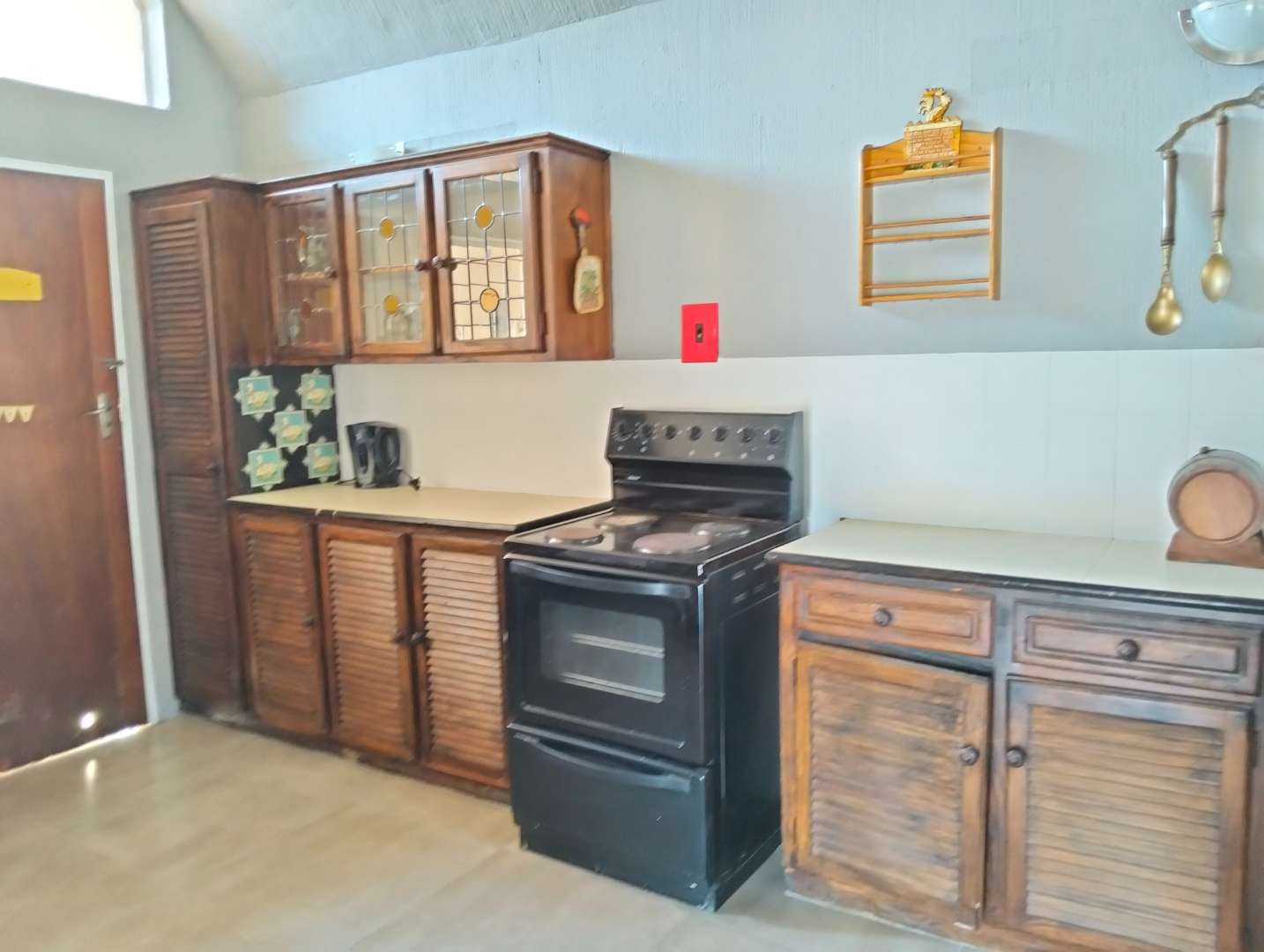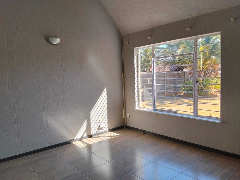 Versatility defines this home with a study/office space that can easily transform into a potential bachelor pad, complete with its own shower, basin, and toilet. The kitchen is both functional and charming, boasting wooden built-in cupboards, a freestanding electric stove, and a single basin, making it a delightful space for culinary adventures.