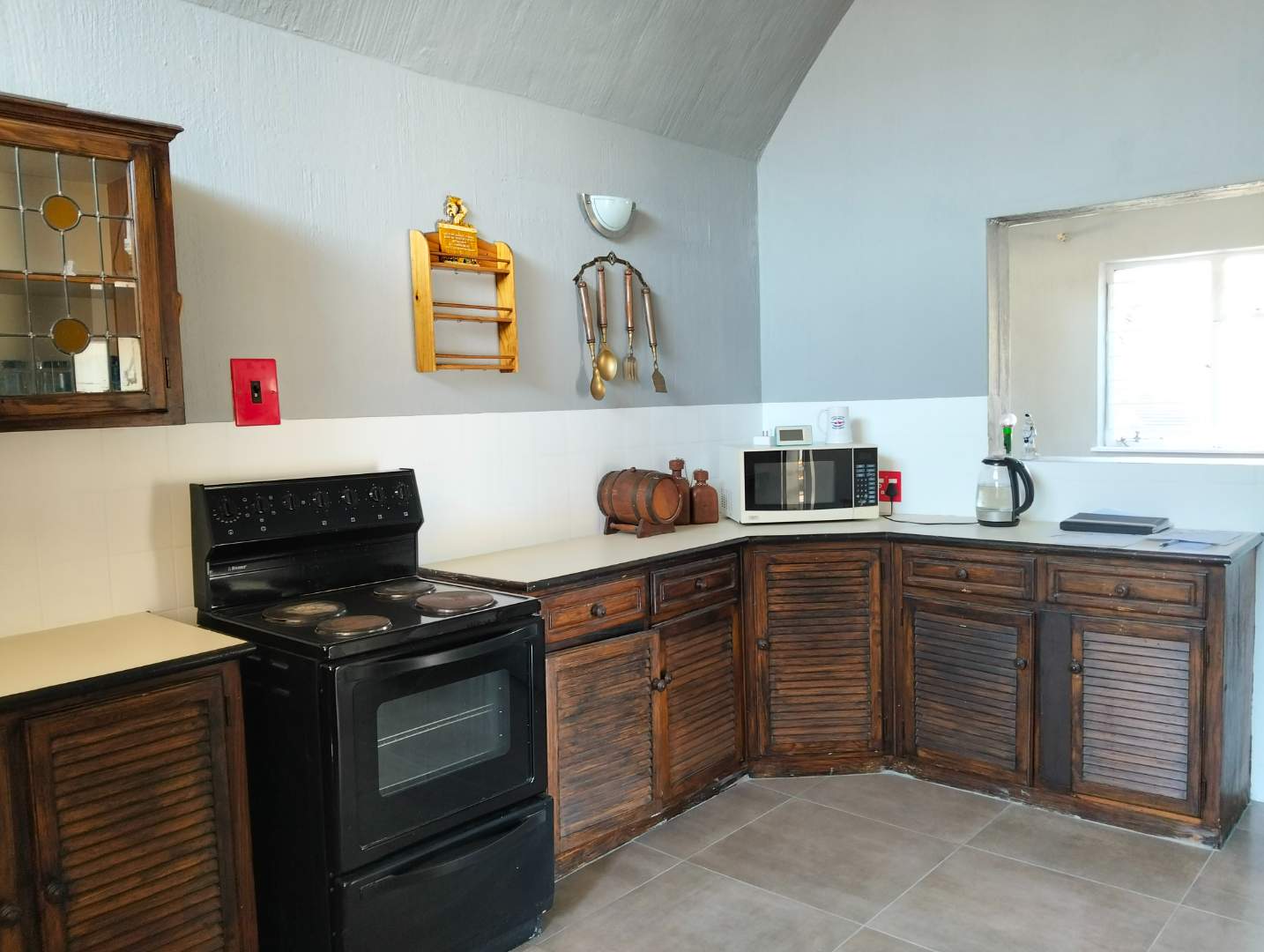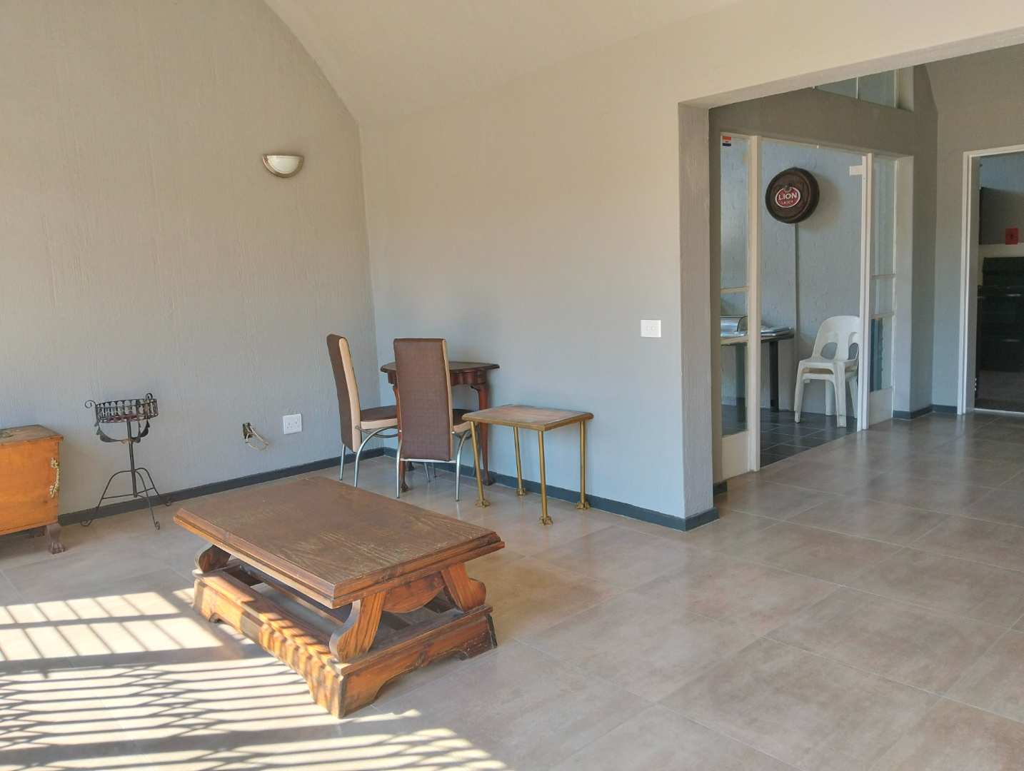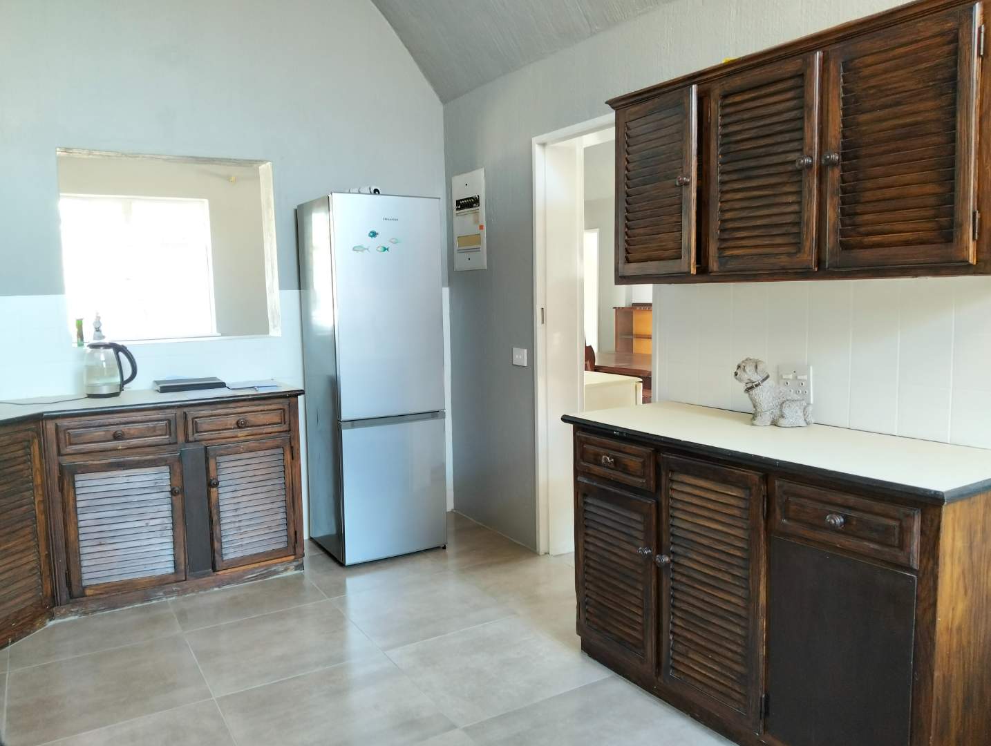 Versatility defines this home with a study/office space that can easily transform into a potential bachelor pad, complete with its own shower, basin, and toilet. The kitchen is both functional and charming, boasting wooden built-in cupboards, a freestanding electric stove, and a single basin, making it a delightful space for culinary adventures.