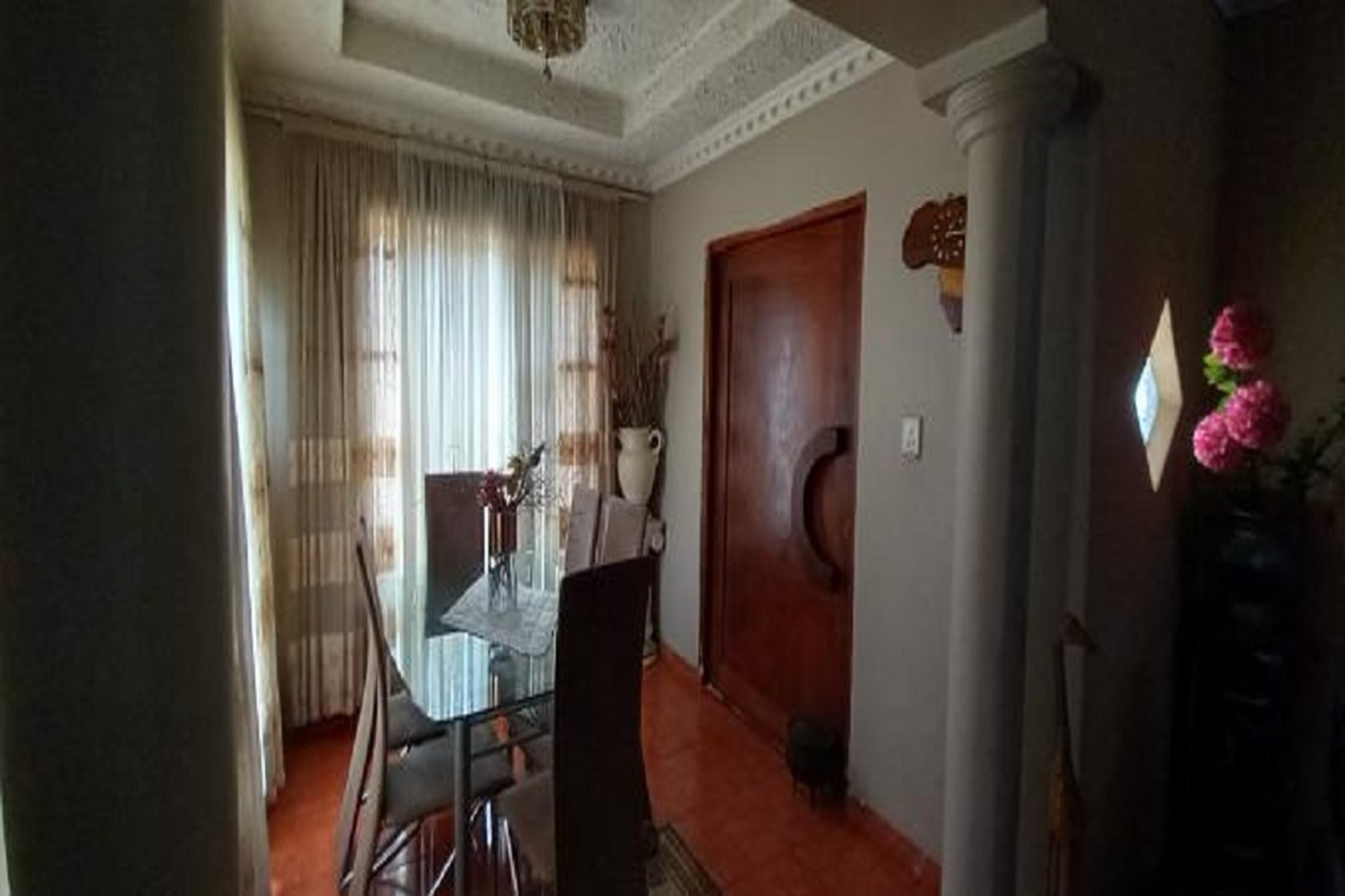 Step inside to discover spacious interiors adorned with elegant tiled floors and ceiling fans for comfort year-round. The bedrooms feature built-in closets, ensuring ample storage space, while the master suite boasts an en-suite bathroom complete with a shower. Preparing meals will be a delight in the well-appointed kitchen featuring a sleek hob. Pets are allowed, making it an ideal choice for animal lovers.