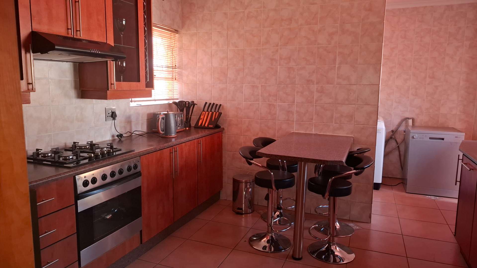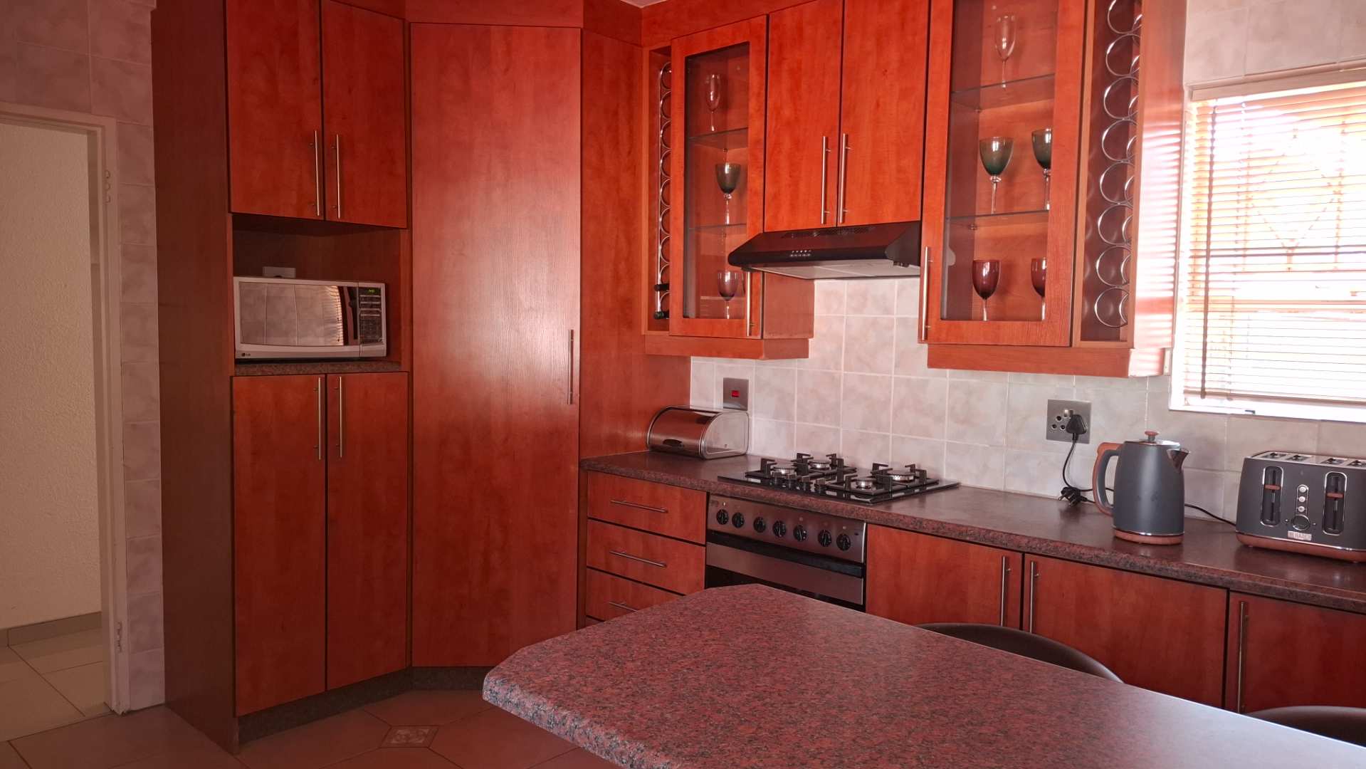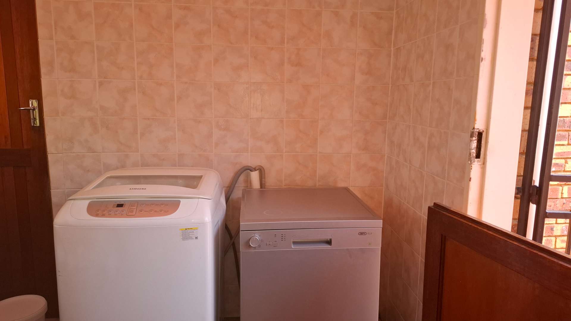 Modern low maintenance home offers tiled lounge with fireplace, dining room. Cherrywood kitchen with gas hob and electric oven, breakfast nook and separate laundry area.