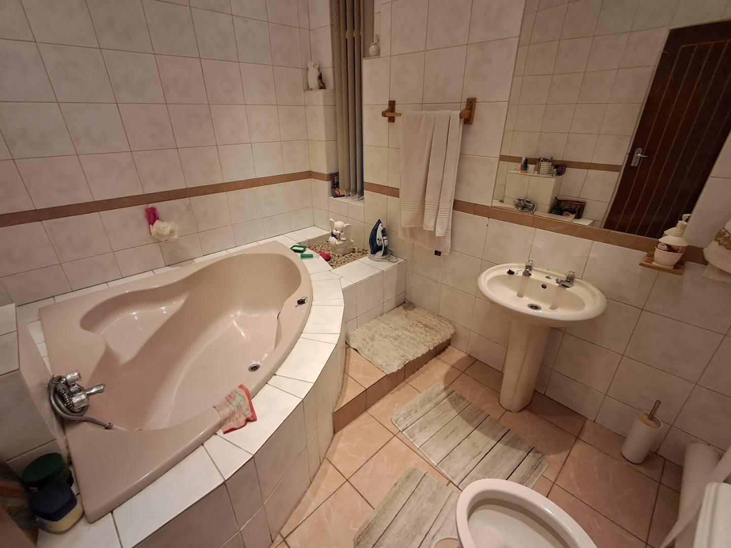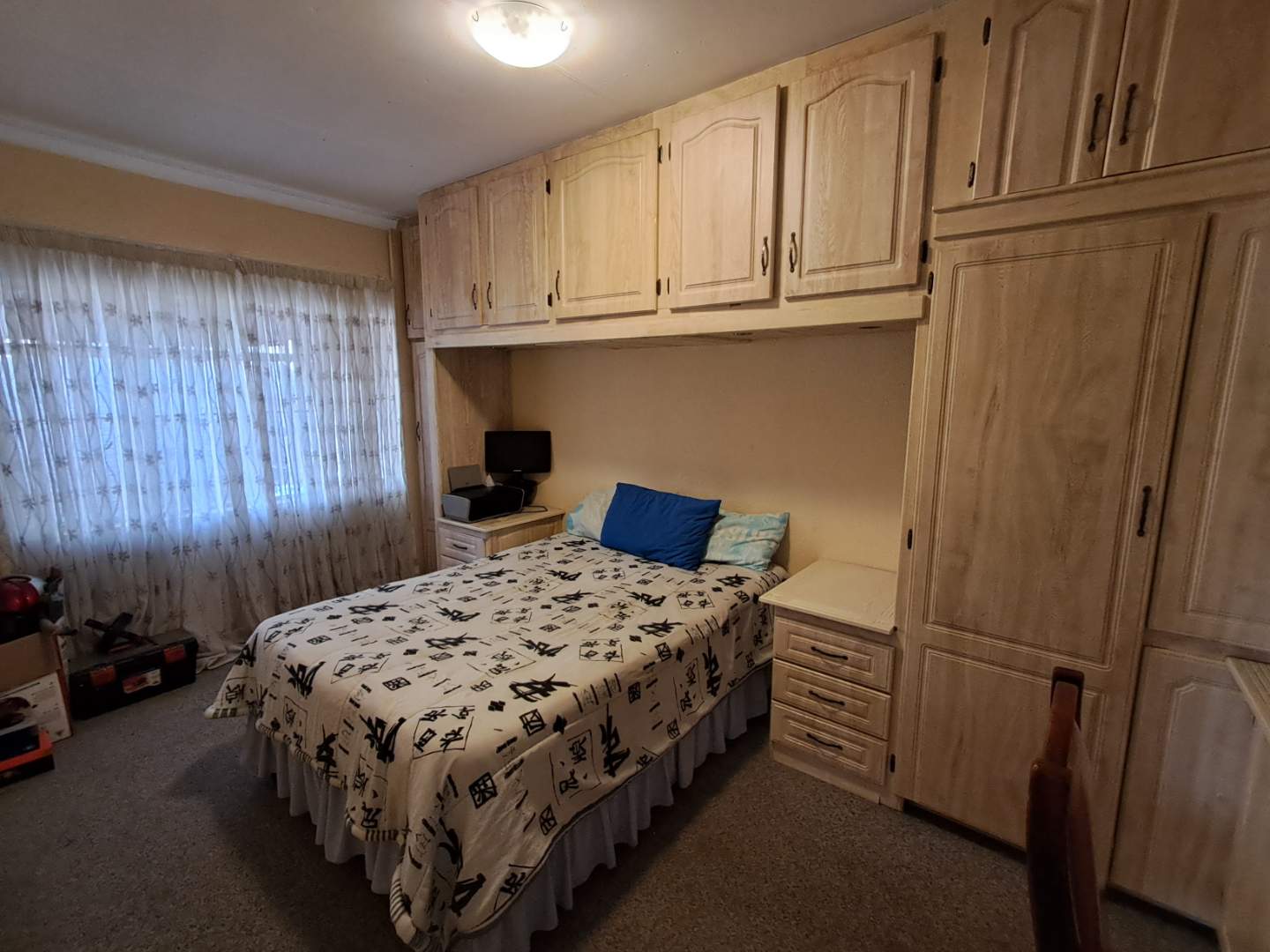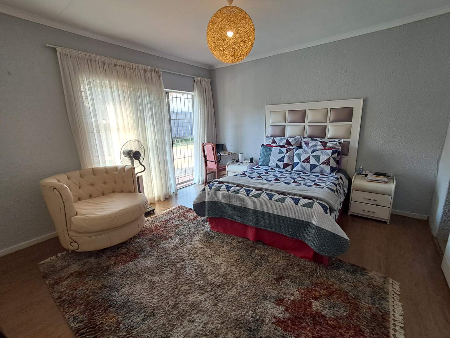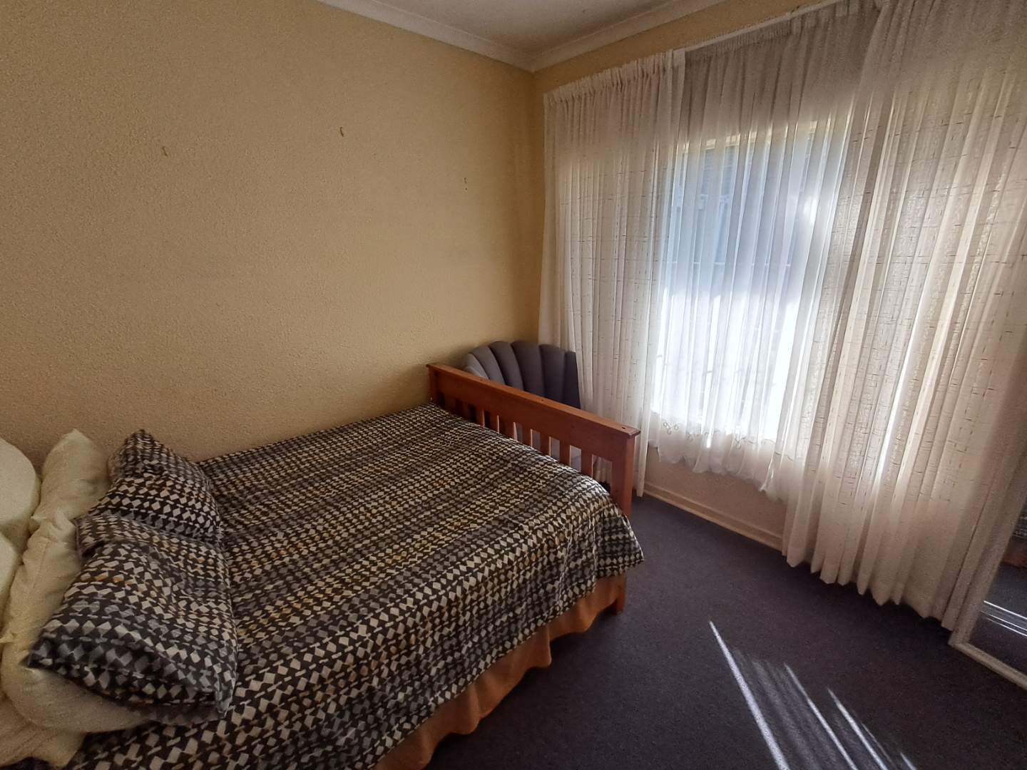 The pool area can be accessed from the entertainment area, master bedroom, or the attached cottage. This 2-bedroom cottage features a full bathroom, open-plan kitchen, lounge, and dining room. While the cottage is carpeted in the living areas, the kitchen and bathroom are tiled for practicality. Additionally, it includes a prepaid meter for convenience.