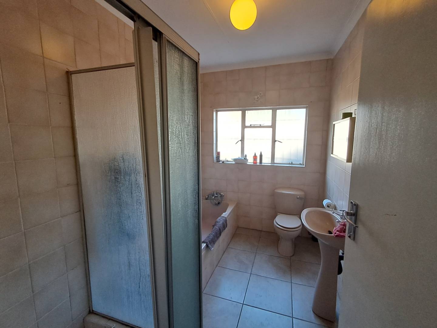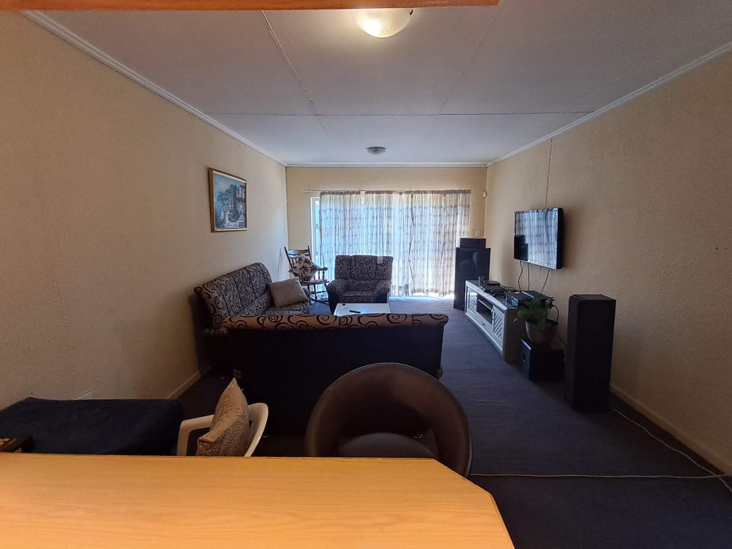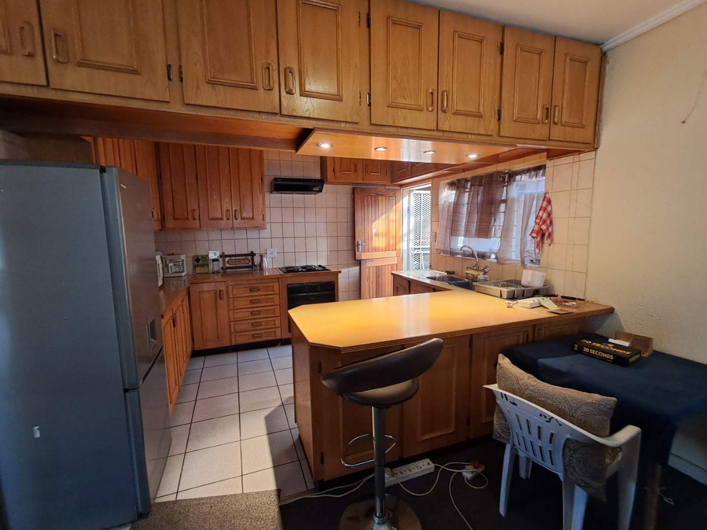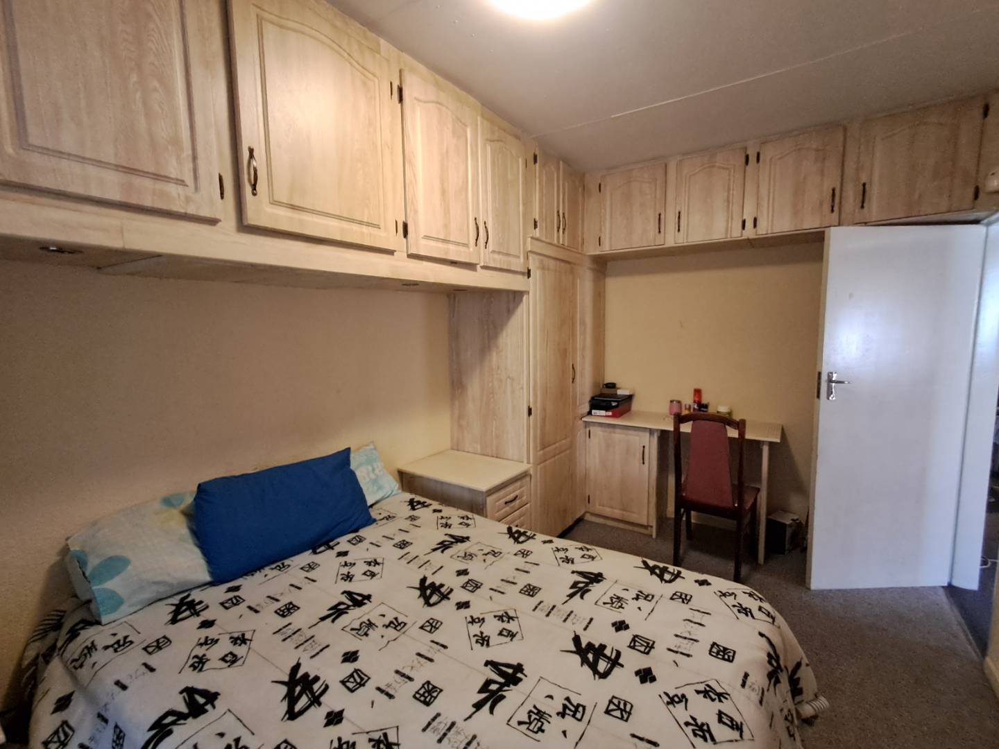 The pool area can be accessed from the entertainment area, master bedroom, or the attached cottage. This 2-bedroom cottage features a full bathroom, open-plan kitchen, lounge, and dining room. While the cottage is carpeted in the living areas, the kitchen and bathroom are tiled for practicality. Additionally, it includes a prepaid meter for convenience.