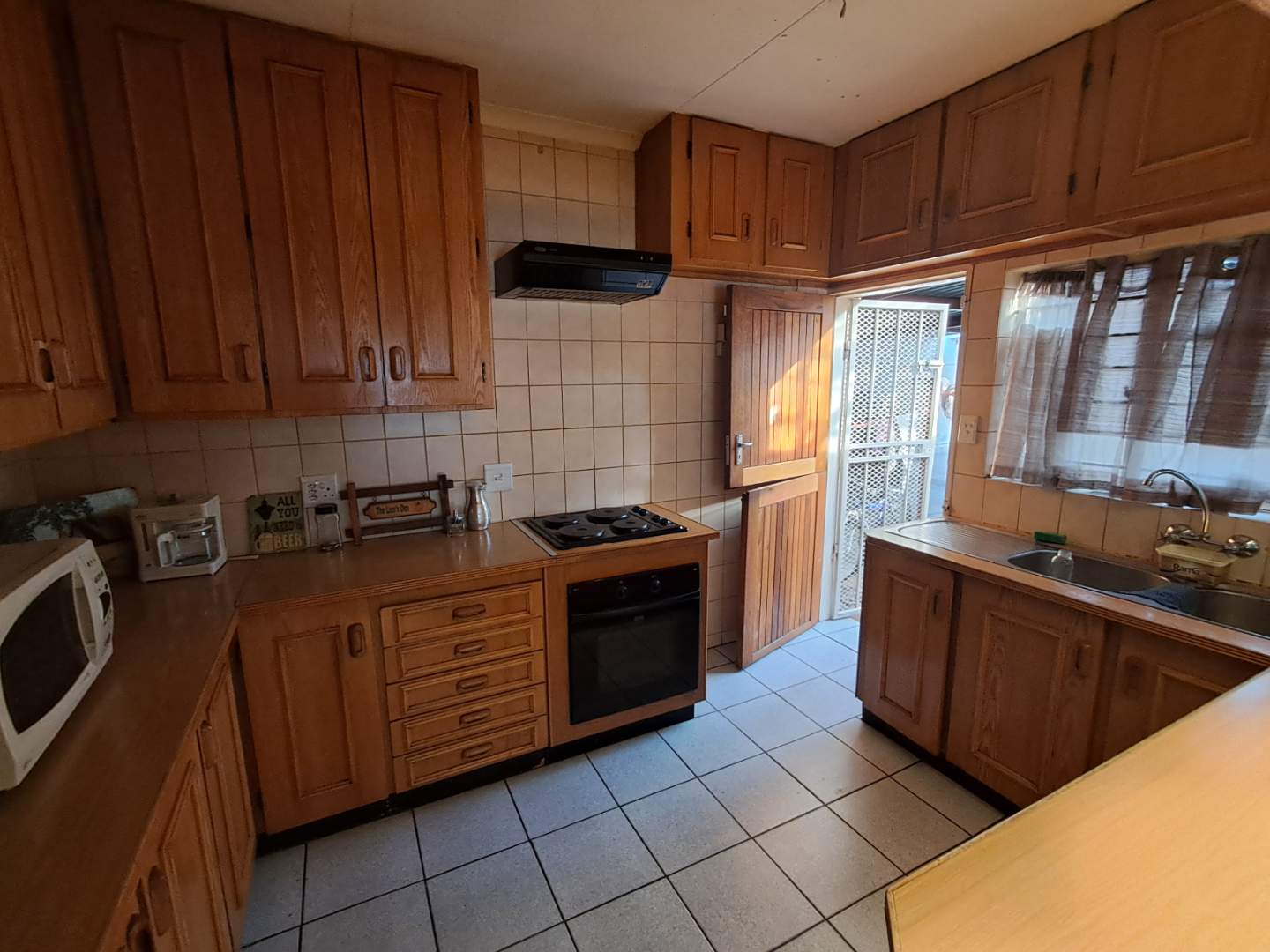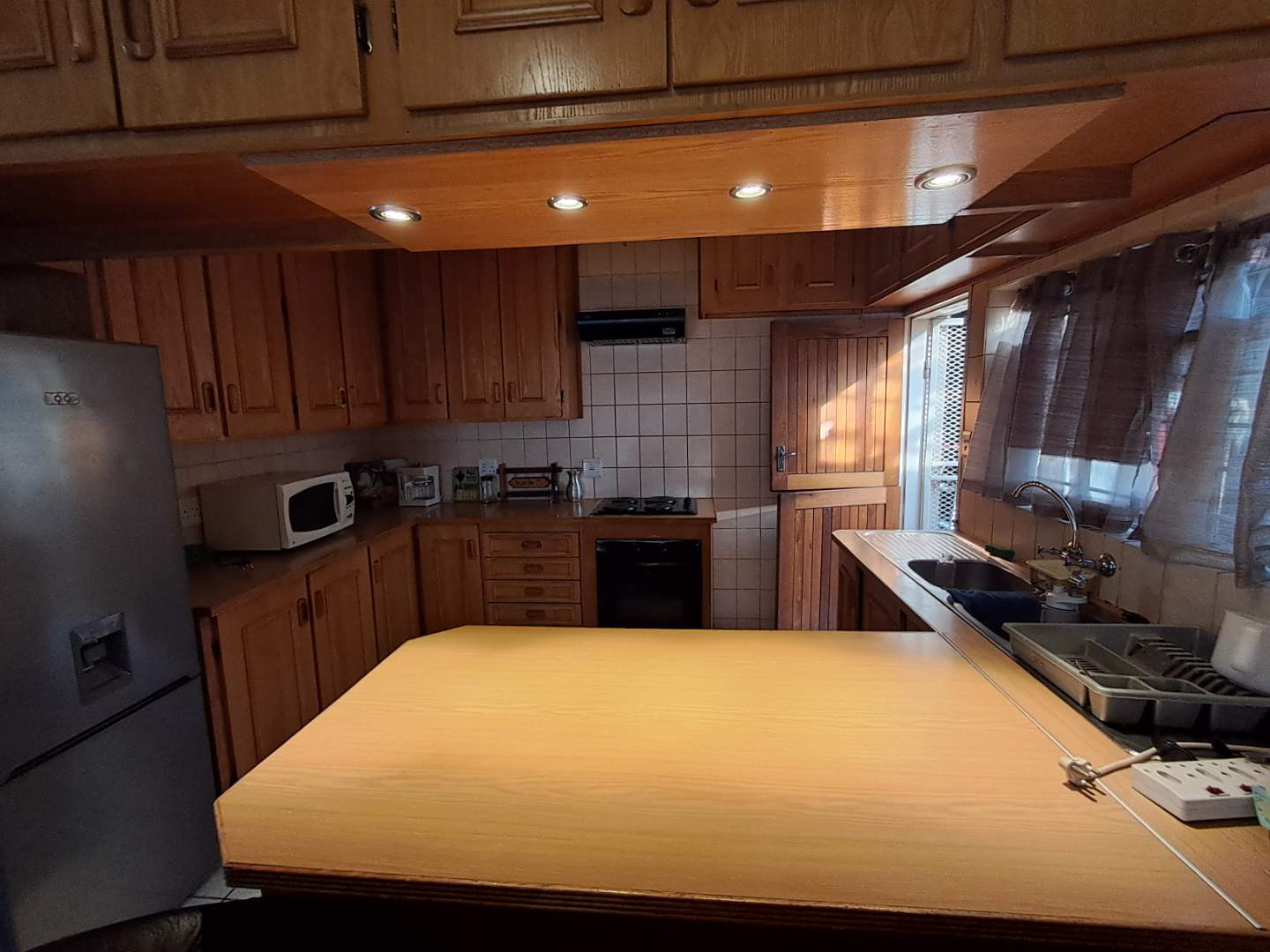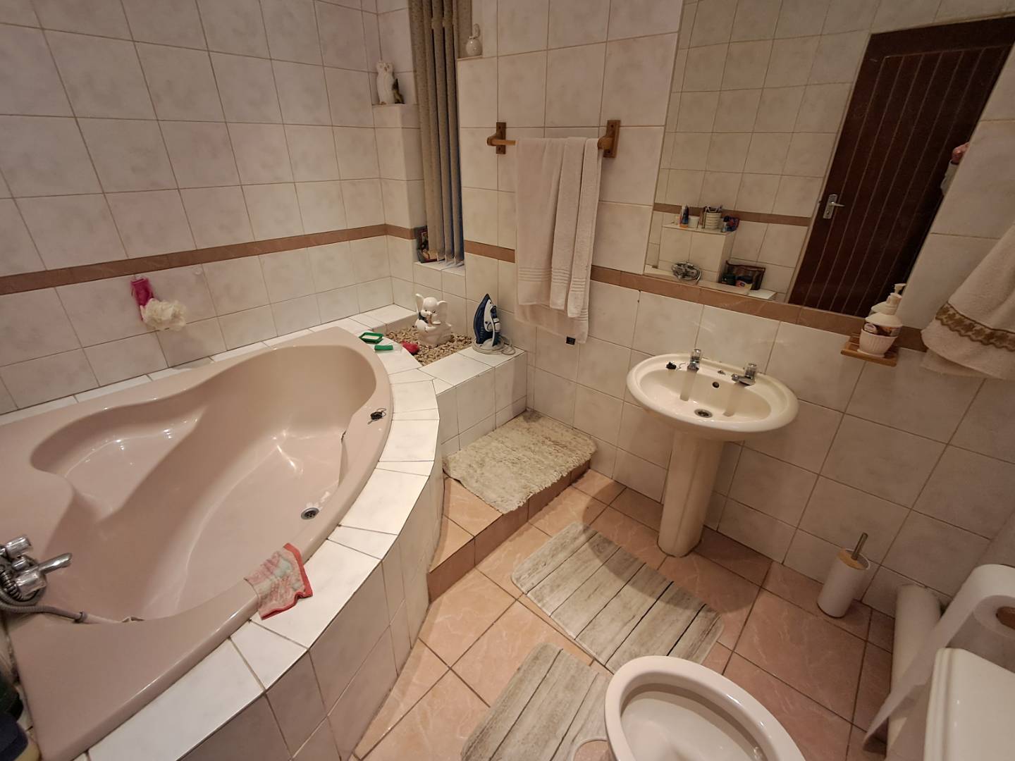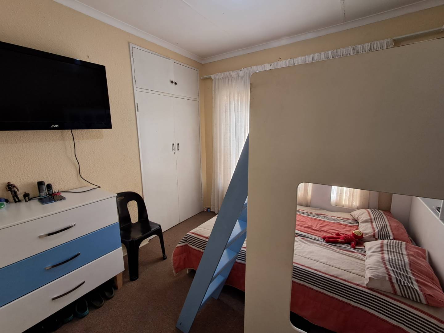 The pool area can be accessed from the entertainment area, master bedroom, or the attached cottage. This 2-bedroom cottage features a full bathroom, open-plan kitchen, lounge, and dining room. While the cottage is carpeted in the living areas, the kitchen and bathroom are tiled for practicality. Additionally, it includes a prepaid meter for convenience.