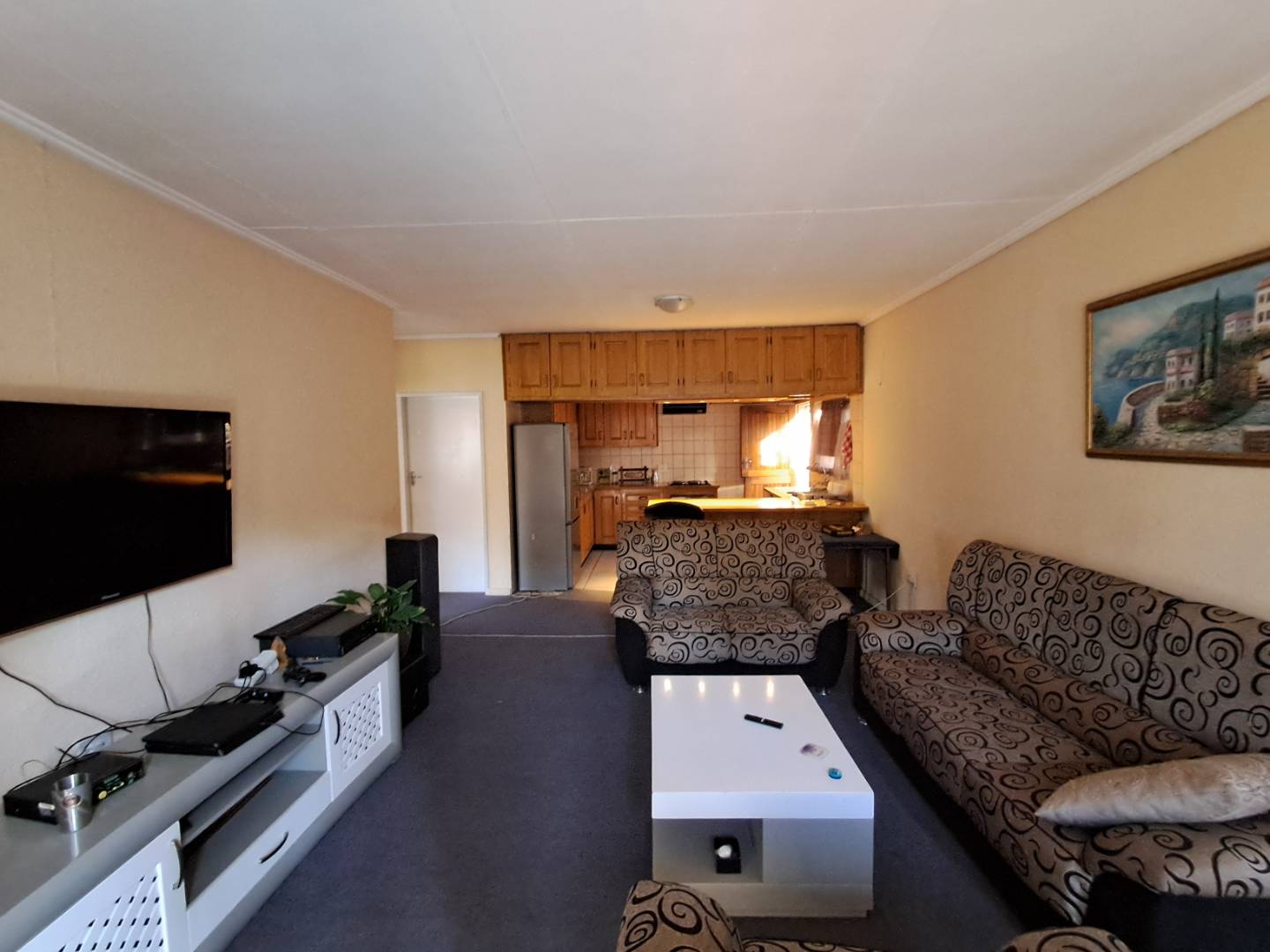 The heart of the home is the kitchen, equipped with a double sink, gas stove, a water point for your washing machine, and plenty of cupboard space. Two of the bedrooms come with ensuite bathrooms. While the bedrooms are carpeted for comfort, the main bedroom features a different flooring. The modern bathrooms include two with a shower, basin, and toilet, and one with a bath, basin, and toilet.