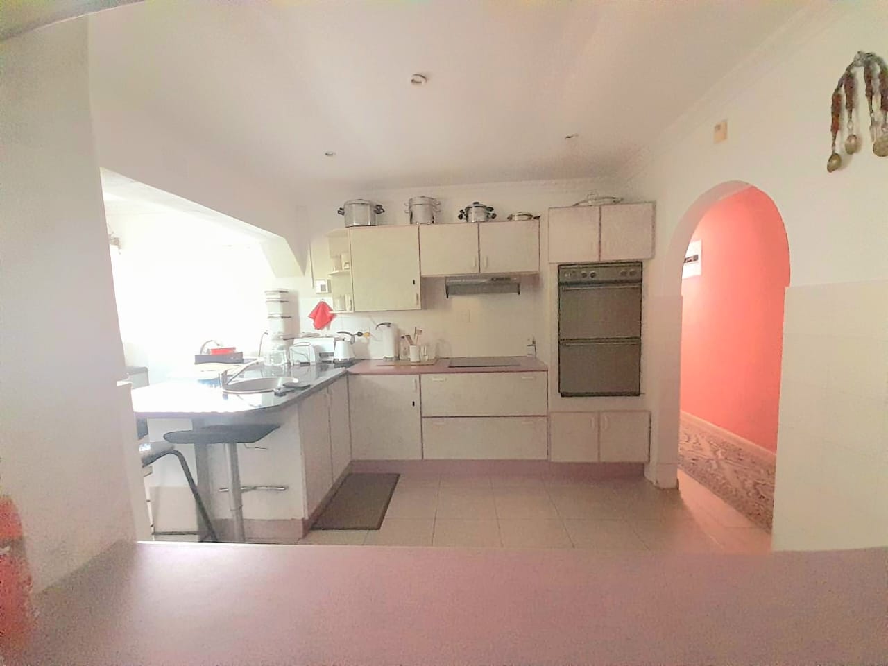 The home features a comfortable lounge leading to a bright sunroom, perfect for relaxation, as well as a separate dining area ideal for family meals. The modern kitchen is fitted with built-in cupboards and an electric stove.