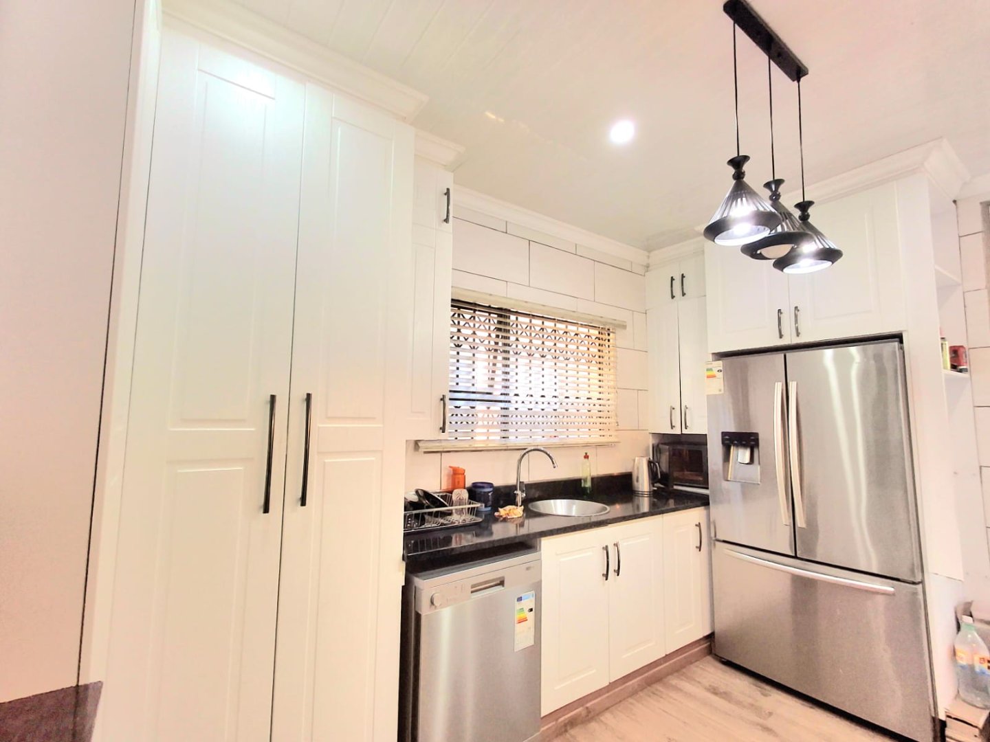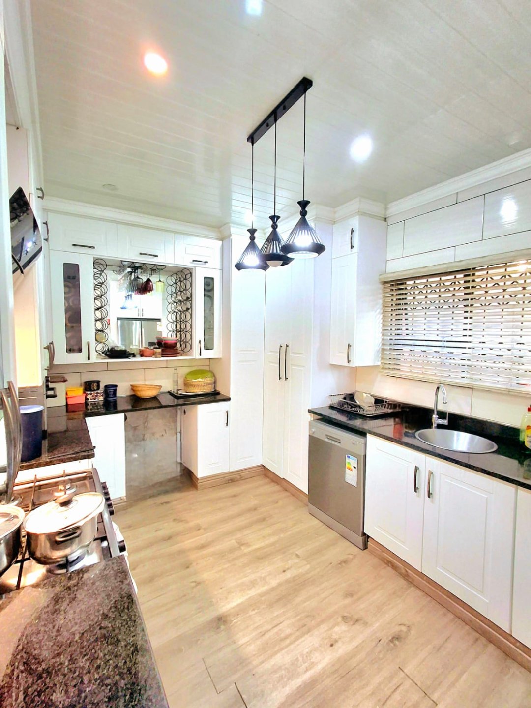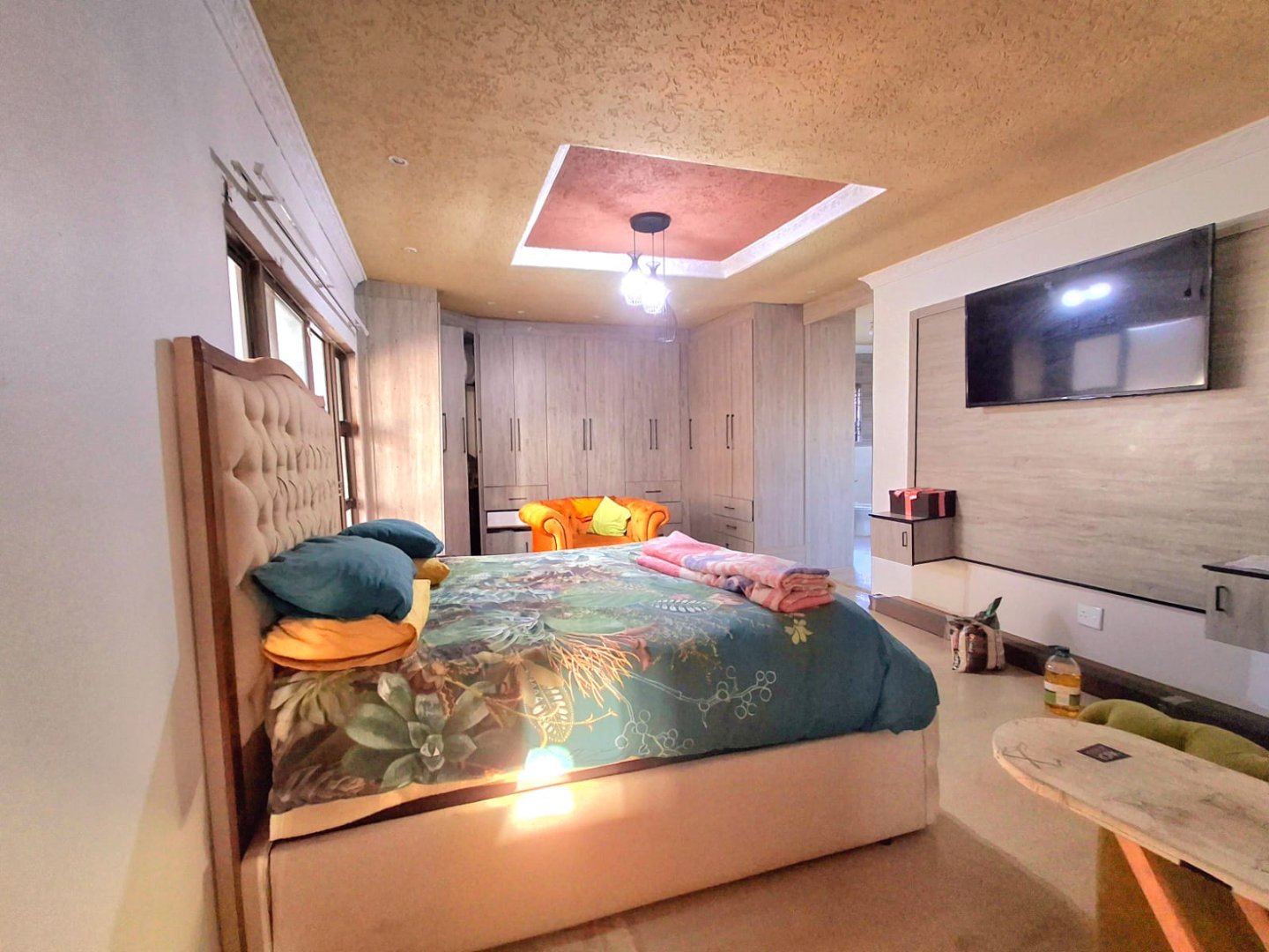 Across from the TV room is the second bedroom, also fitted with a wall-to-wall built-in wardrobe. A few steps down the passage, you’ll find a full bathroom with a shower, as well as the third bedroom.