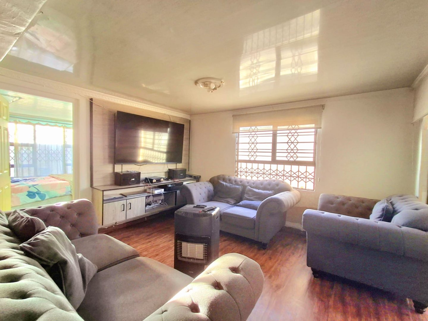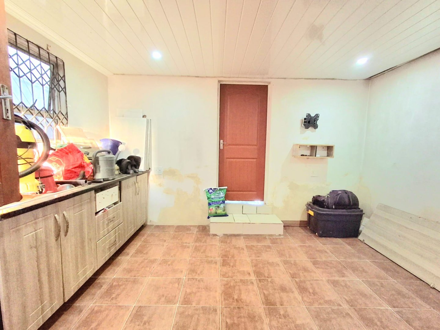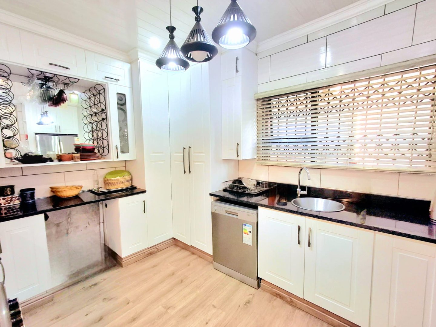 Across from the TV room is the second bedroom, also fitted with a wall-to-wall built-in wardrobe. A few steps down the passage, you’ll find a full bathroom with a shower, as well as the third bedroom.