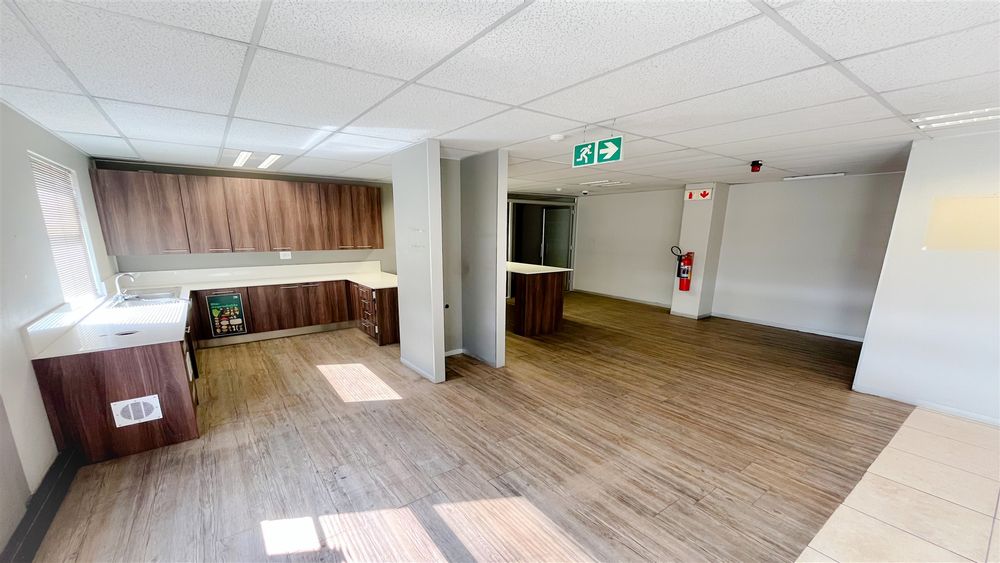 This three-storey office block enjoys prominent highway frontage and features lift access to all floors. The ground floor houses a professional reception area and well-appointed boardrooms, while the upper levels offer spacious open-plan offices, dedicated pause areas, and ablution facilities. Adding significant value is a rooftop entertainment area complete with a built-in braai, bar, and ample seating – perfect for staff relaxation or client events.