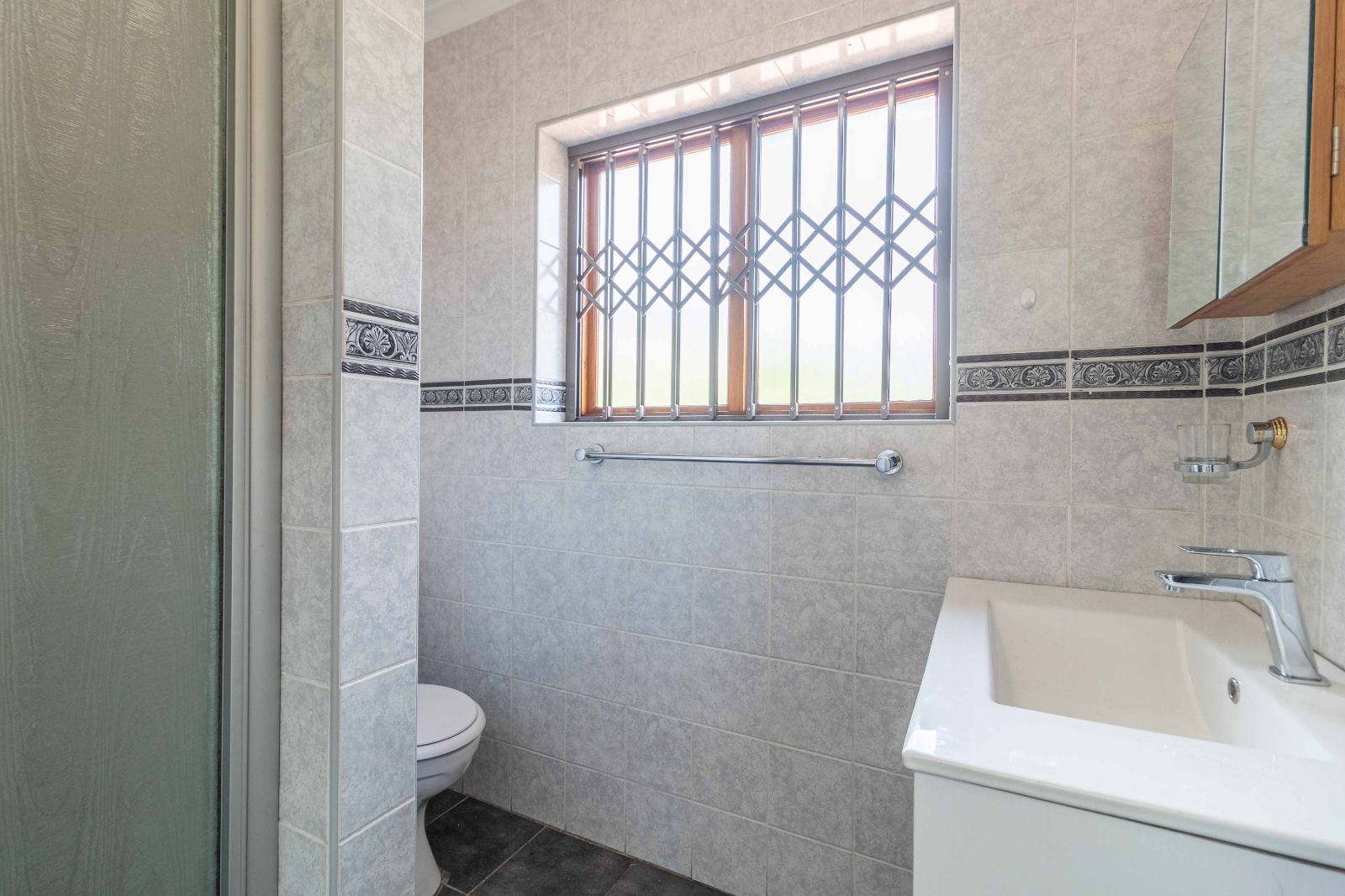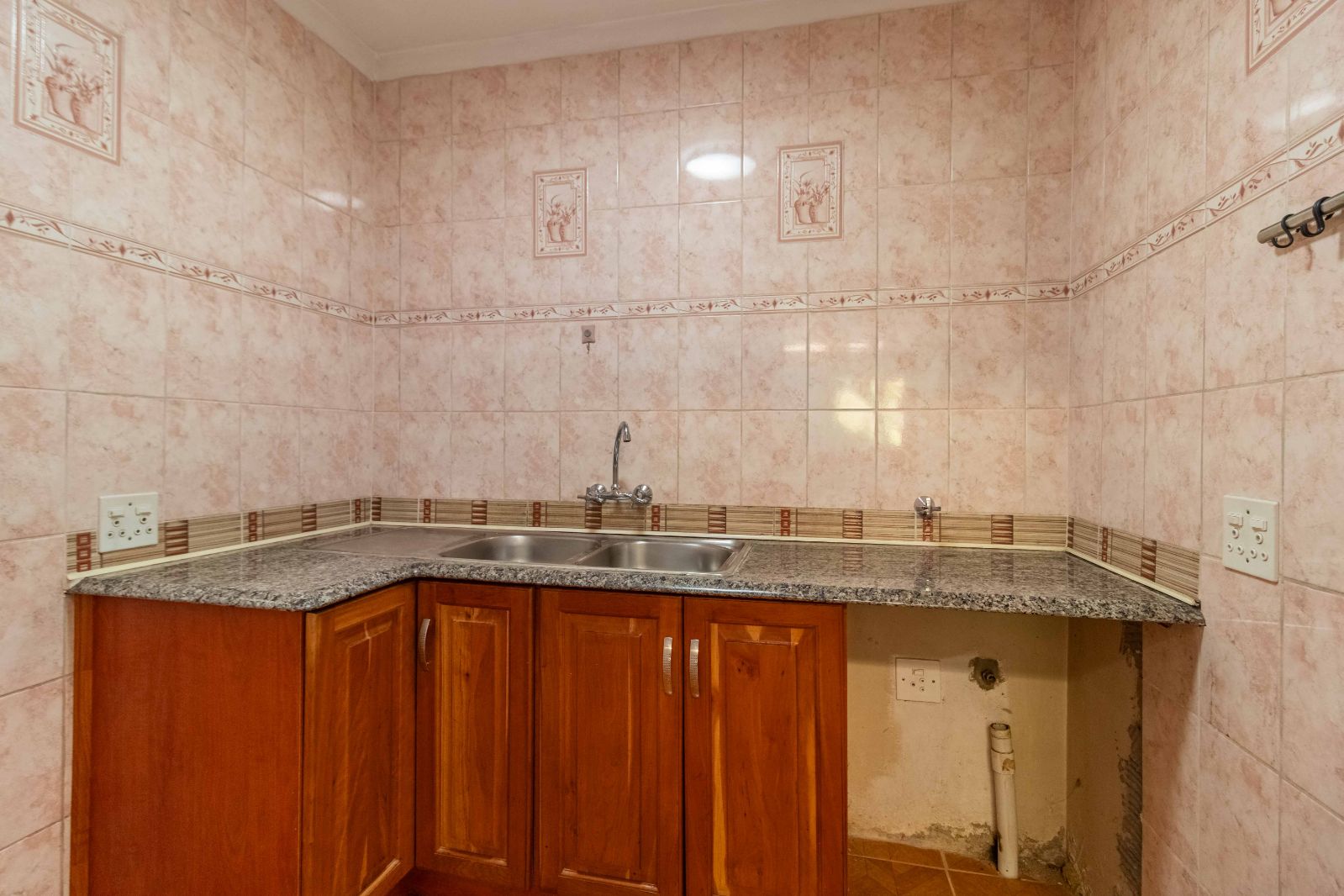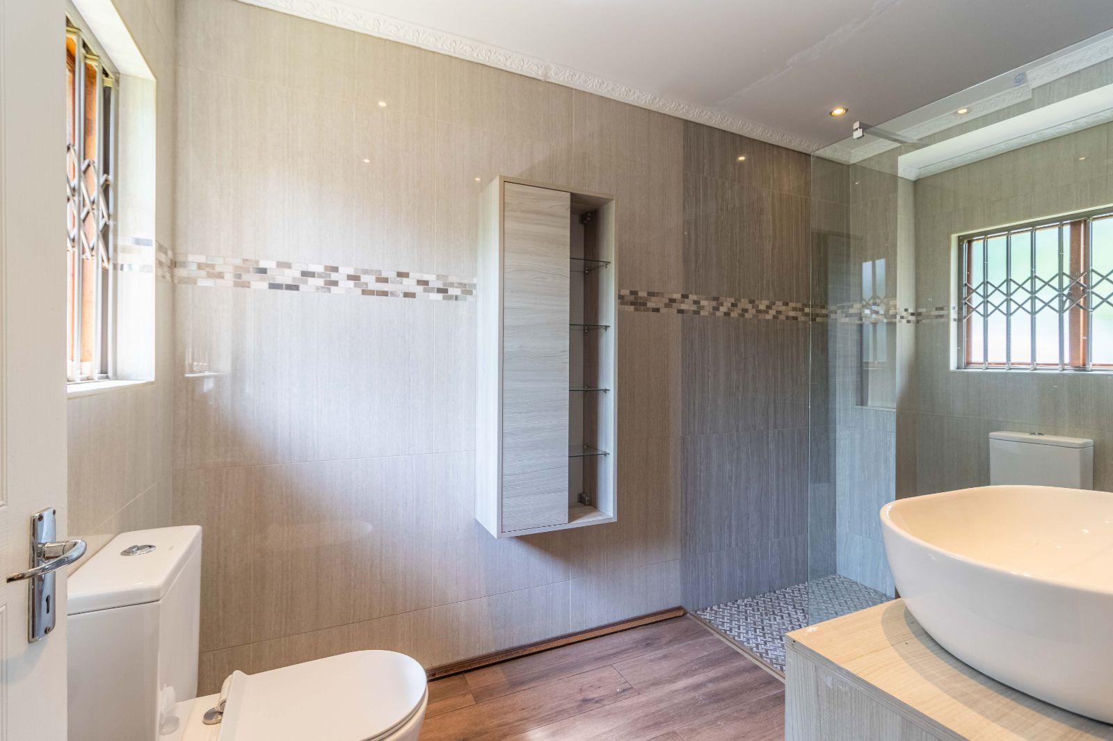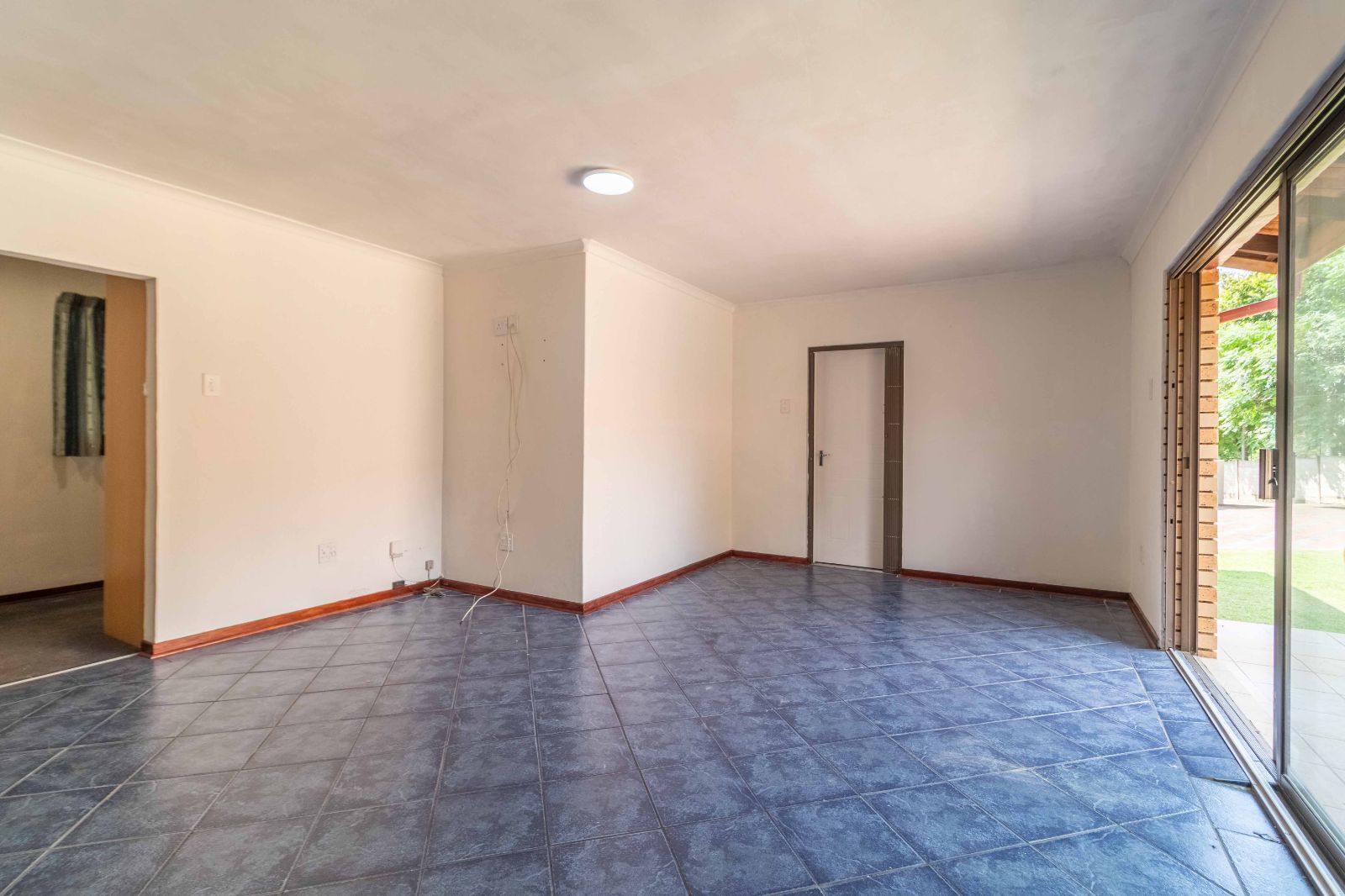 Step inside to discover a vast, open-plan living and dining area, elegantly tiled and designed for seamless entertaining. The heart of the home is a stunning, modern kitchen, featuring sleek granite countertops, high-end finishes, and a dedicated scullery for convenience.