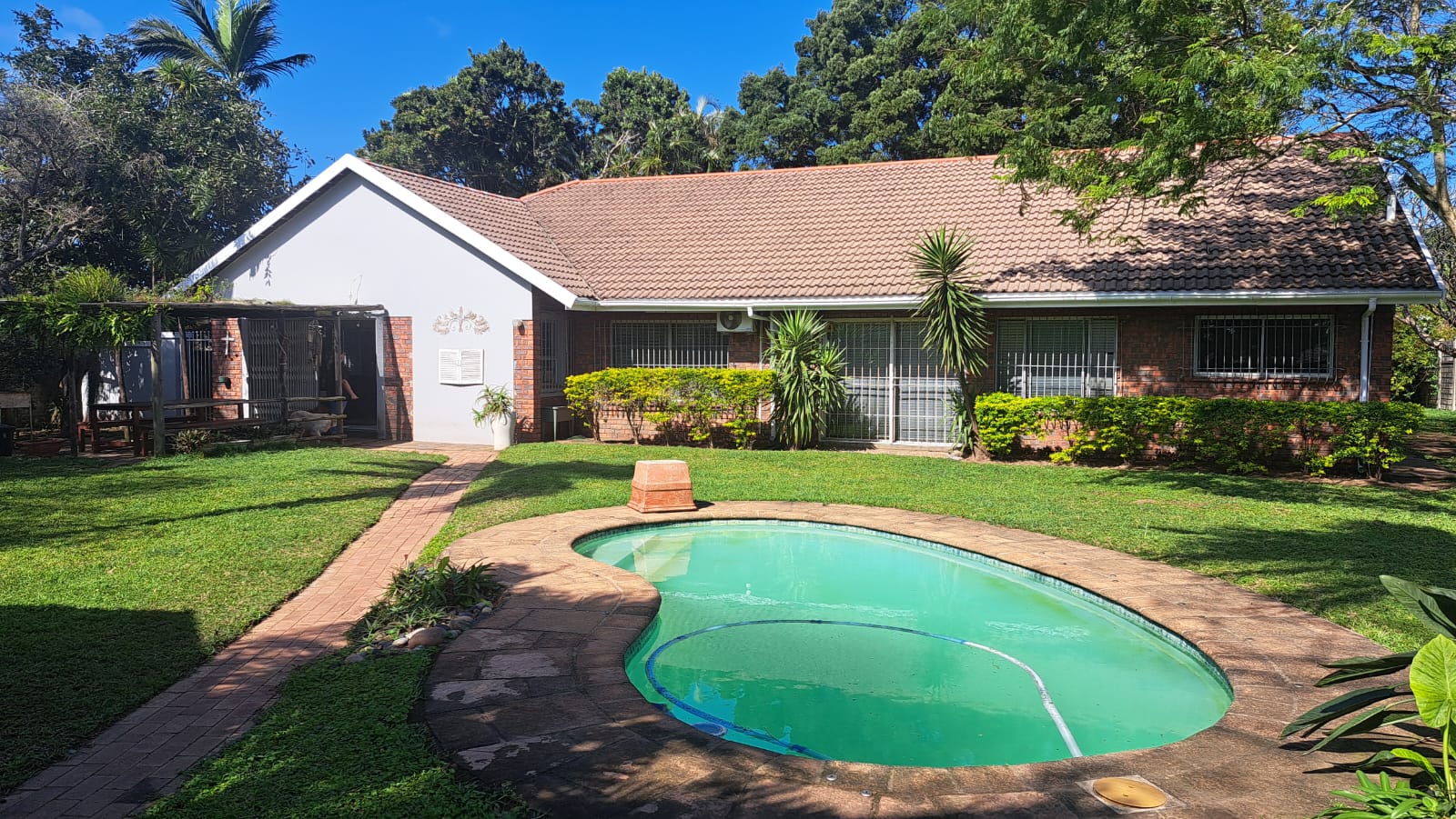 Spacious 4-bedroom, 3-bathroom family home in Meerensee with farm-style charm. Features an open-plan kitchen, lounge, and dining area, plus a separate utility kitchen for convenience. Includes a sunroom, dedicated office with built-in cupboards, and air-conditioning and ceiling fans throughout.