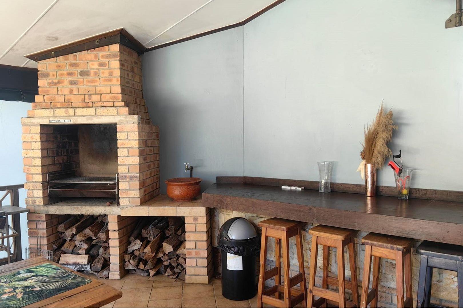 The heart of the home features an open-plan design that seamlessly connects the kitchen and living areas, creating an inviting atmosphere. The kitchen is well-equipped with built-in cupboards and ample counter space, catering to all your culinary needs. Enjoy cozy evenings in the living room, complete with a fireplace and access to the braai room, perfect for entertaining family and friends.