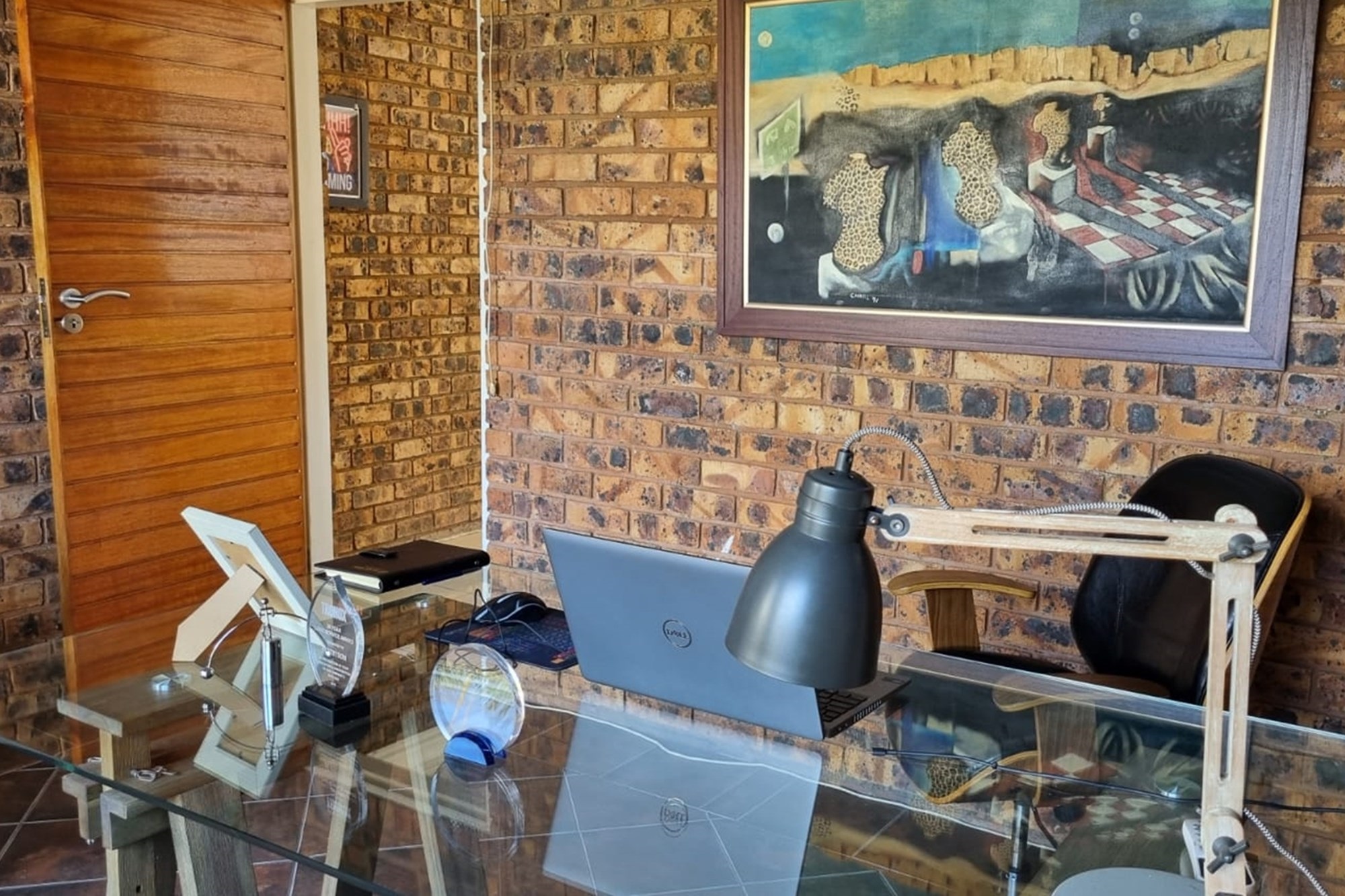 The exterior of the property is just as impressive, with a meticulously landscaped garden and a sparkling swimming pool, providing the perfect backdrop for outdoor fun and relaxation. The veranda and braai area offer endless opportunities for hosting gatherings or simply unwinding in your personal oasis. Additional amenities include a 2-car garage with an automatic door, covered parking, and enough space for vehicles.