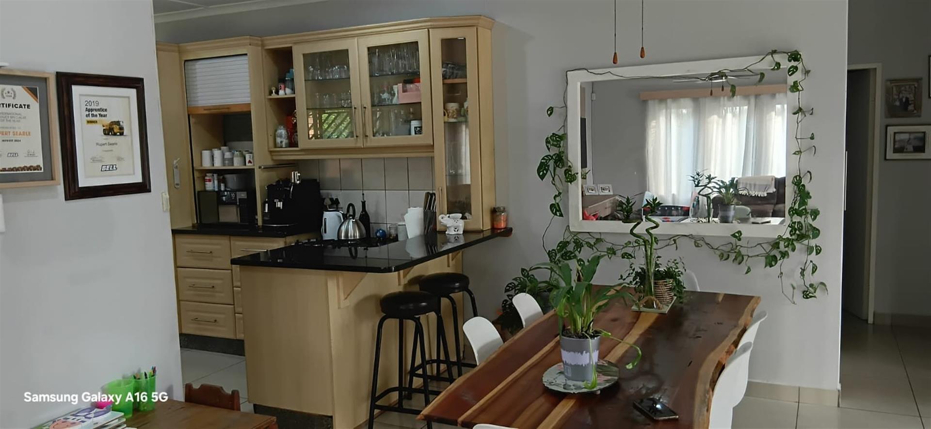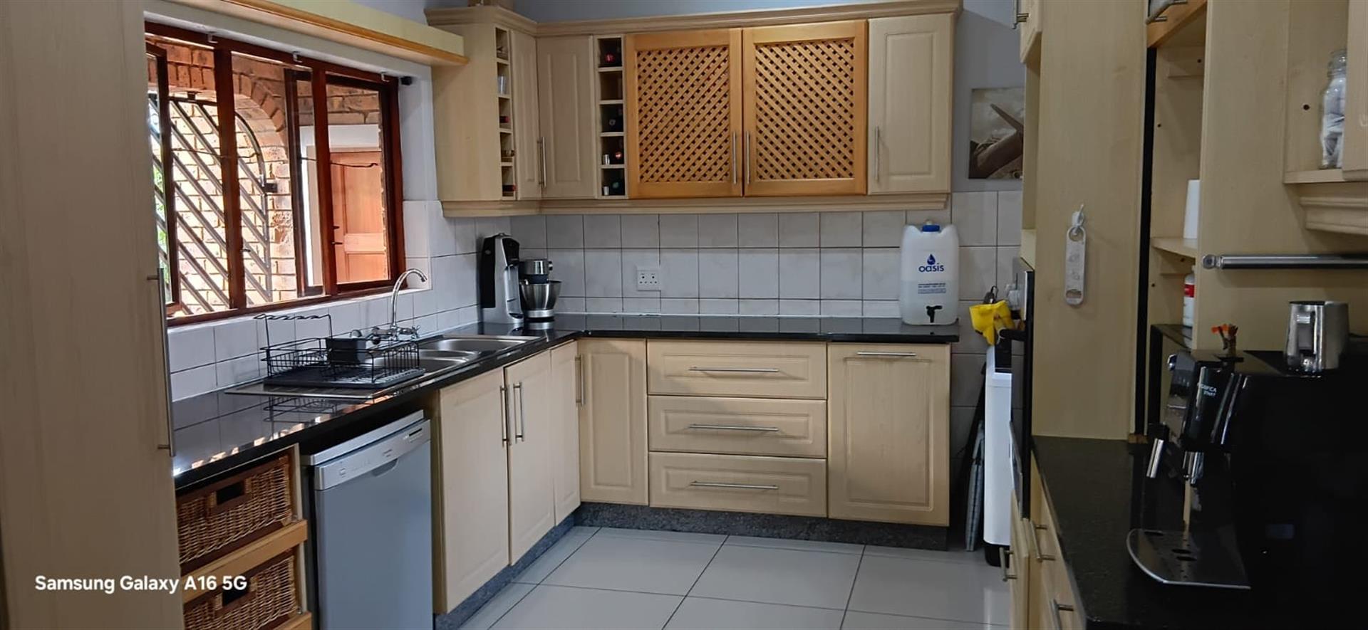 The kitchen is a chef`s dream, with modern finishes and equipped with a gas oven, making cooking a breeze. The kitchen also features a gas geyser, ensuring hot water at all times and saving on electricity costs. The house is also fitted with an inverter, ensuring uninterrupted power supply during load shedding.