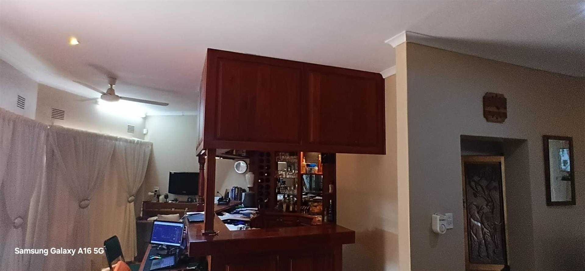 Additional features of this remarkable home include air conditioning, aluminum windows, and a backup water system. The bar area is perfect for hosting friends and family, while the various built-in cupboards and storage options provide ample space for keeping your living areas tidy. The home is also pet-friendly, making it an ideal choice for animal lovers.