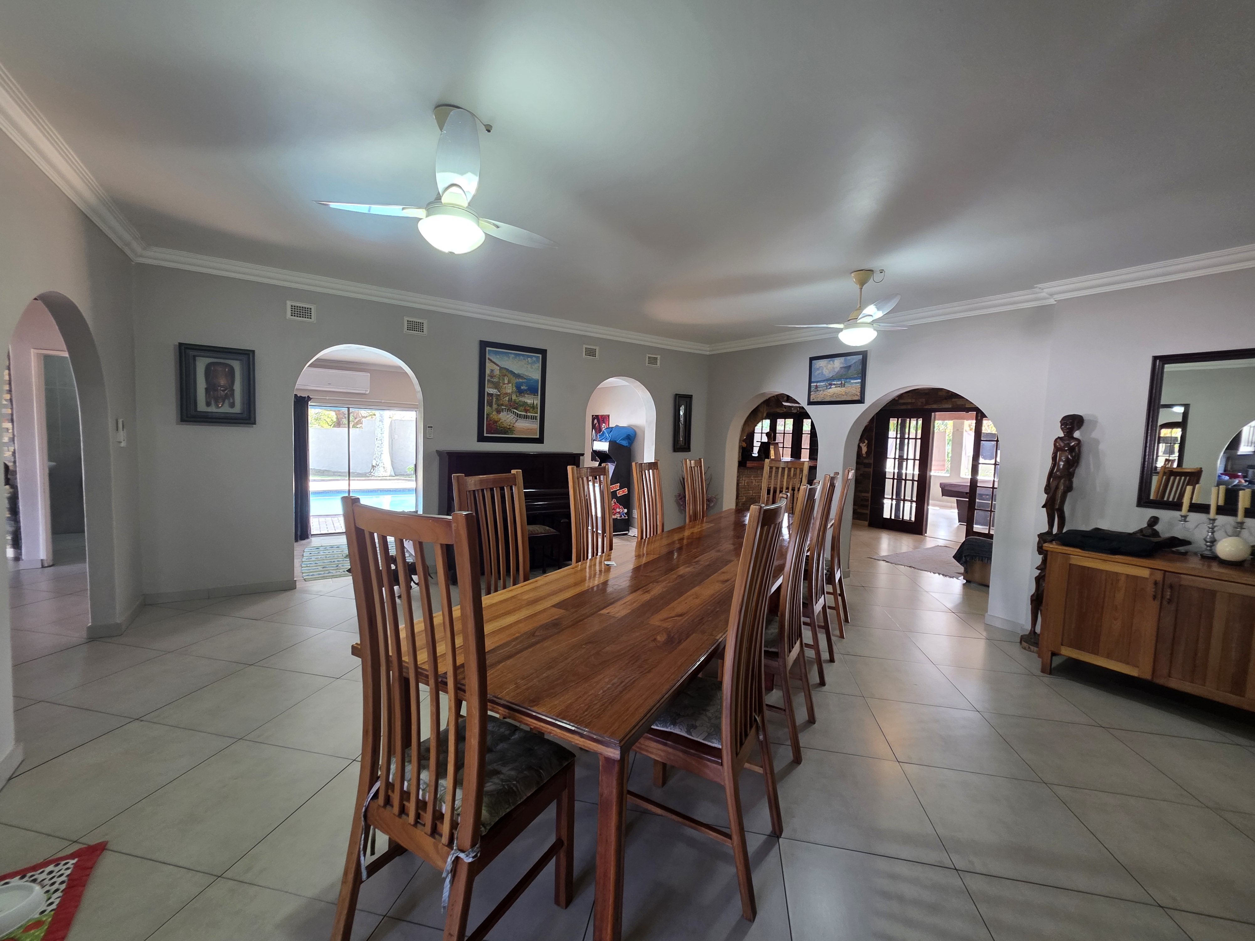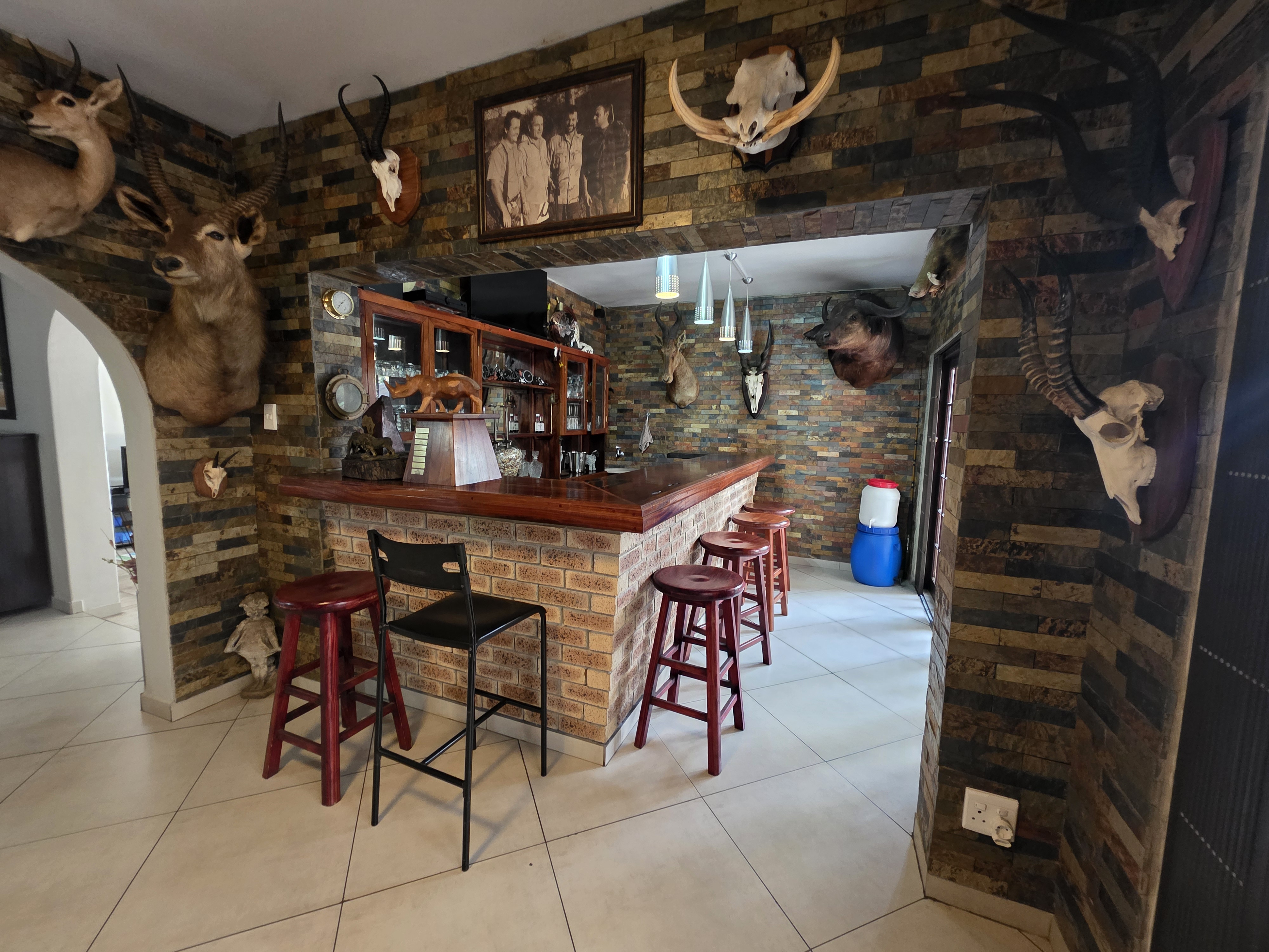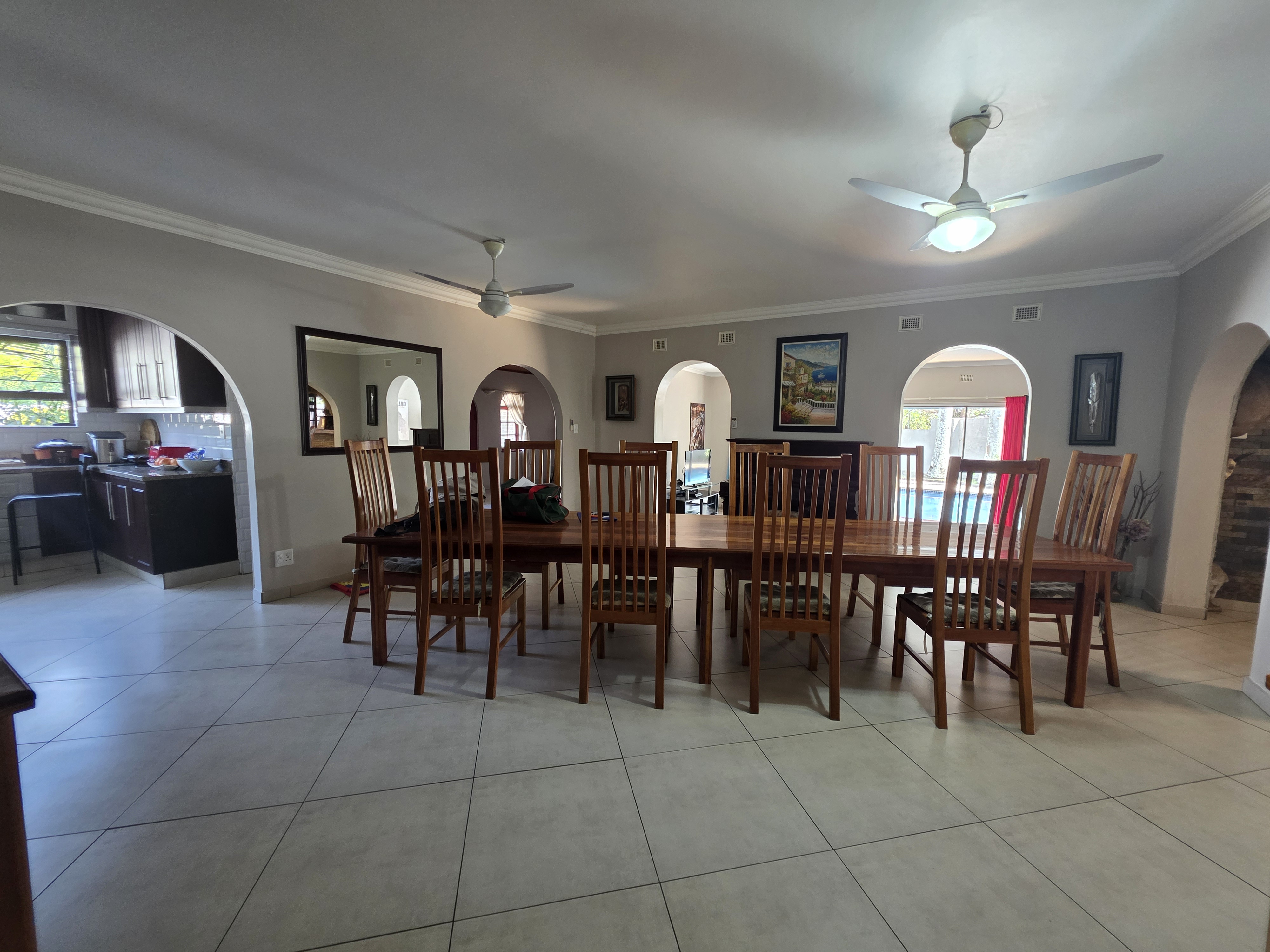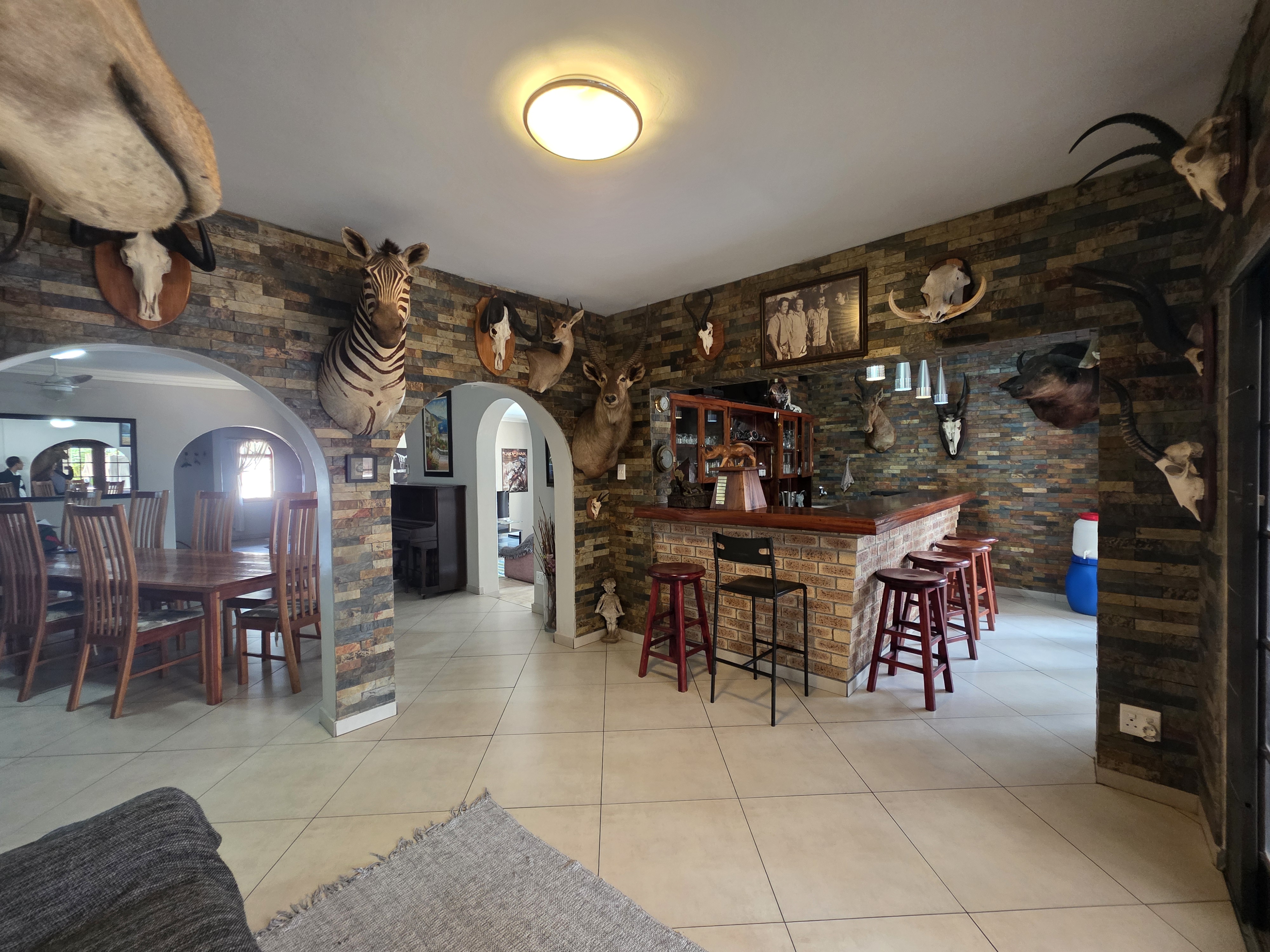 The interior features a formal lounge, a dedicated TV and games room, and a generously proportioned dining area. A beautifully appointed kitchen, complemented by a spacious scullery, forms the heart of the home, while a private office provides the flexibility to be utilised as guest accommodation if required. The entertainment wing, complete with a built-in bar, extends seamlessly to the pool terrace, creating an ideal setting for hosting on any scale.
