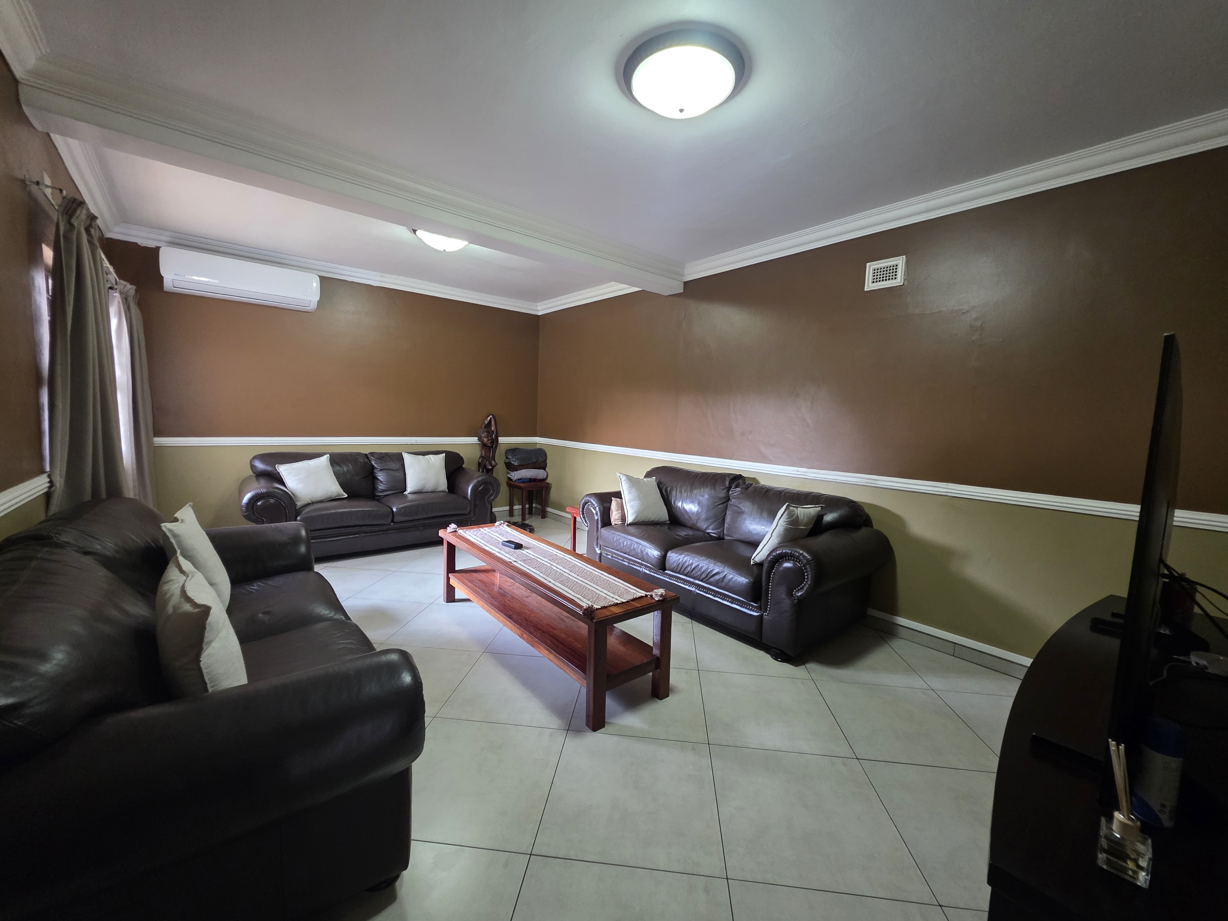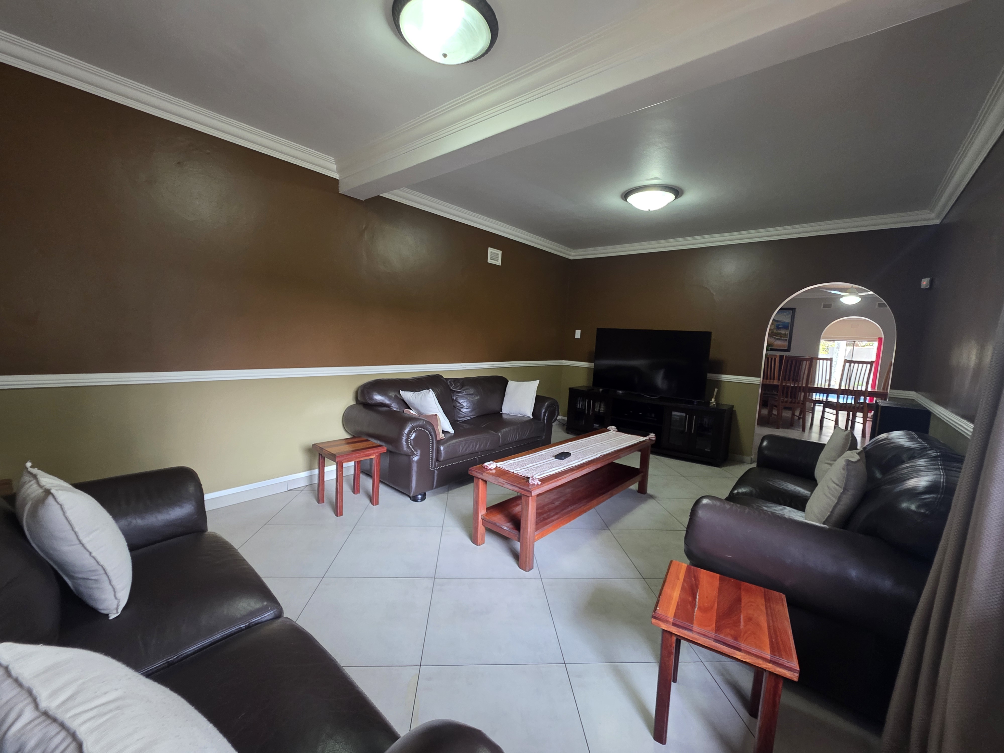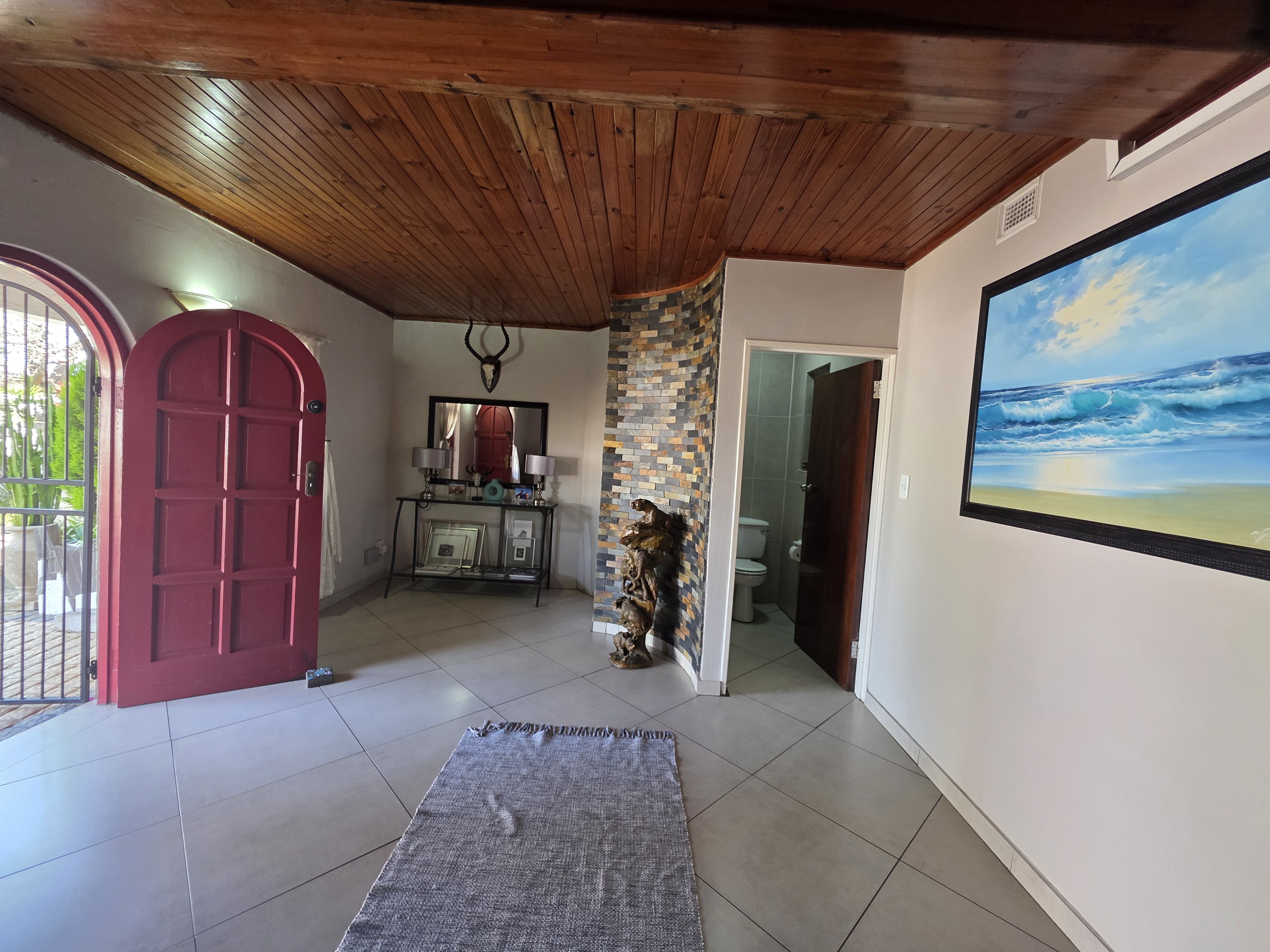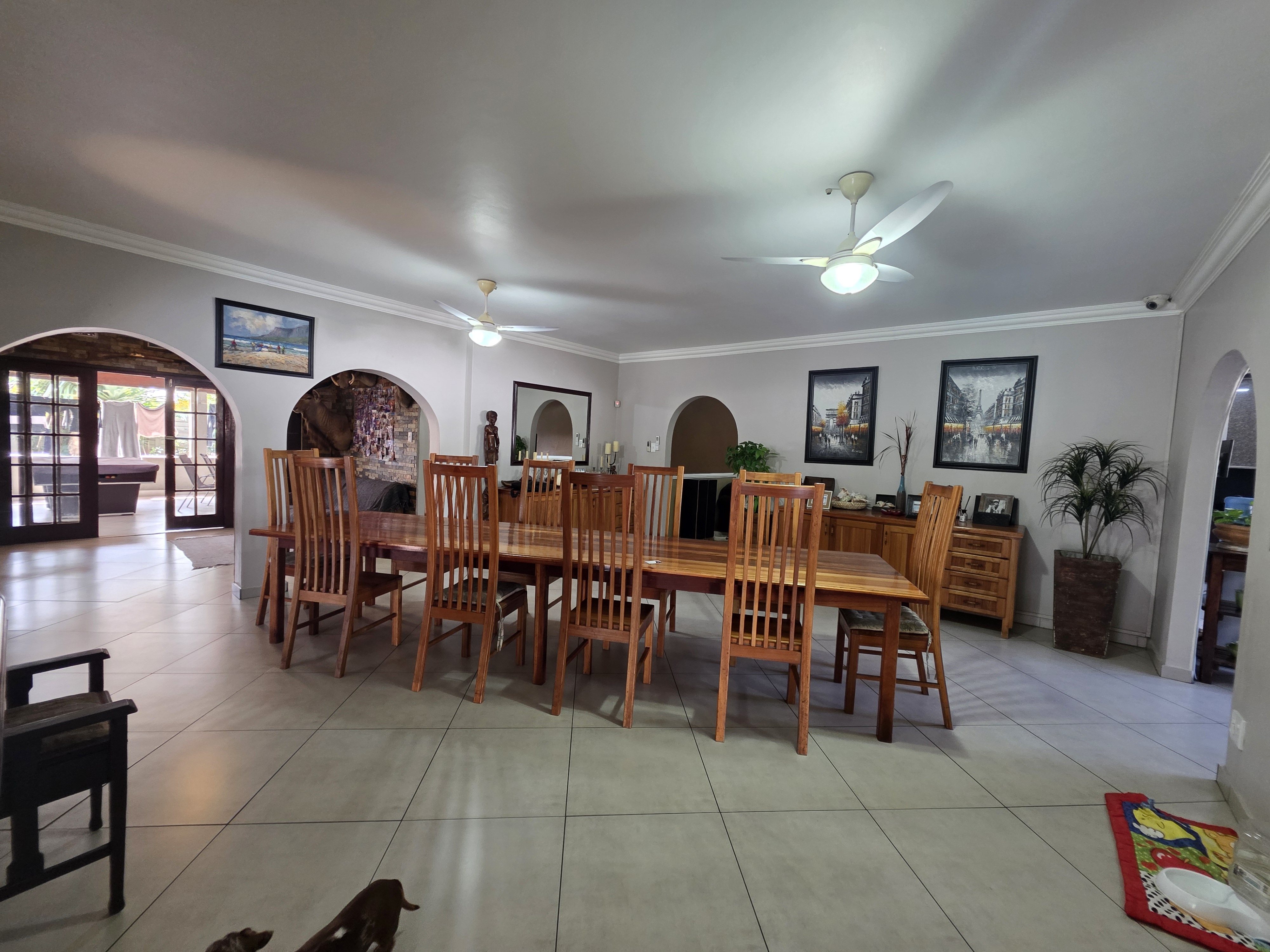 The interior features a formal lounge, a dedicated TV and games room, and a generously proportioned dining area. A beautifully appointed kitchen, complemented by a spacious scullery, forms the heart of the home, while a private office provides the flexibility to be utilised as guest accommodation if required. The entertainment wing, complete with a built-in bar, extends seamlessly to the pool terrace, creating an ideal setting for hosting on any scale.