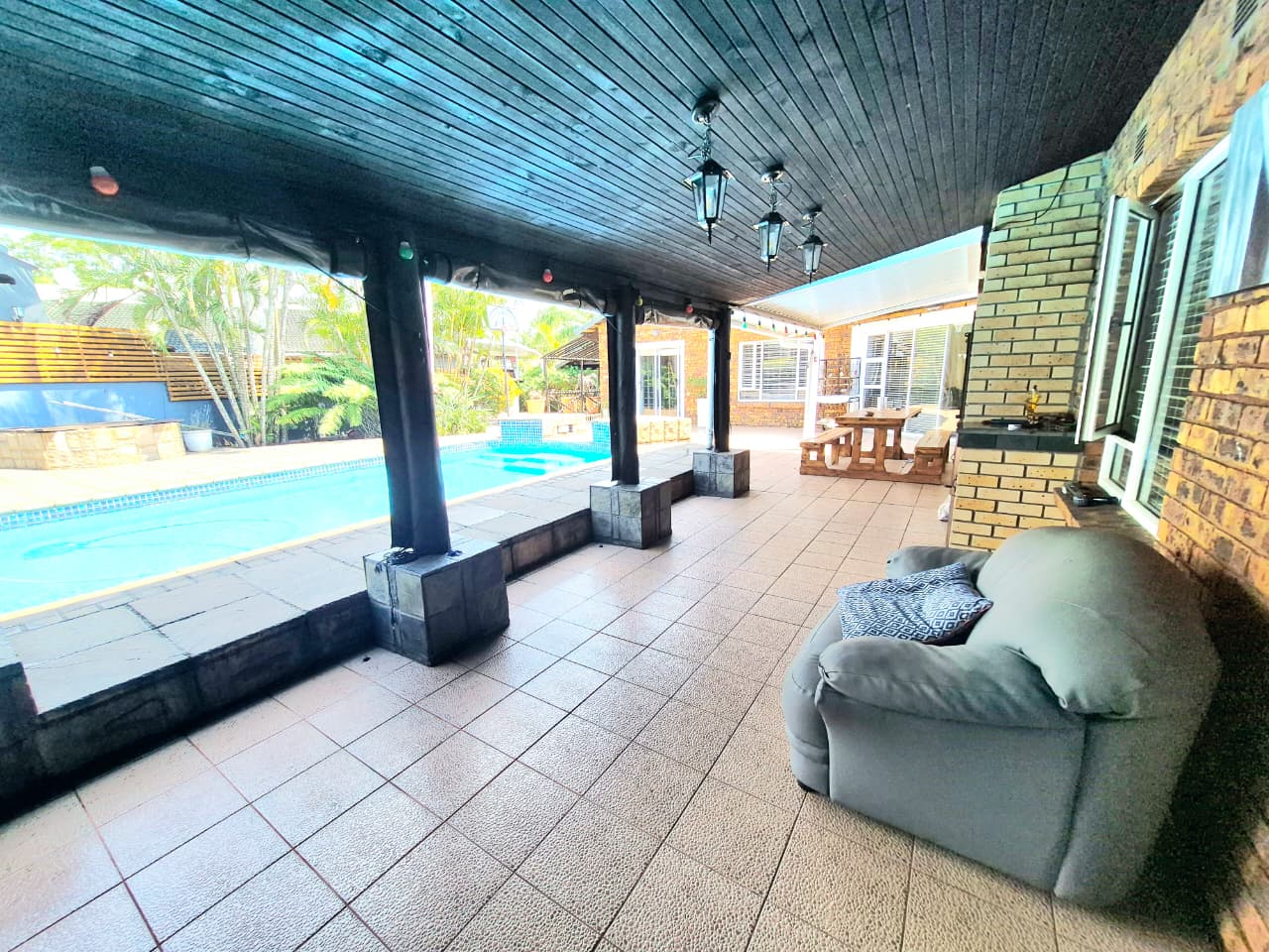 Outdoor living shines with a landscaped low-maintenance garden, pristine pool, covered entertainment area with built-in braai, and elegant pergola.