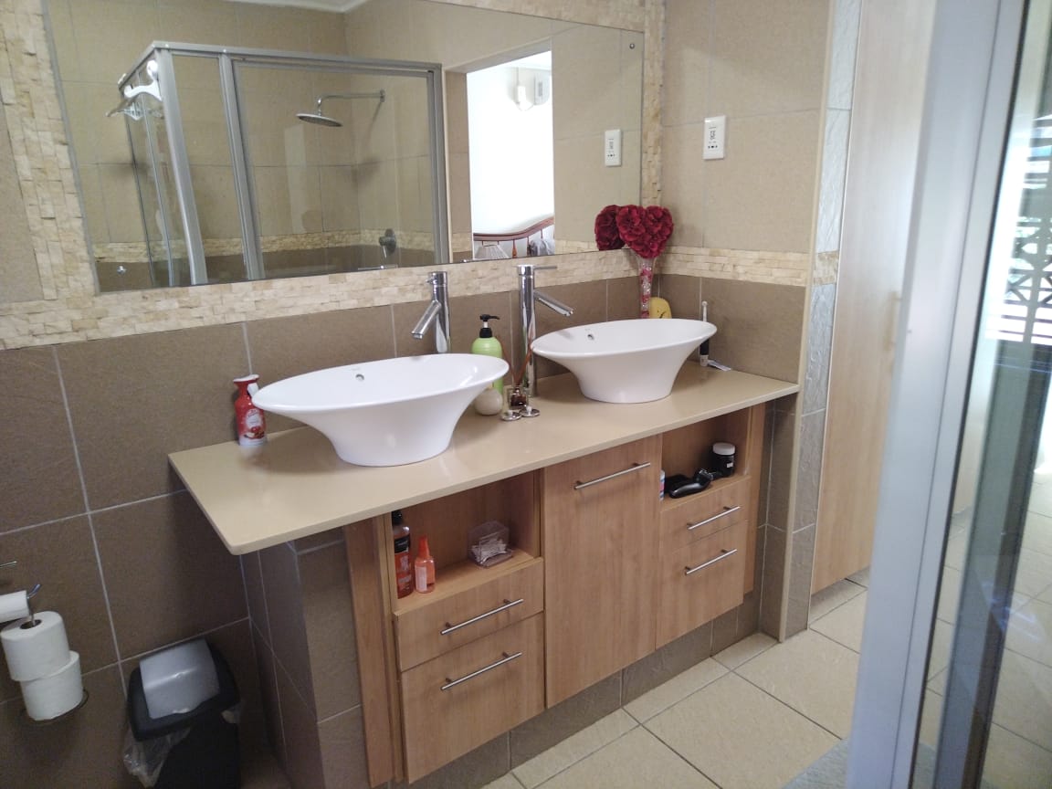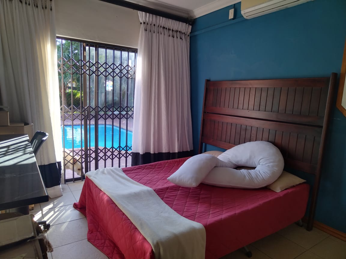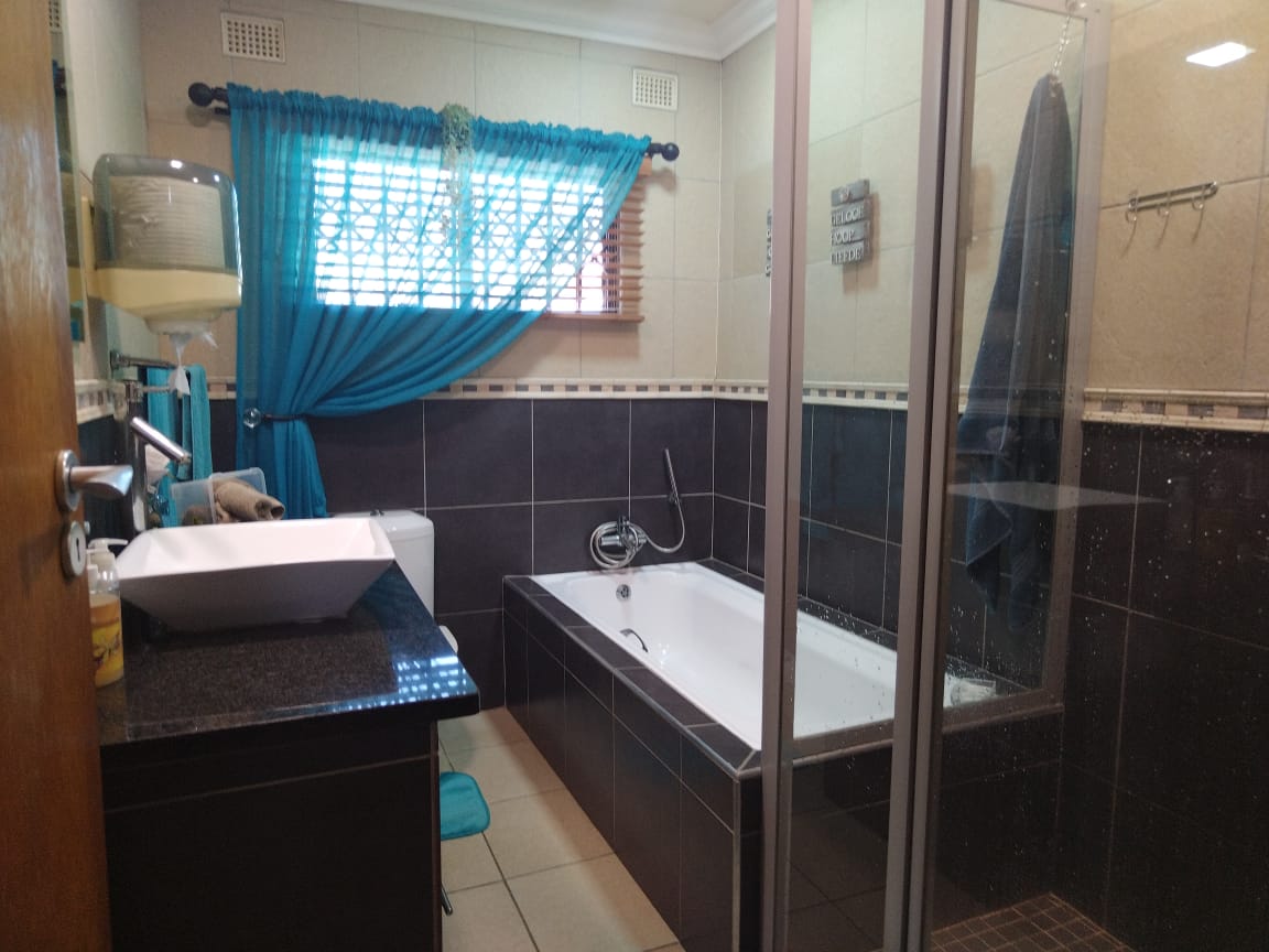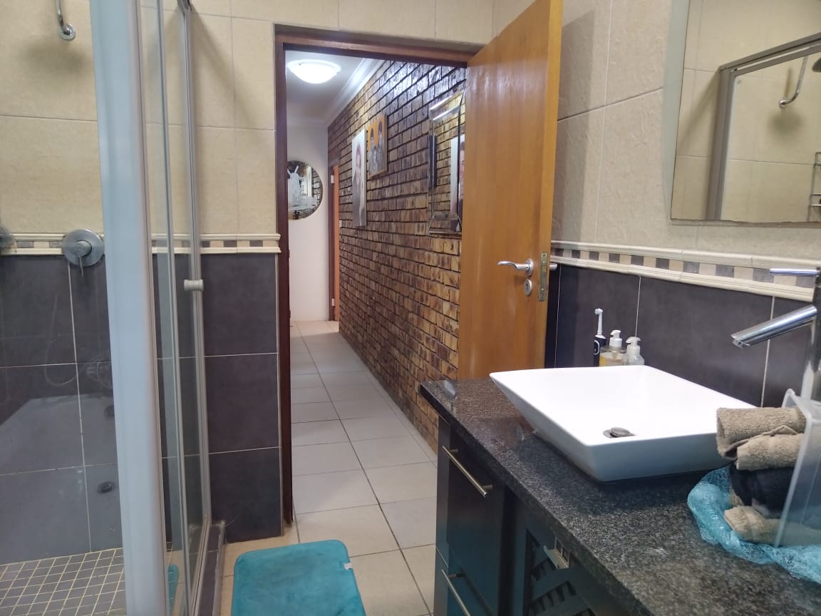 The outdoor area is designed for entertaining, with a covered patio and built-in braai overlooking the always-inviting swimming pool. The main bedroom boasts a full en-suite with a double vanity, while both bathrooms are generously sized.