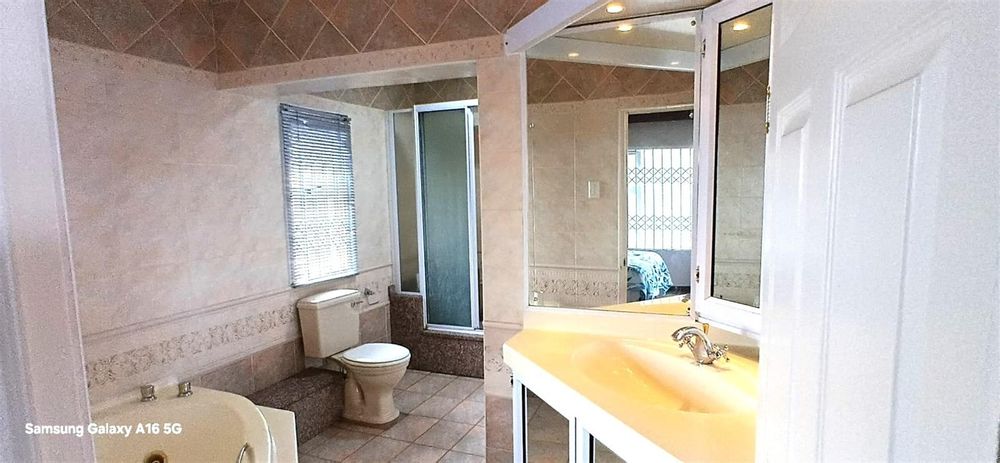 The breakfast nook is the perfect spot to enjoy your meals, and the built-in cupboards offer ample storage space for all your kitchen essentials. For added security, the property is fitted with burglar bars, giving you peace of mind.