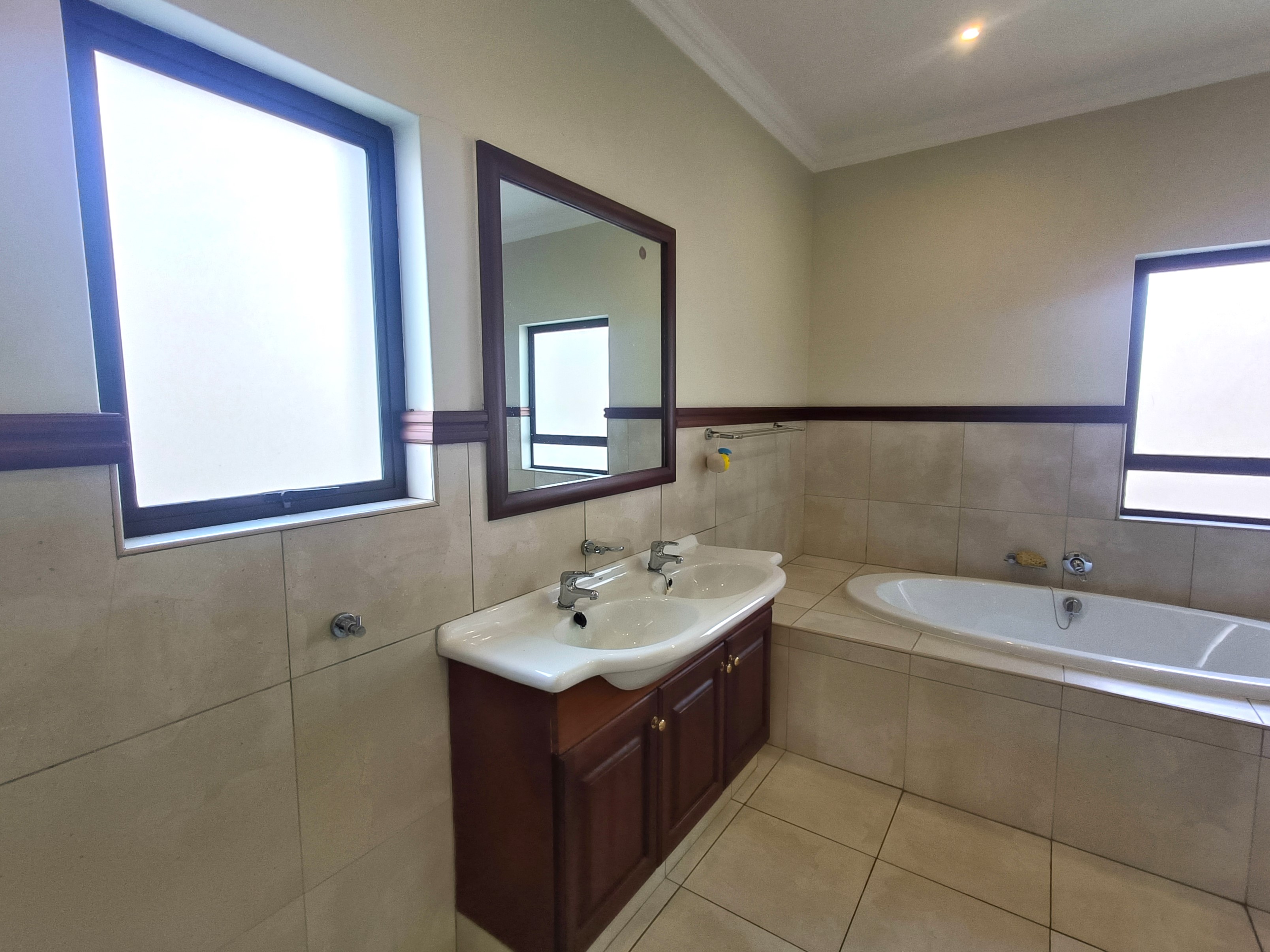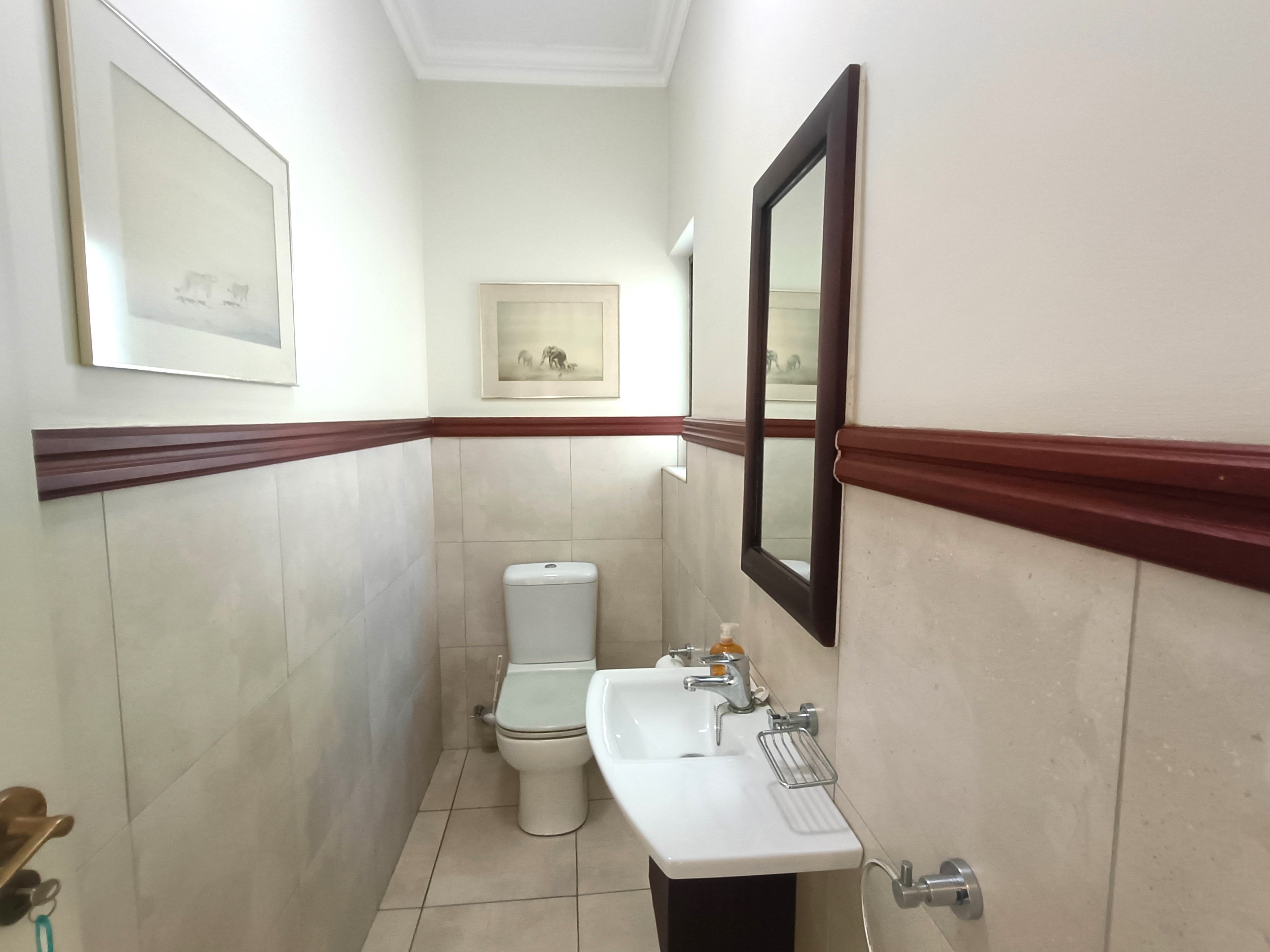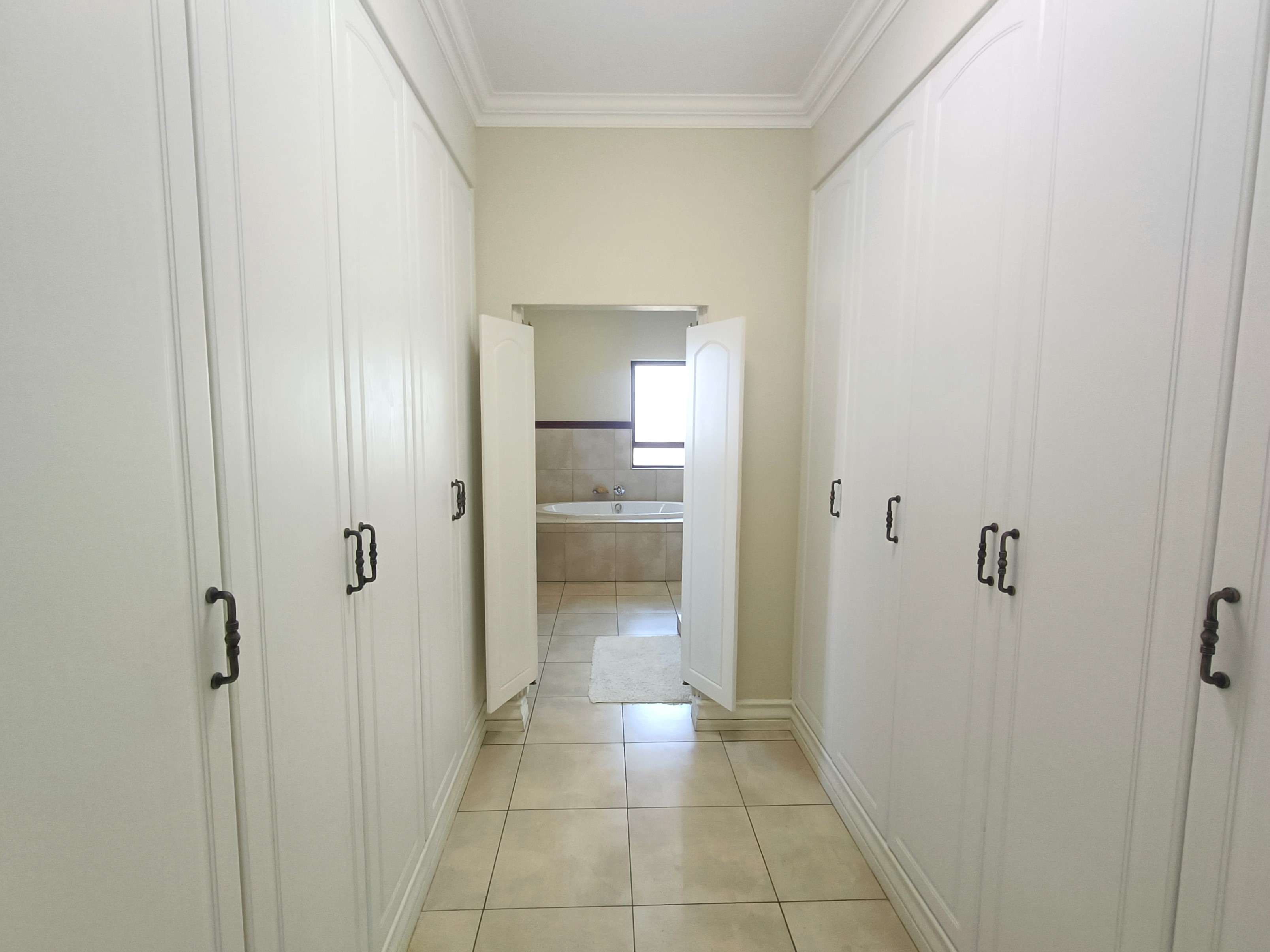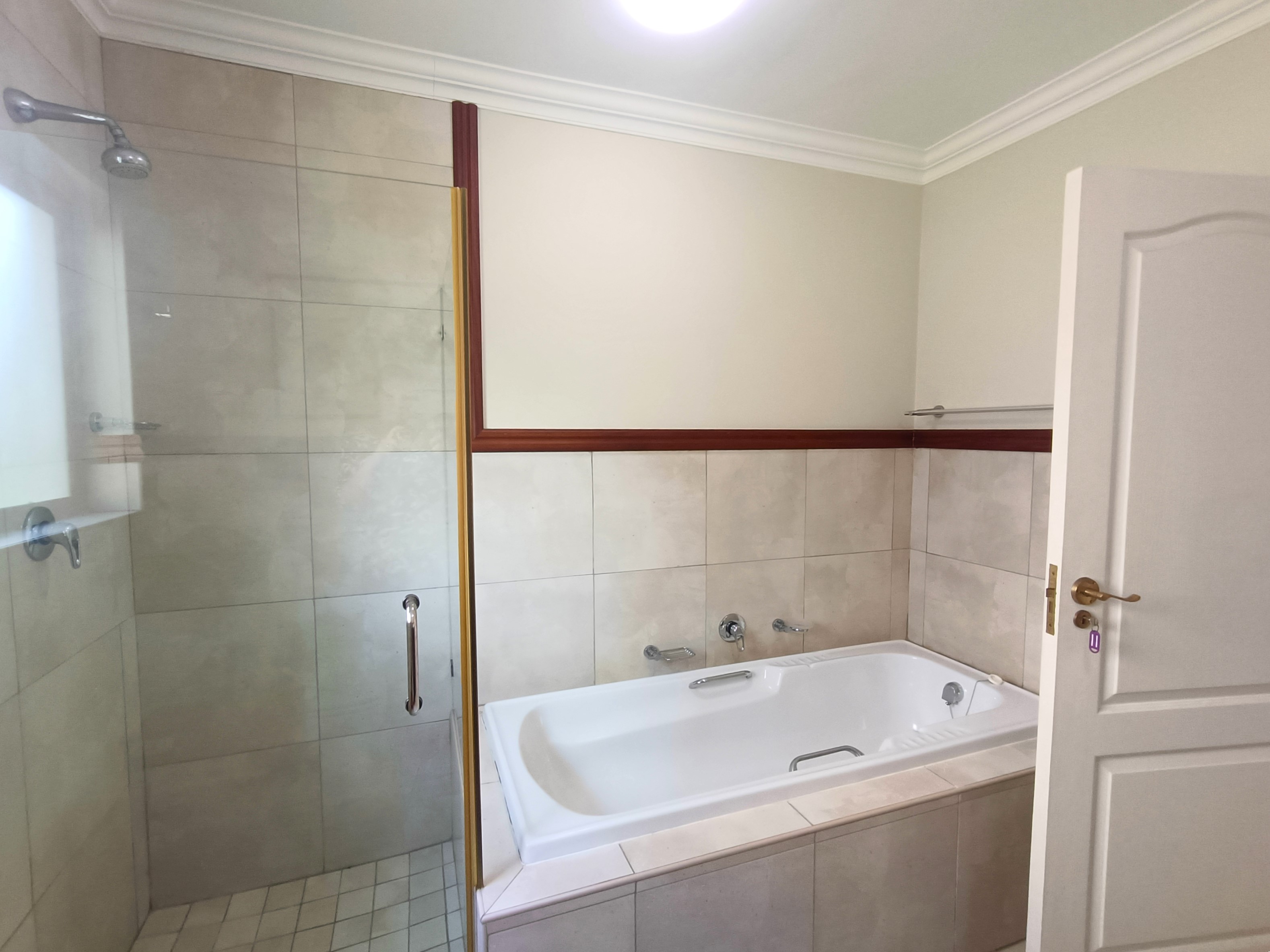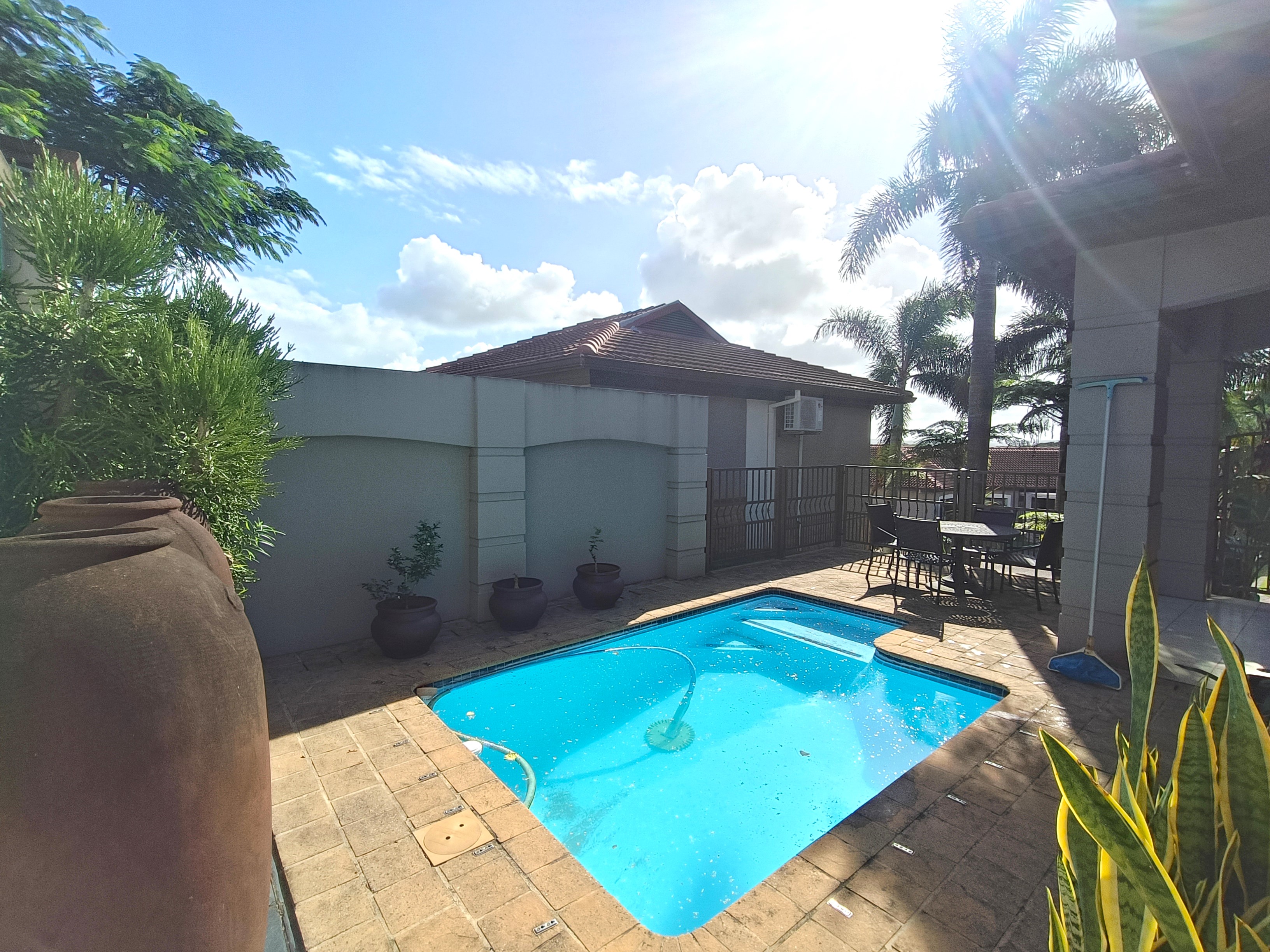 Tucked away in an intimate, secure complex of just six units, this immaculate three-bedroom townhouse offers the perfect blend of privacy, luxury, and convenience. Fully air-conditioned, this elegant home boasts 2.5 bathrooms, a modern kitchen with electric cooking and a separate scullery, and a spacious open-plan living area that opens through sliding doors into a stunning entertainment area with a built-in braai. The dining room flows seamlessly out to a private pool and manicured garden. The home is designed for effortless indoor-outdoor living.