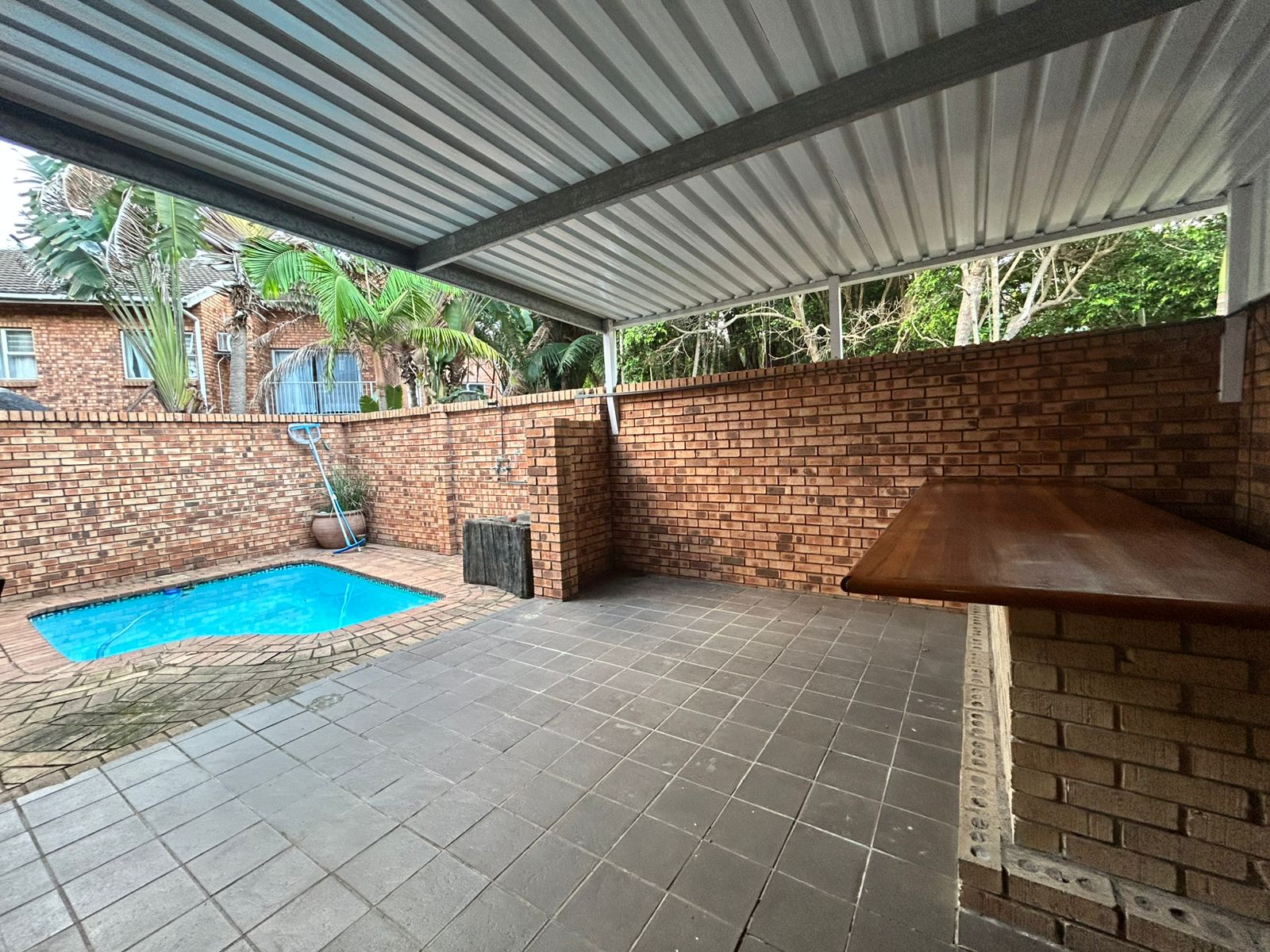 Private entertainment area with pool and built-in braai