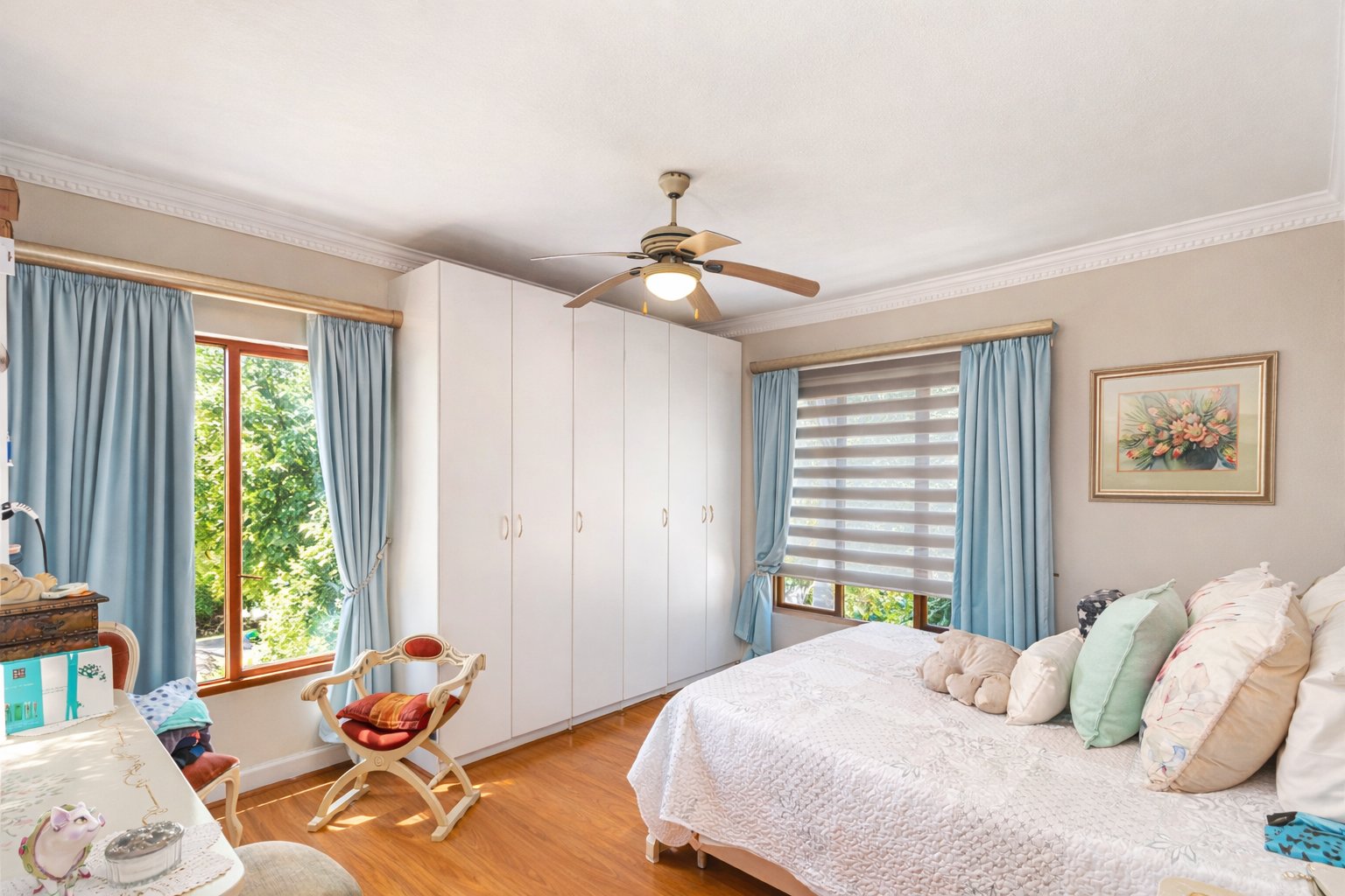 The property boasts a double garage large enough to fit up to four vehicles, as well as elegant wooden flooring throughout the home. Energy and water security are taken care of with a 5kW inverter, 3 batteries, 8 solar panels, and a 5,000-litre backup water tank.
