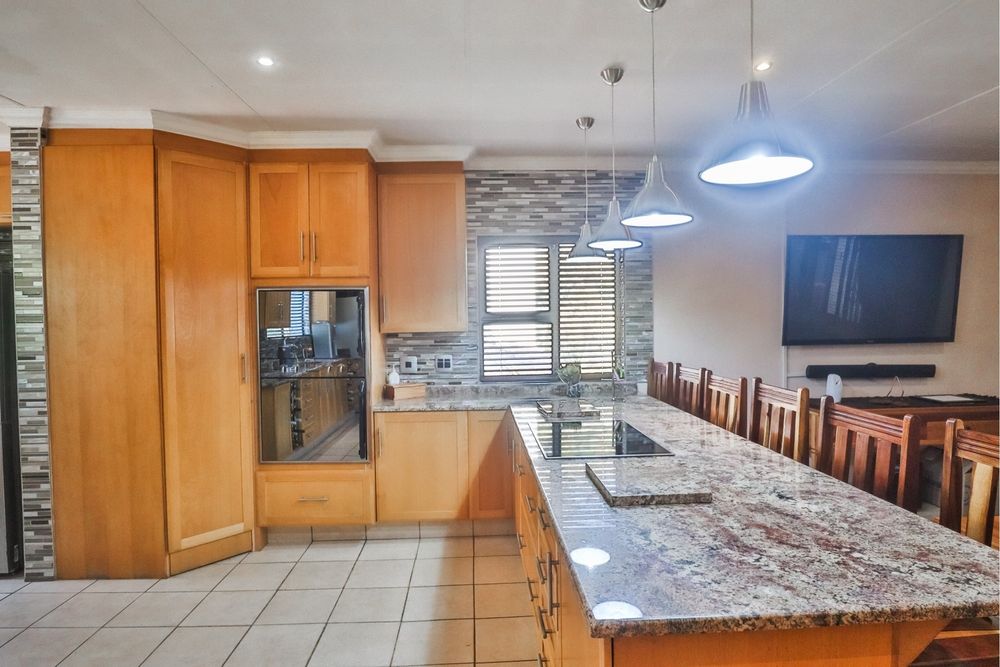 Welcome to an exceptional three-level family home, a true entertainer's dream, nestled in the serene suburb of Meerhof, overlooking the beautiful Hartbeespoort Dam. Spanning approximately 520 square meters, this stunning residence offers a perfect blend of luxury, comfort, and functionality. Ground Floor: This beautiful house welcomes you through a double door into a three story lobby and an inviting private lounge on the one side and a bedroom and bathroom, ideal for guests or family members seeking privacy. Also on this floor is a fully equipped flatlet with its own bedroom, bathroom, cozy lounge, and kitchenette which provides an excellent option for extended family or rental income. Complete with its own front door. A spacious garage which can accommodate multiple vehicles and offers ample room for tools and storage. The rubber flooring adds durability and ease of maintenance. First floor: Ascend the staircase to discover a beautiful, expansive open plan living area. This floor seamlessly integrates the living room and dining area as well as the open plan kitchen, creating a perfect space for both relaxation and entertaining. - *Stoop with Built-in Braai:* Step out onto the stoop to find a built-in braai (barbecue) and a spacious lounging area, perfect for outdoor gatherings and enjoying the serene views. This floor includes two bedrooms with ensuite bathrooms. The second floor is dedicated to the master suite, featuring a small lounging area, a private balcony, and a walk-in closet. The state-of-the-art bathroom offers a luxurious retreat with modern fixtures and finishes. Exterior: The meticulously laid out rock garden at the back of the house is adorned with numerous beautiful plants and rocks, creating a stunning visual display and a peaceful outdoor retreat. The property includes a proper outside laundry room with ample space for machines, ironing, and additional storage, ensuring functionality and ease of use. Additional Features: Equipped with 26 solar panels providing 16 kW of power, the home significantly reduces reliance on the grid. Solar batteries ensure uninterrupted power supply. A borehole with backup tanks guarantees a constant water flow, complemented by a purification system for high-quality water. Enhanced security features include electric fencing and trellis doors fitted throughout the property. All windows are soundproof, ensuring a peaceful and quiet living environment. High-quality finishes and modern amenities throughout the home ensure a luxurious living experience. The outdoor areas are beautifully and neatly done, providing a harmonious blend of indoor and outdoor living in a tranquil setting. This family home in Meerhof is designed to cater to every need, offering elegance, comfort, and an exceptional lifestyle. Don’t miss the opportunity to make this dream home yours.