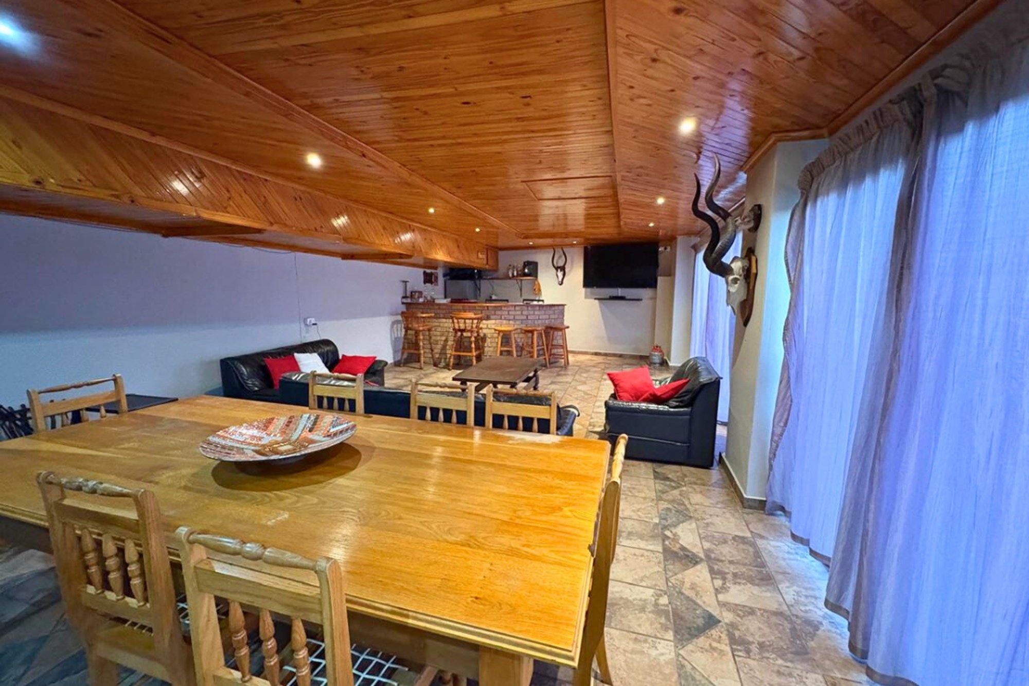 Adding to its appeal, the property includes a fenced-off flatlet with its own entrance. This space features one bedroom, an en-suite bathroom, an open-plan kitchen, and a TV room—ideal for guests, extended family, or even rental opportunities.